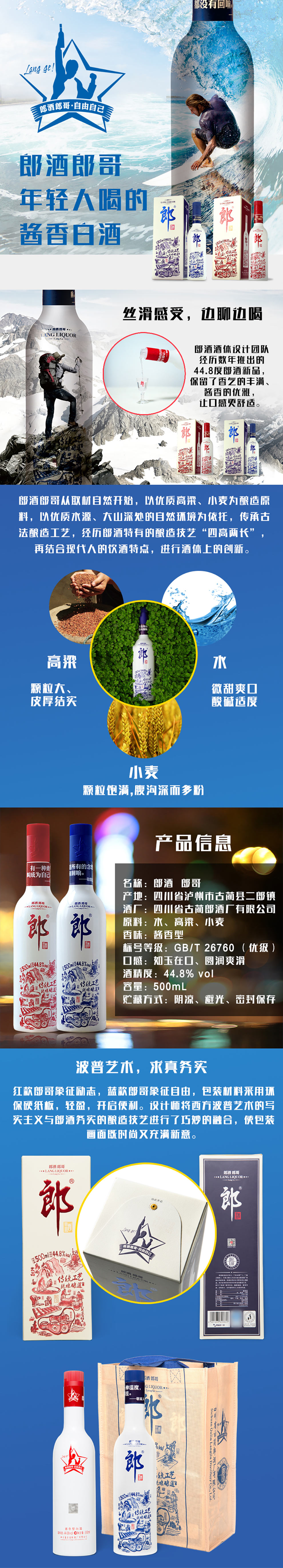 【推荐】郎酒 郎哥红款 酱香型白酒 44.8度500ml+郎哥蓝款44.8度500ml