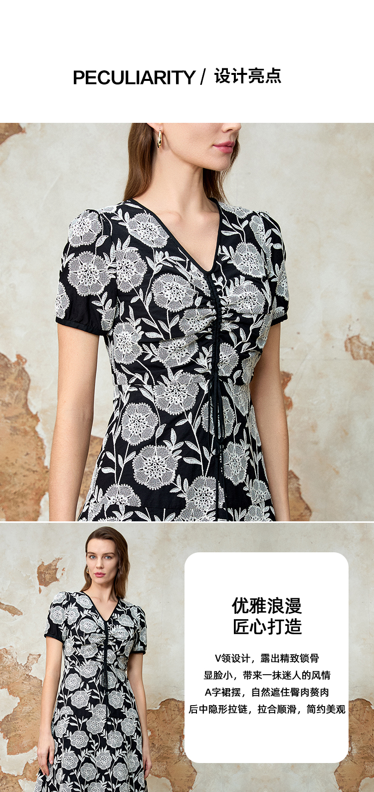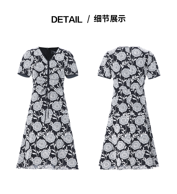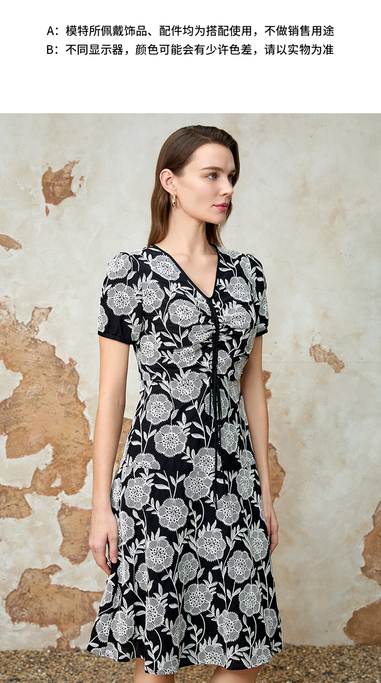 EITIE爱特爱气质V领收腰显瘦浪漫印花连衣裙夏季新款8207954
