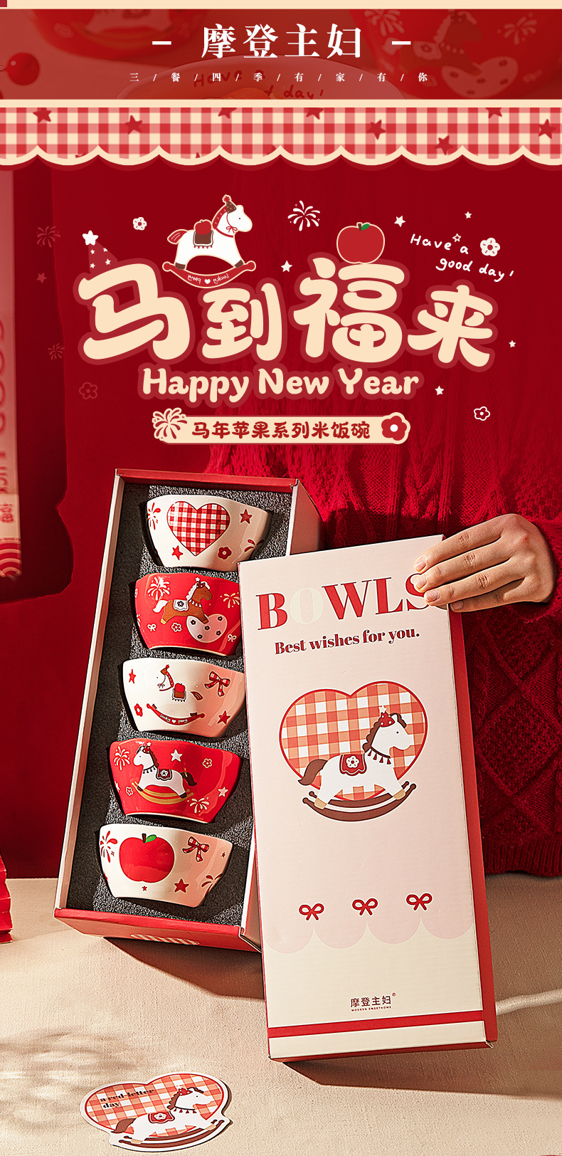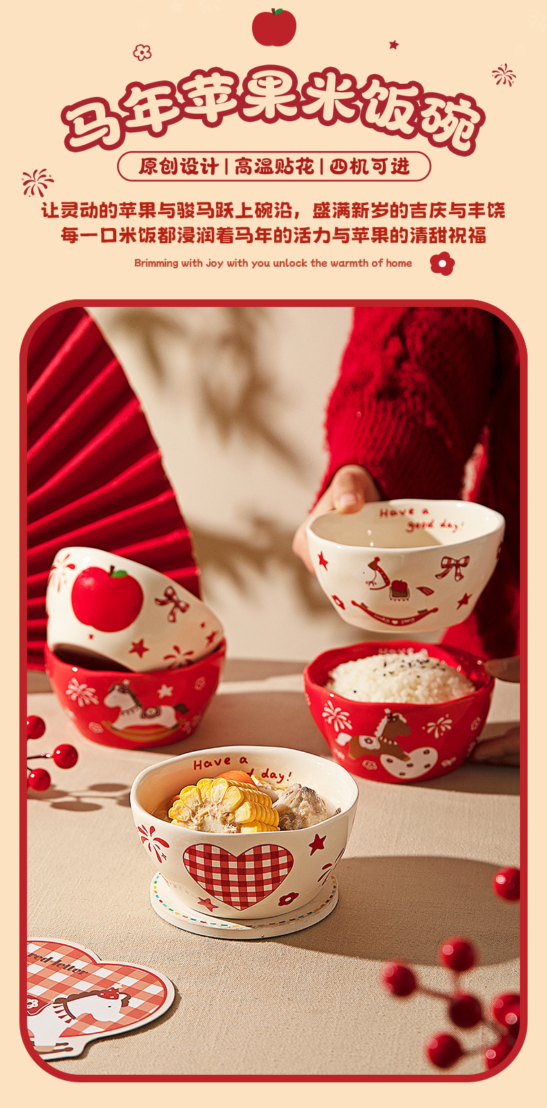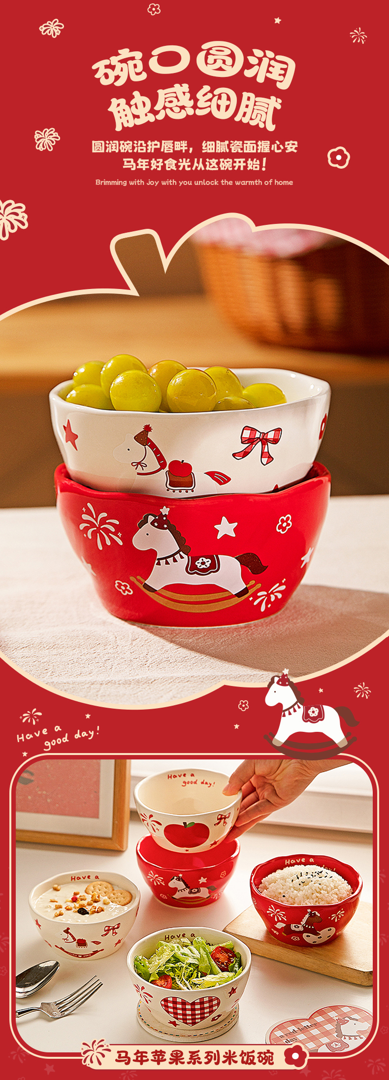摩登主妇马年陶瓷米饭碗家用碗具2025新款高颜值餐具乔迁新年礼物