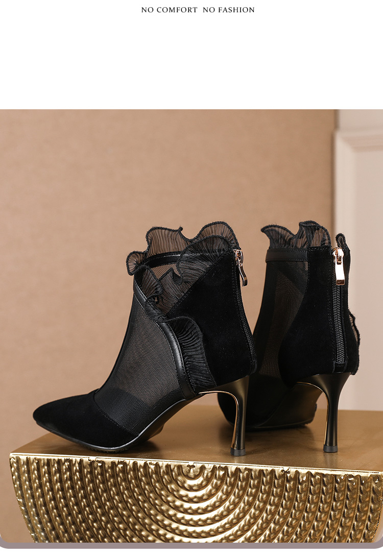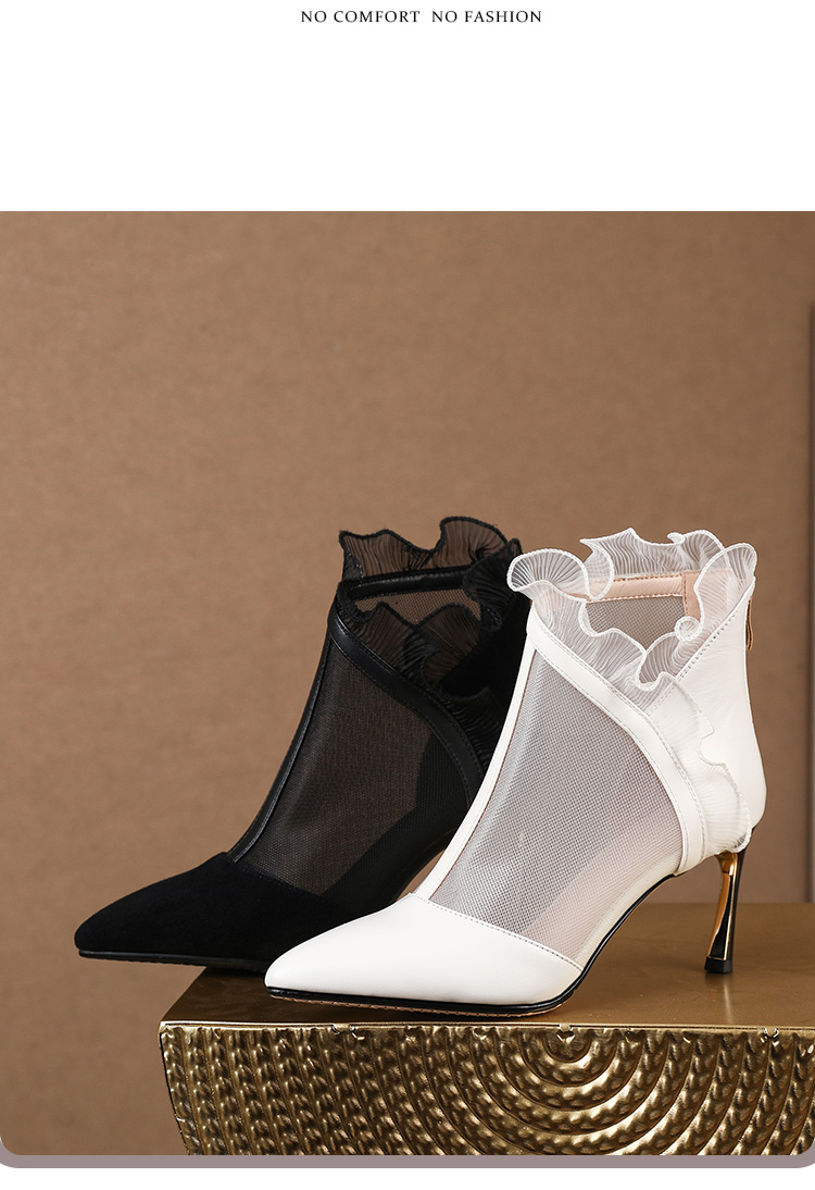 【预售5天】性感百搭,真皮镂空凉靴细跟高帮凉鞋新款网纱短靴PLGZ-A8877-8