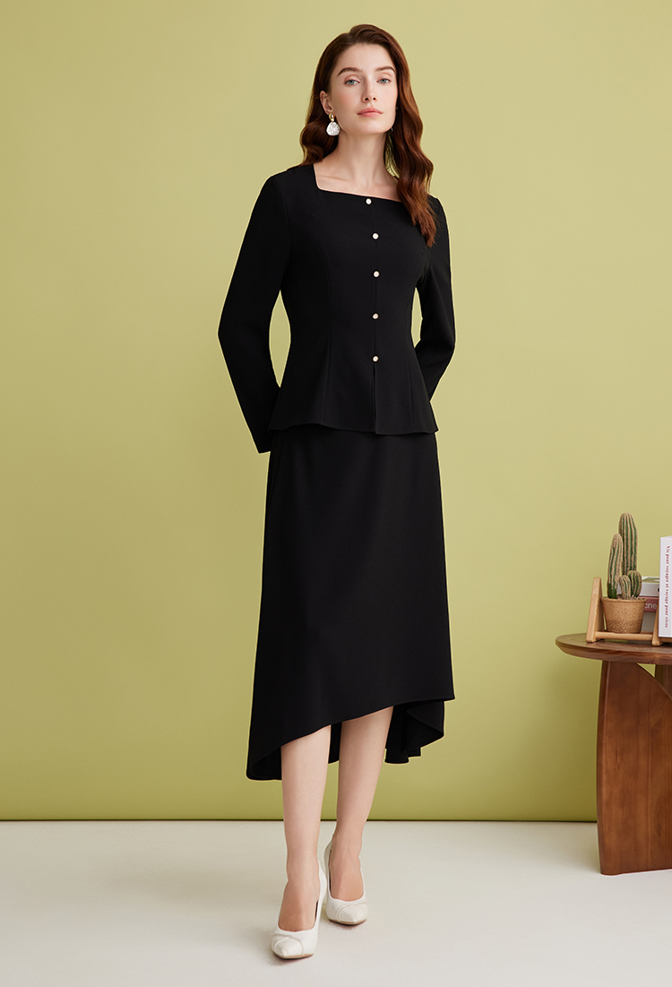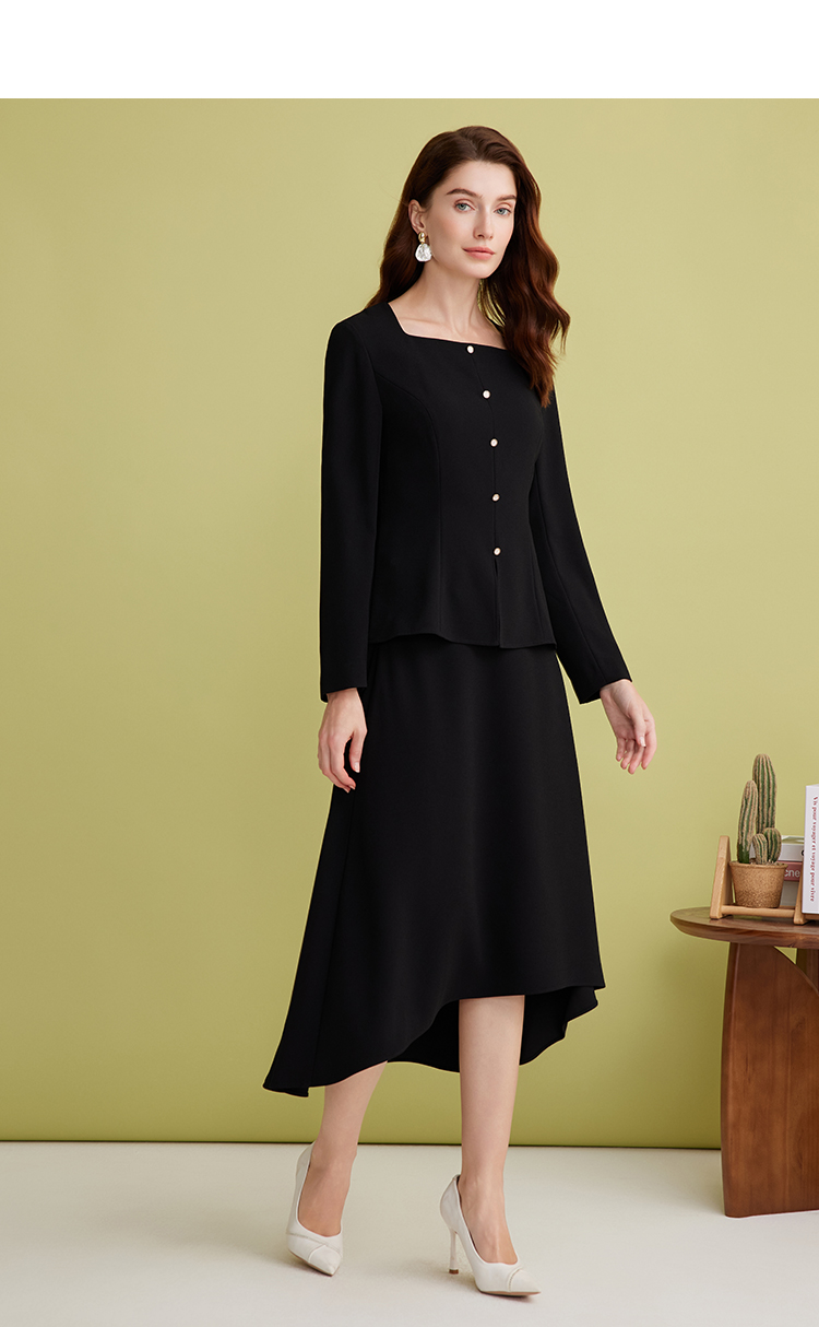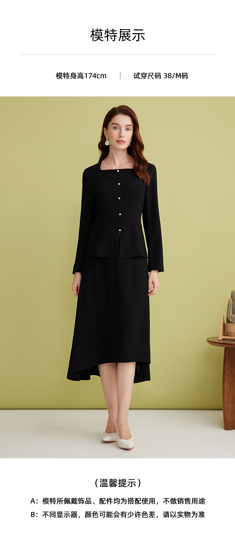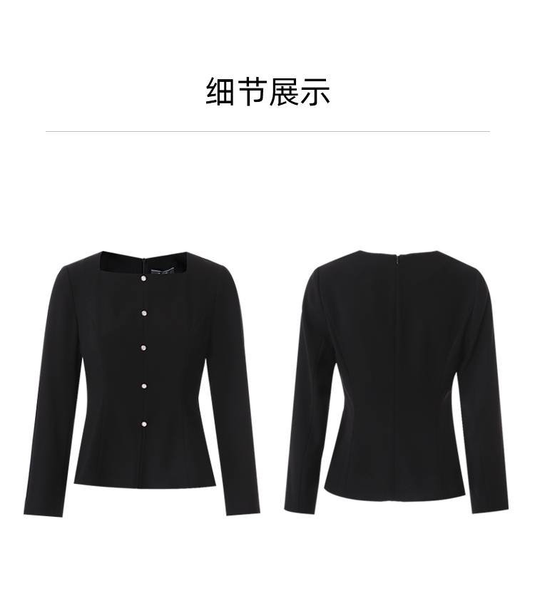 EITIE爱特爱复古气质方领收腰显瘦百搭黑色通勤上衣2025春季新款A2513517