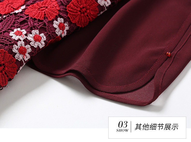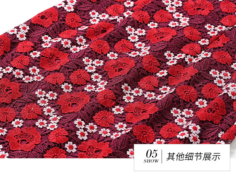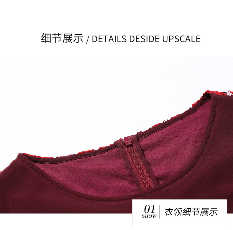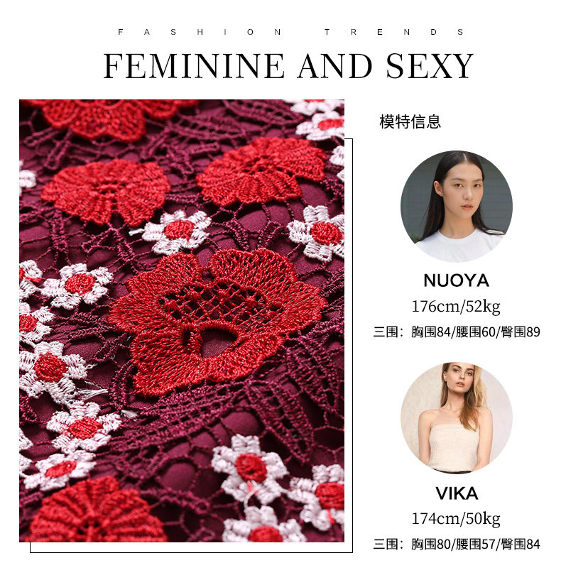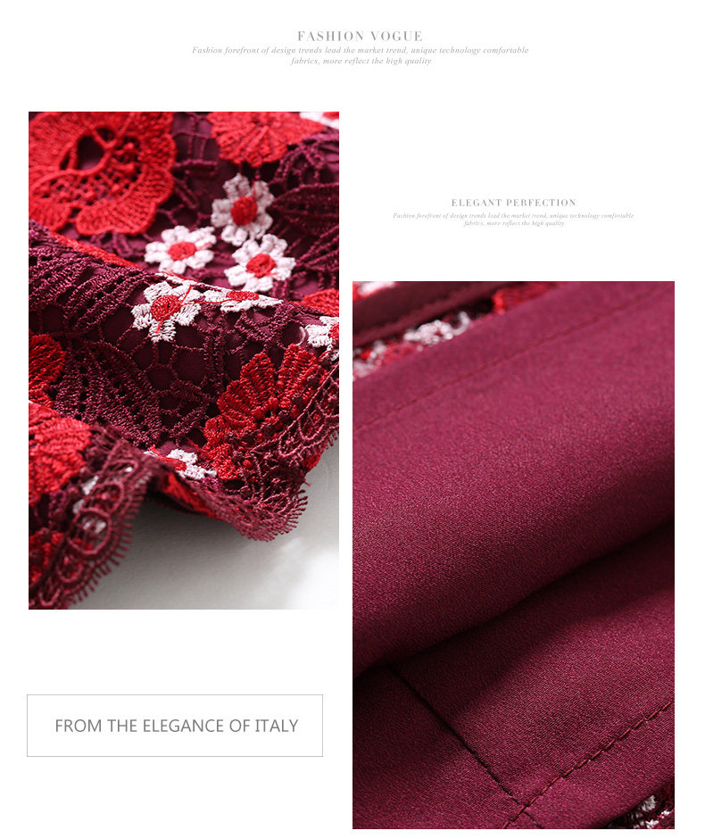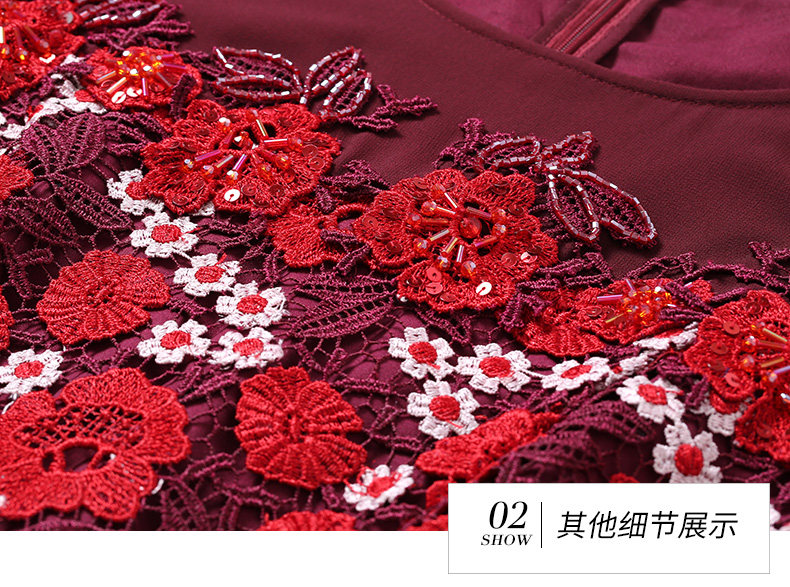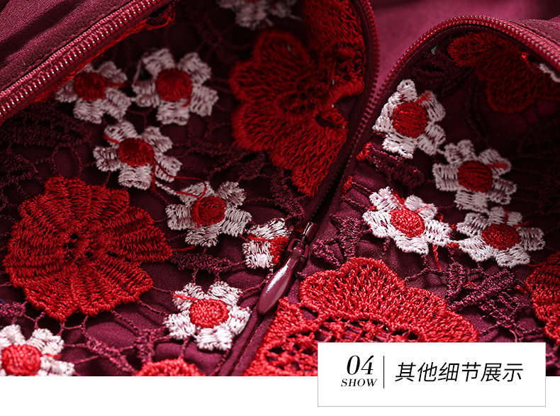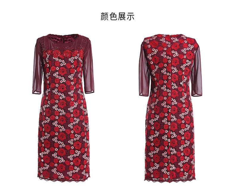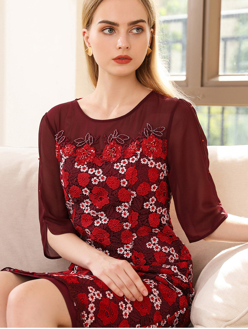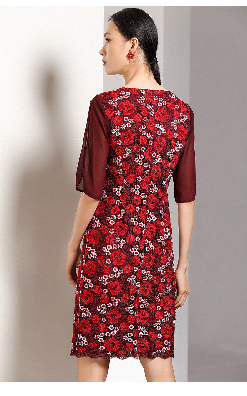 乔万尼秋装红装礼服刺绣花朵中袖连衣裙女中长EN3E367