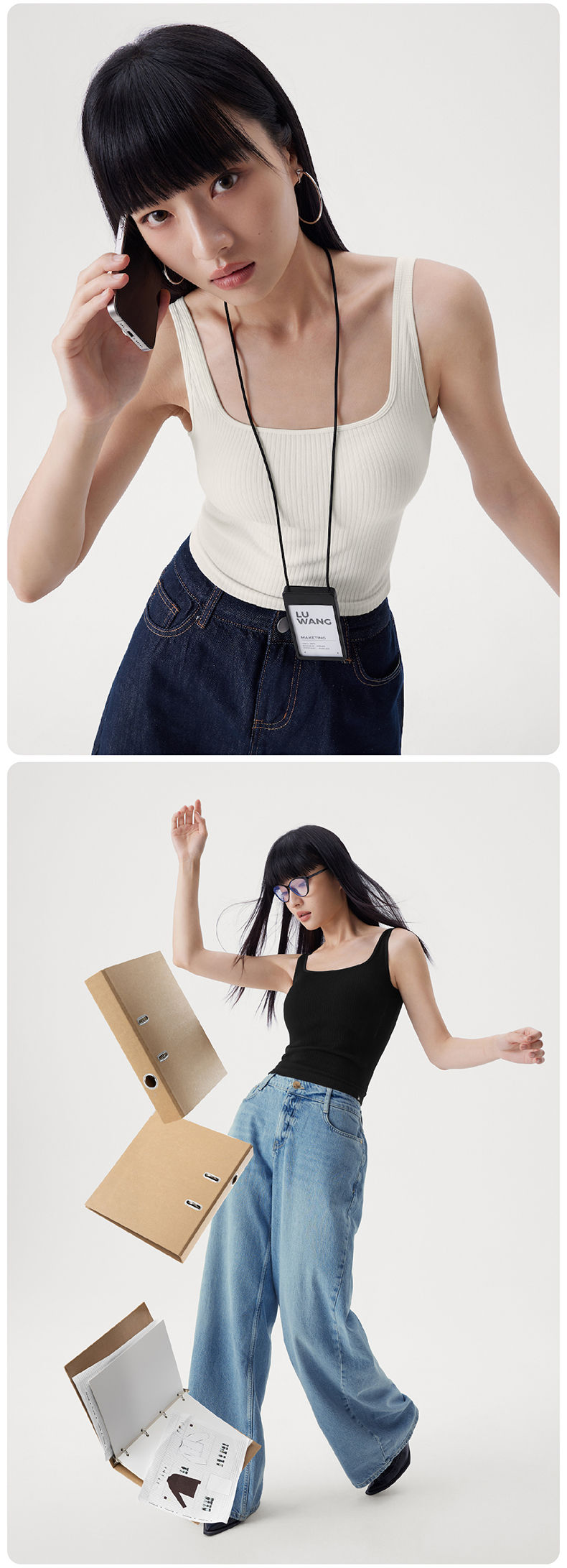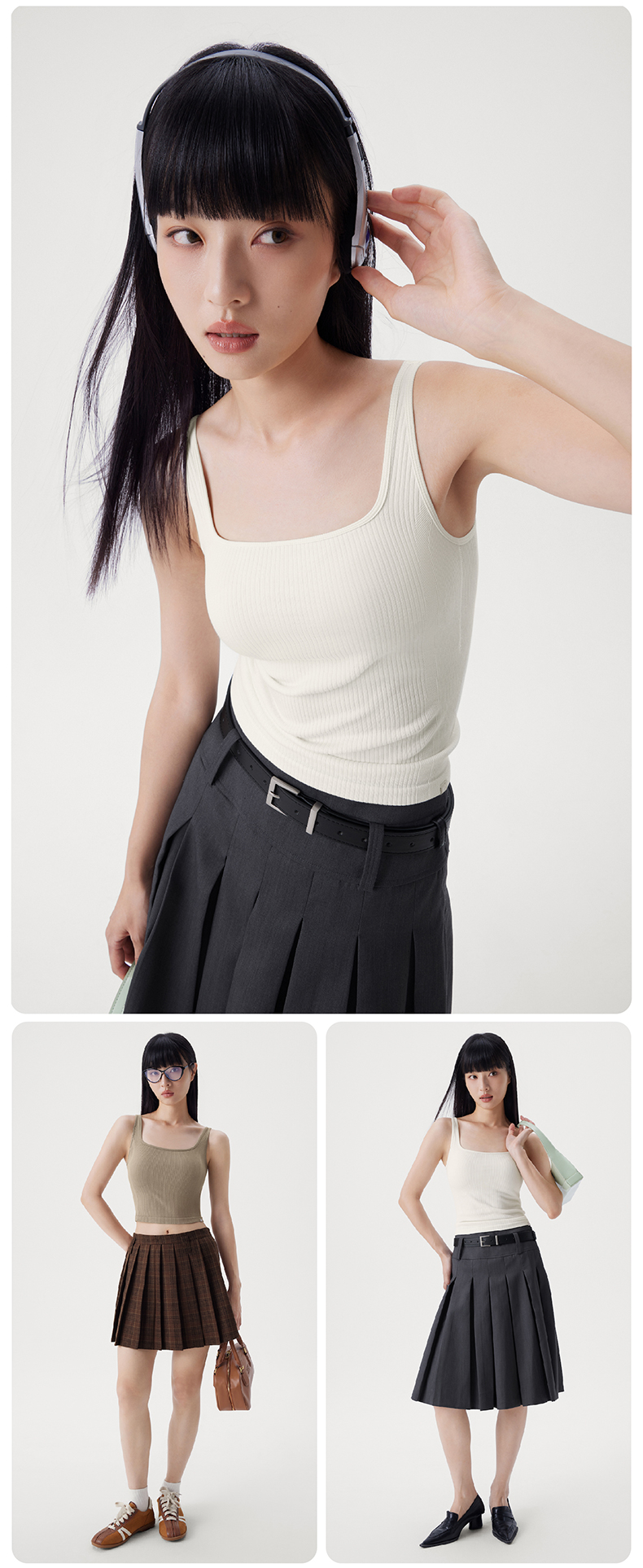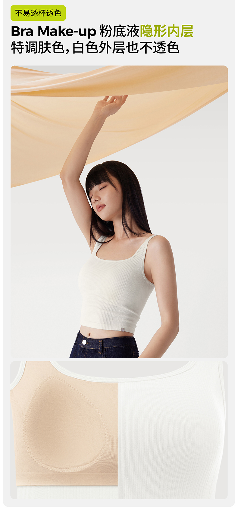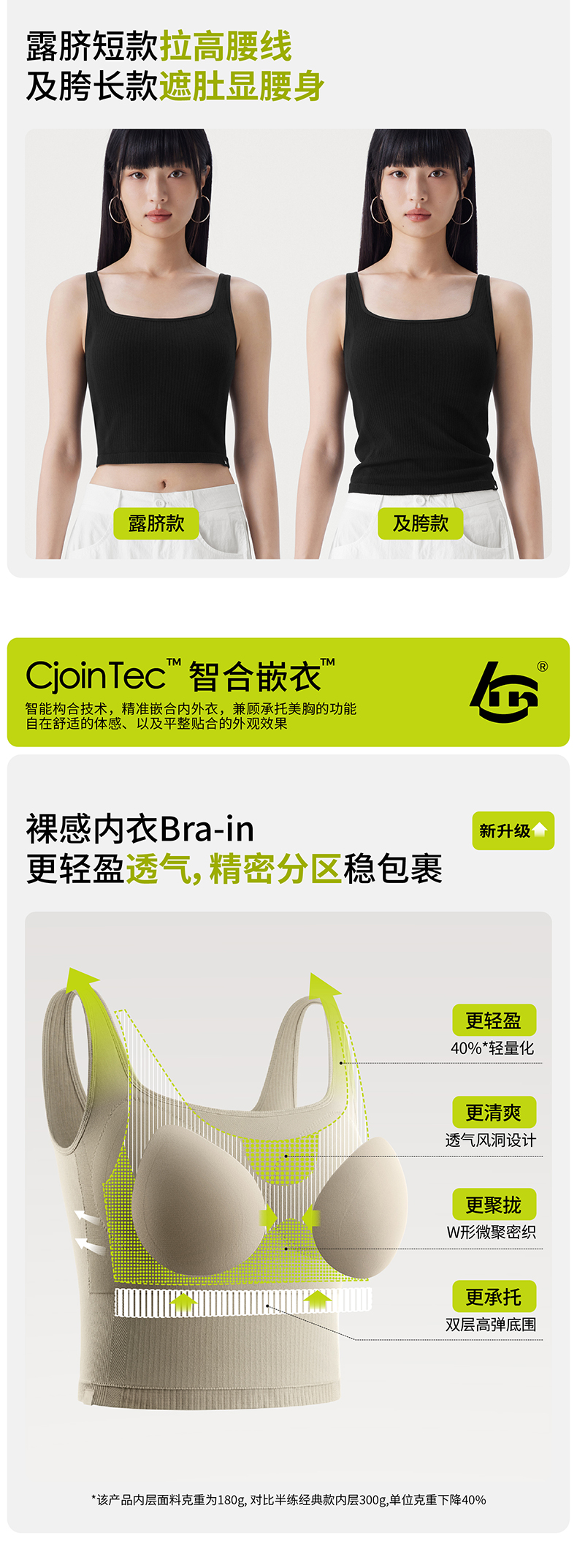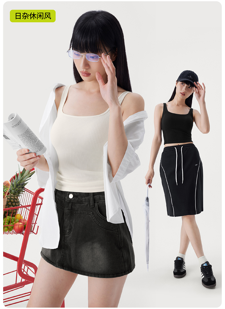 半练方领宽肩带背心3.0 TA037 短款/中长款 白色吊带背心女夏季带胸垫美背文胸一体打底上衣内搭外穿