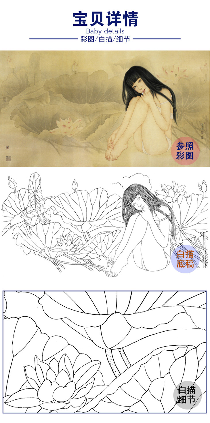 崔景哲横幅工笔现代仕女人物白描底稿-人体-B003