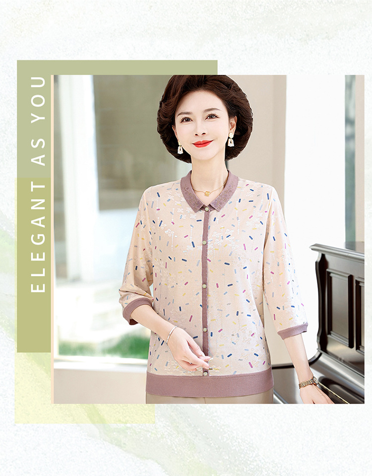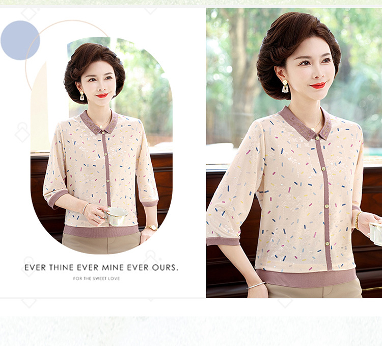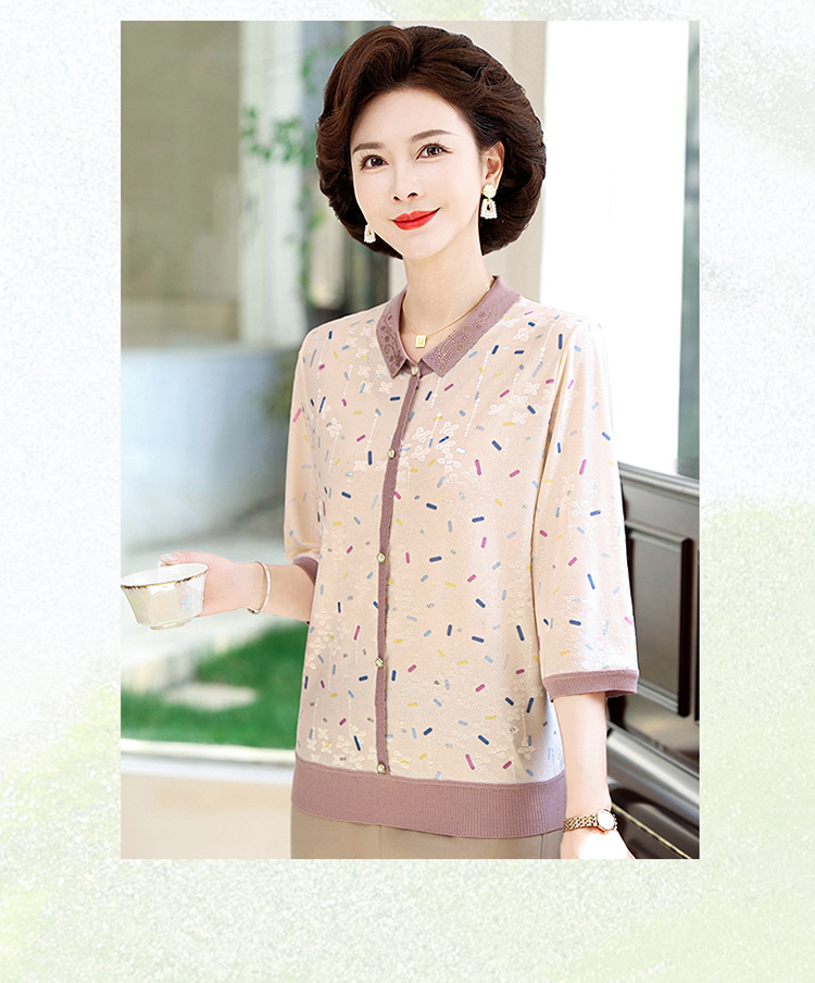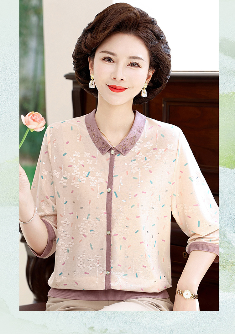 妈妈夏装中袖冰丝t恤中老年女洋气质翻领上衣宽松薄款小衫
