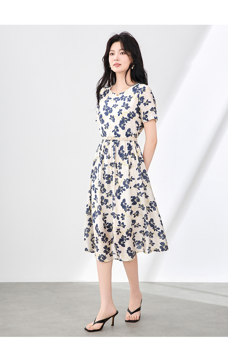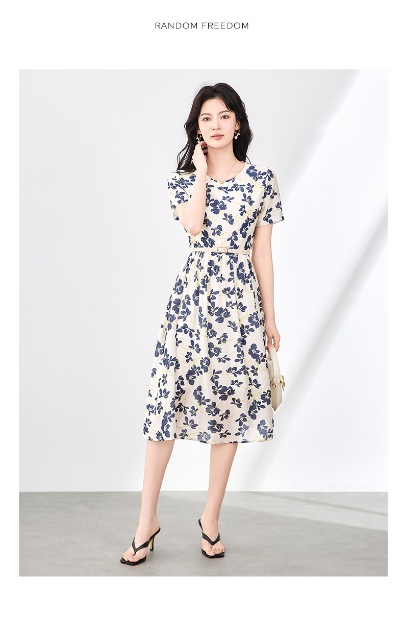 「高货wl」全新升级【铂金会员293/天猫389/差价96】(04739)洛诗琳气质印花天丝麻连衣裙2025夏季新款优雅收腰裙子女wl04739