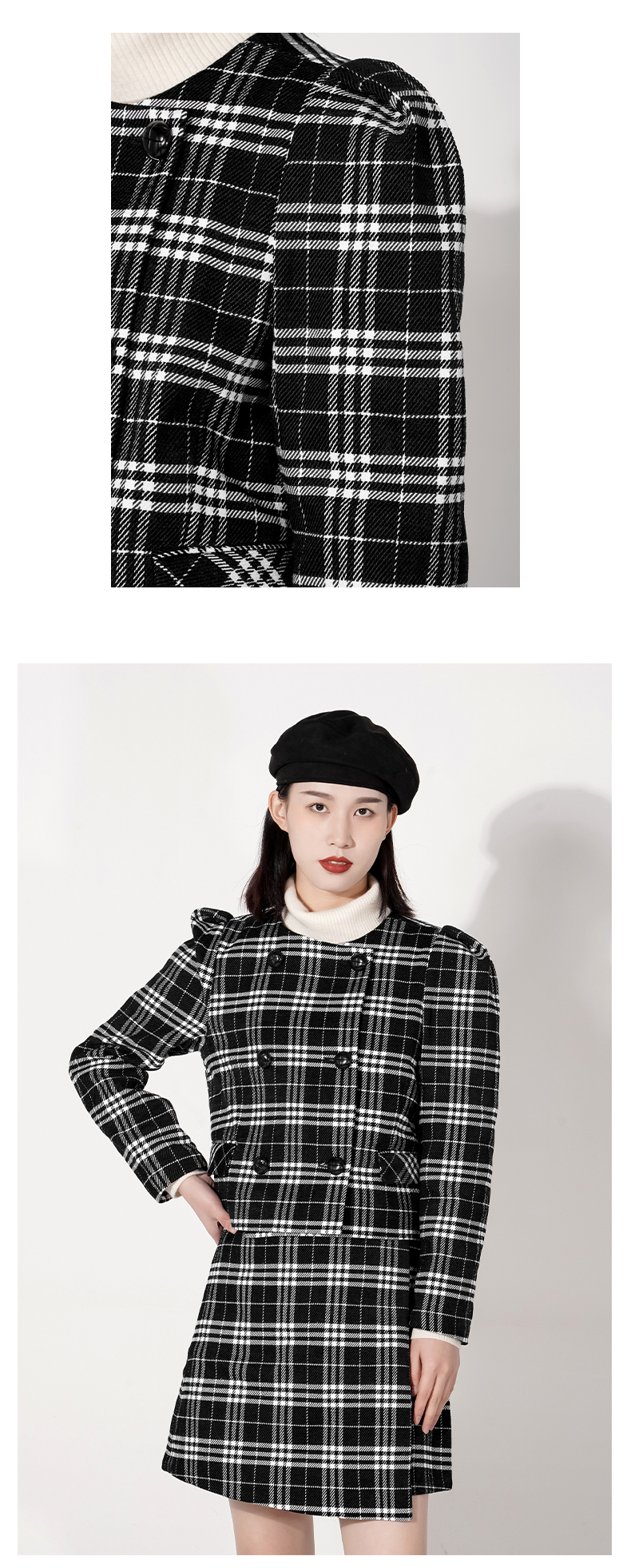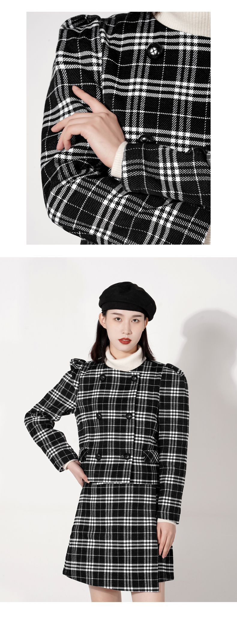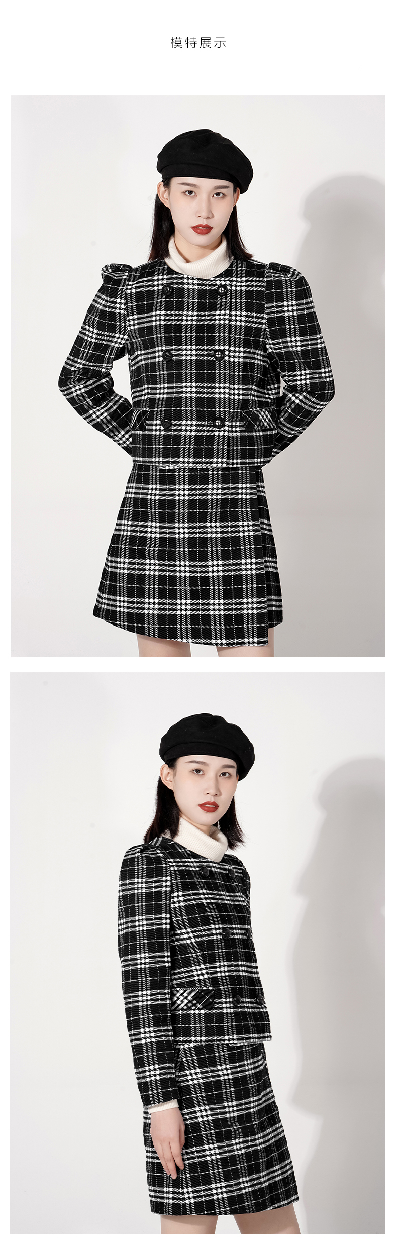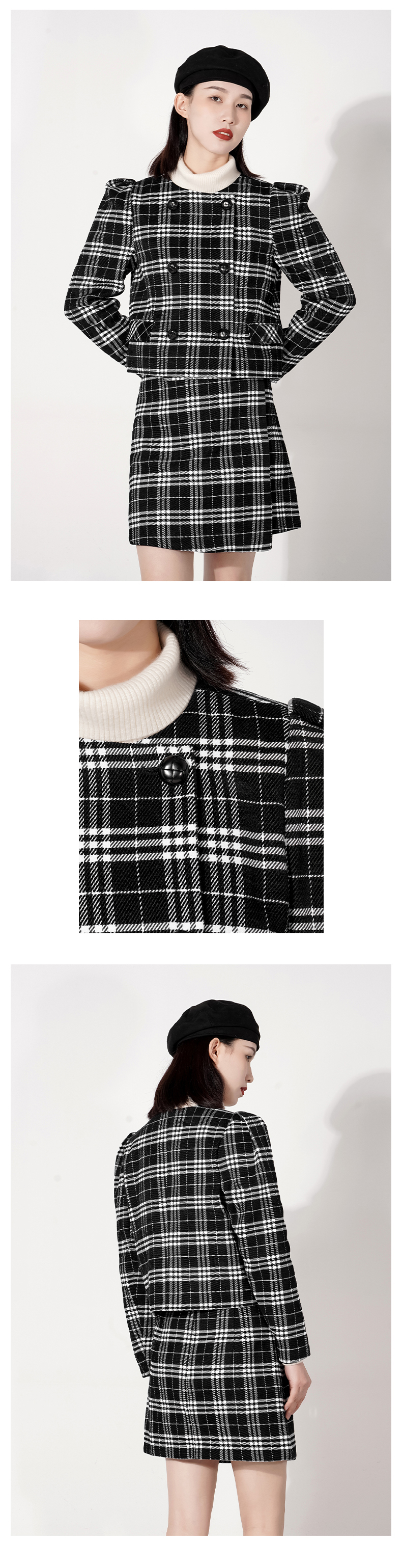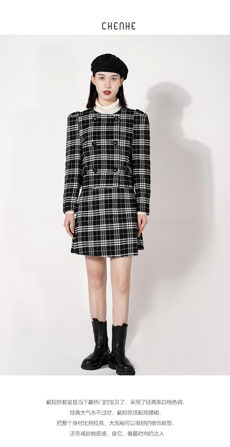 截短款套装是当下蕞热门的宝贝了,采用了经典黑白格色调,经典大气永不过时,截短款搭配高腰裙,把整个身材比例拉高,大泡袖可以很好的修饰肩型,还带减龄俏皮感,盘它,做最时尚的达人