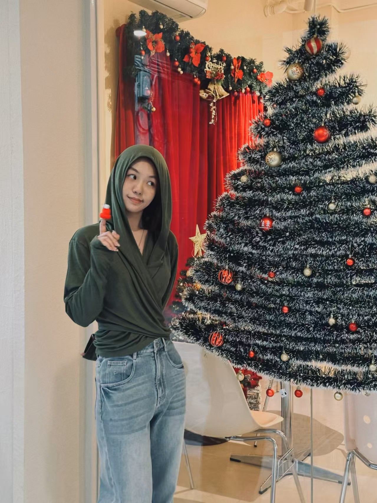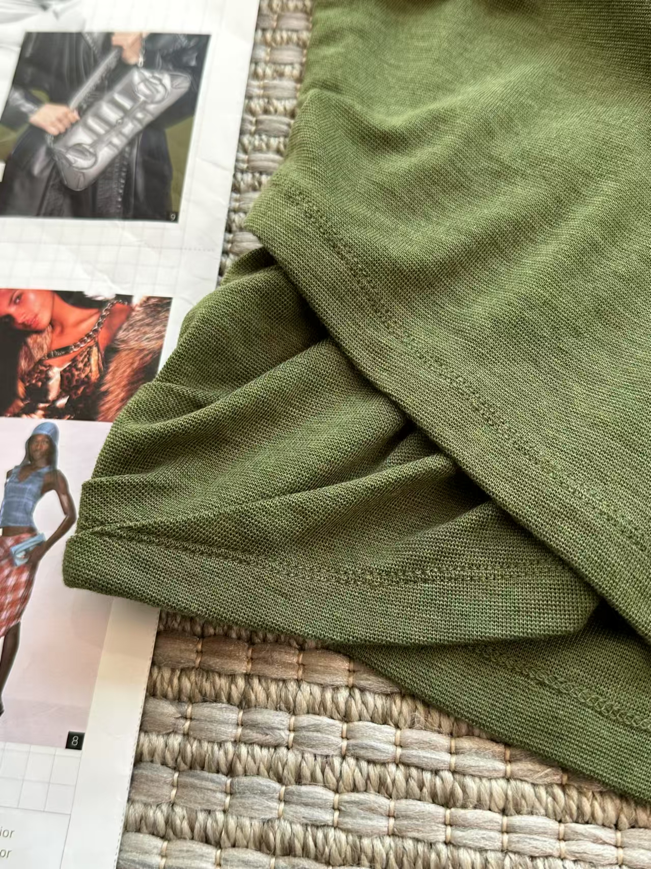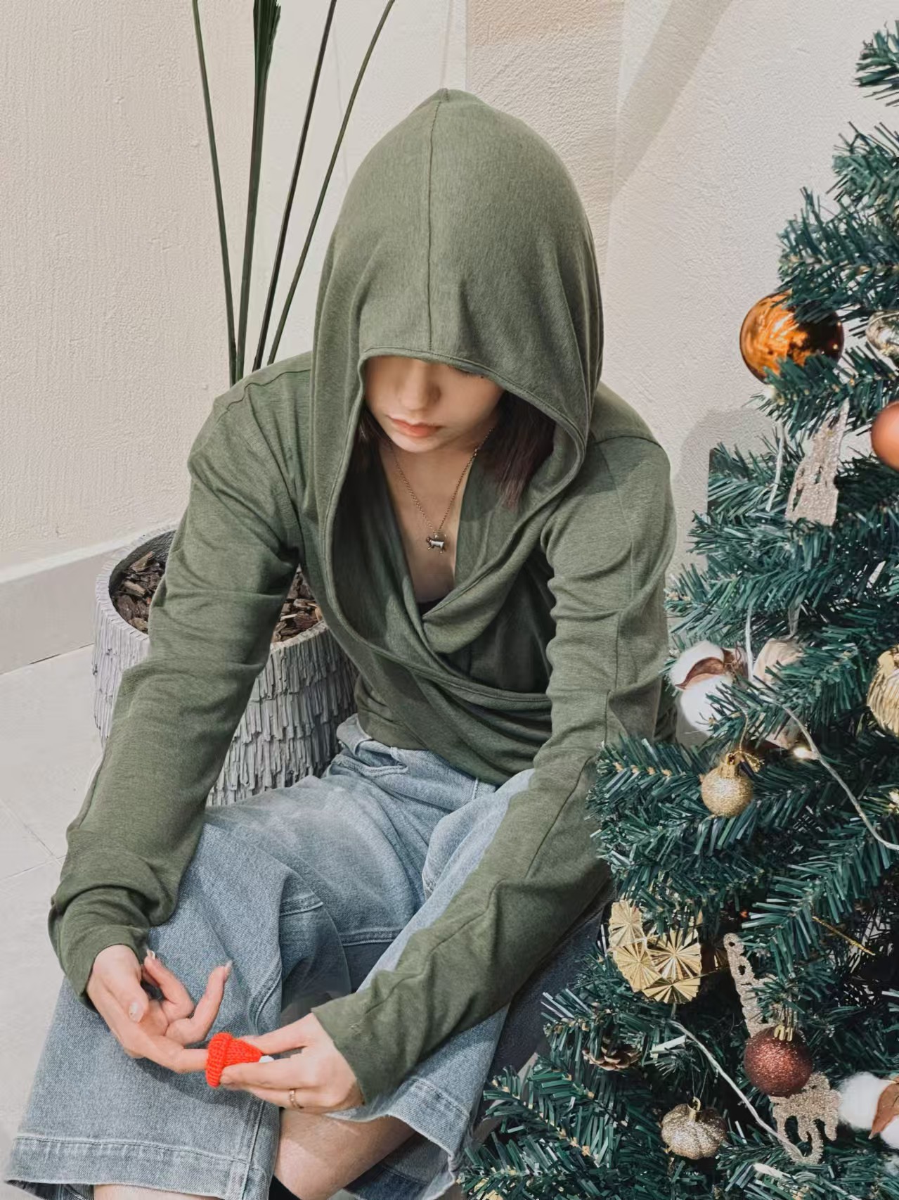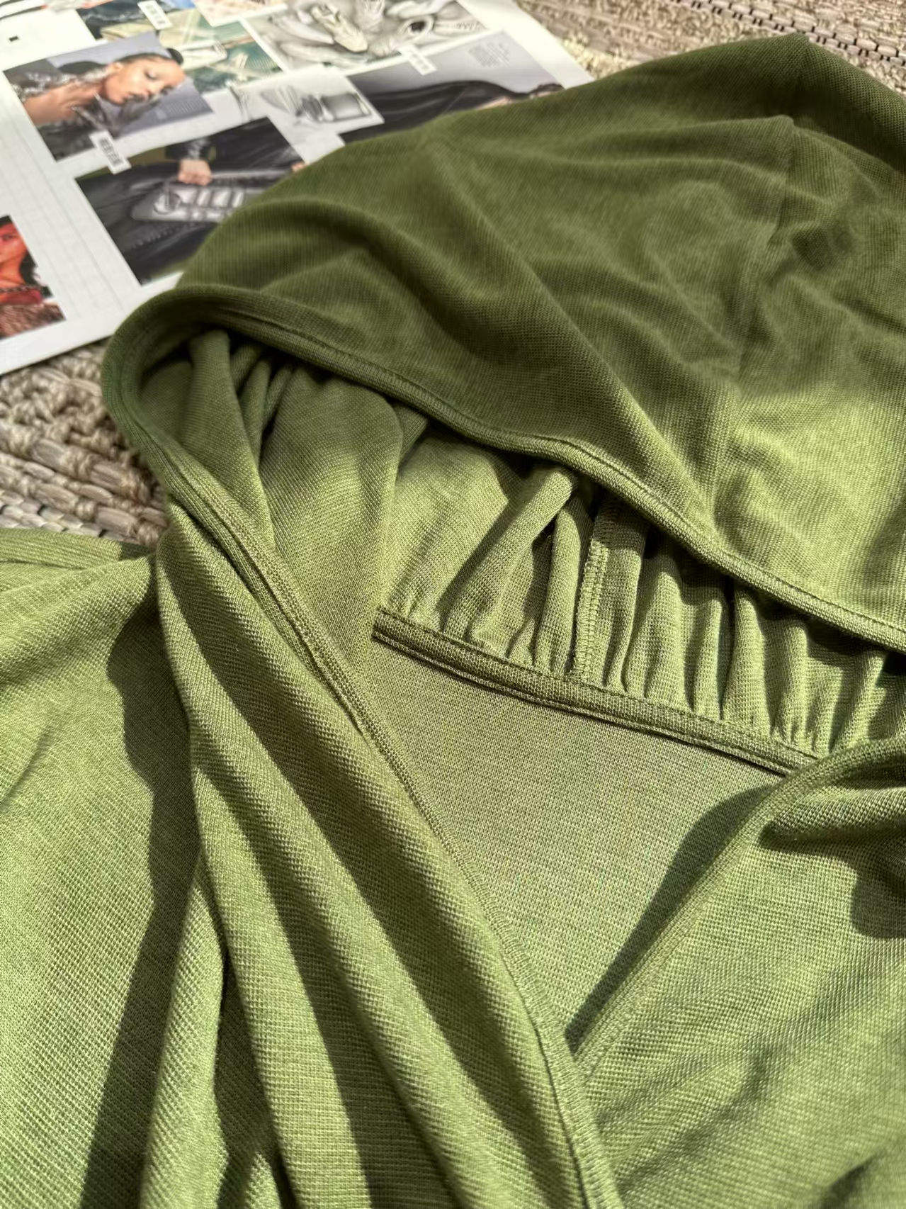 顺丰包邮42059洛诗琳柔软牛油果绿色垂褶连帽小衫220340
