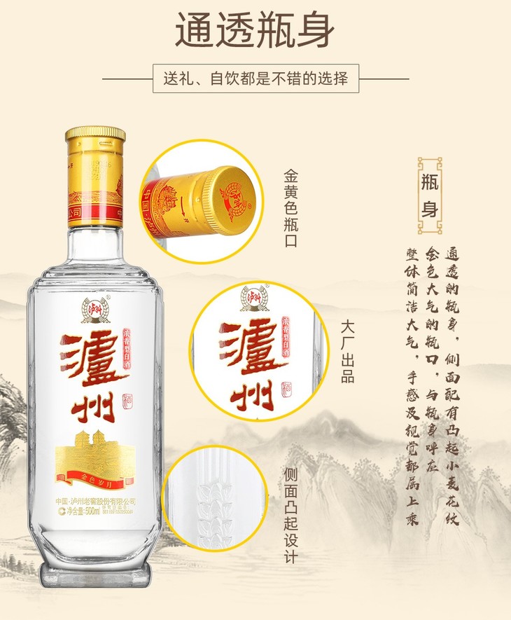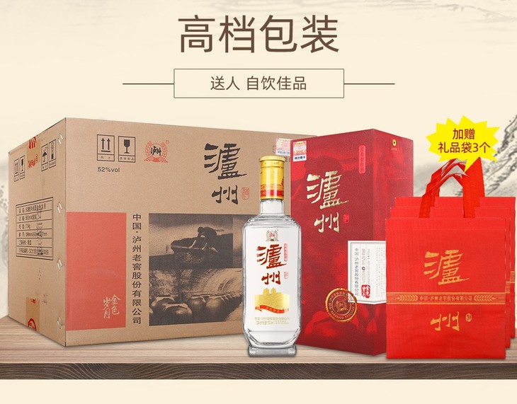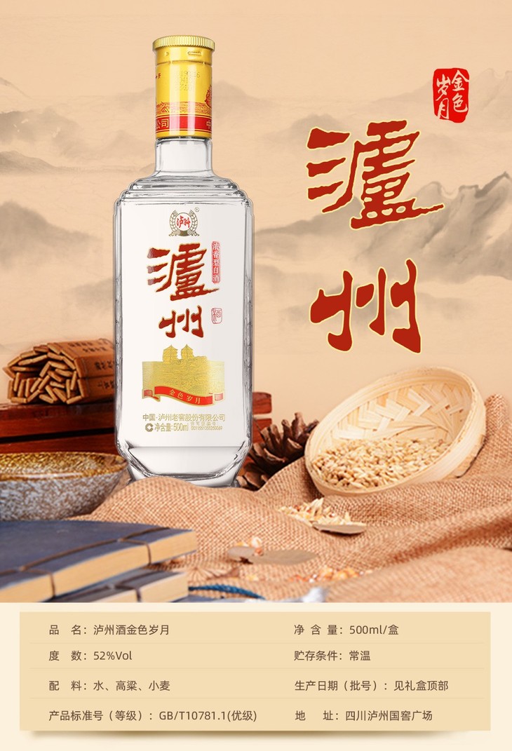 【推荐】泸州老窖股份 金色岁月 浓香型 52度 500ml*6瓶 整箱装