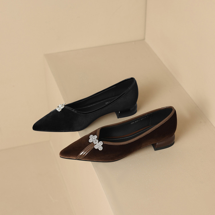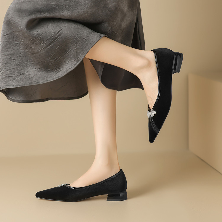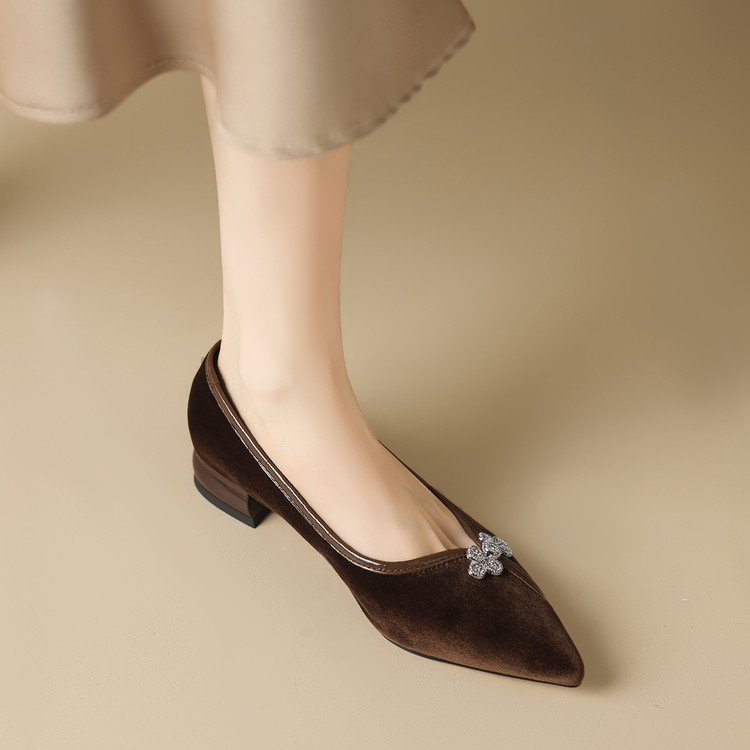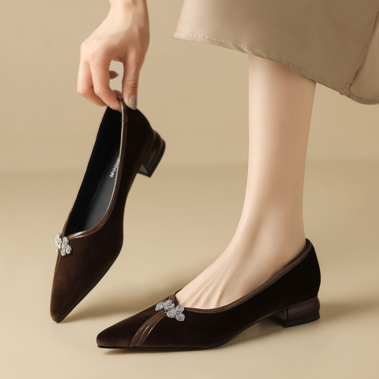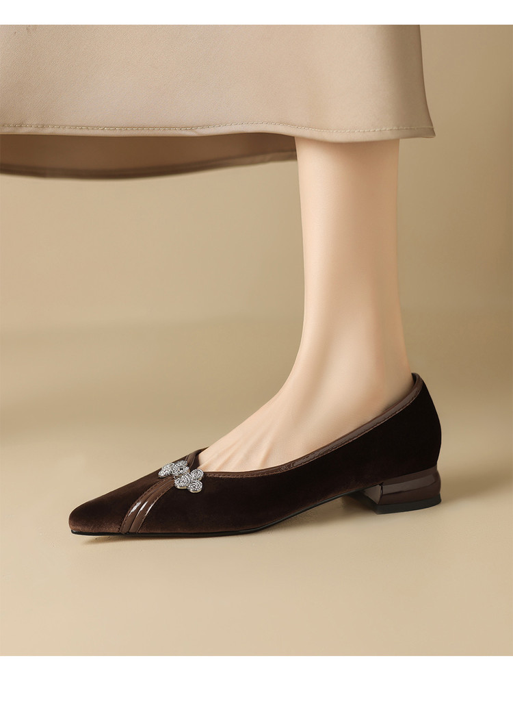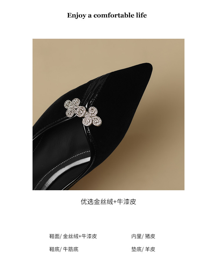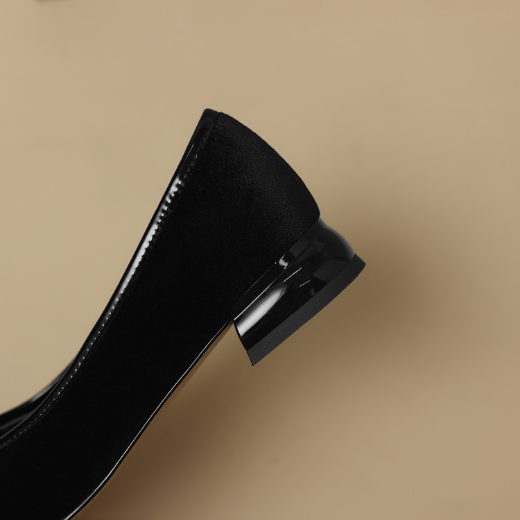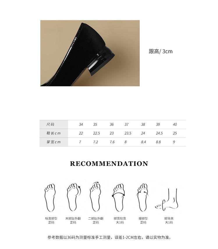【货号】0285【帮面材质】金丝绒+牛漆皮【内里材质】猪里【鞋垫材质】羊皮里【鞋底材质】牛筋底【跟高】3CM【颜色】黑色 深棕色【尺码】34-40(大小定制不退换)