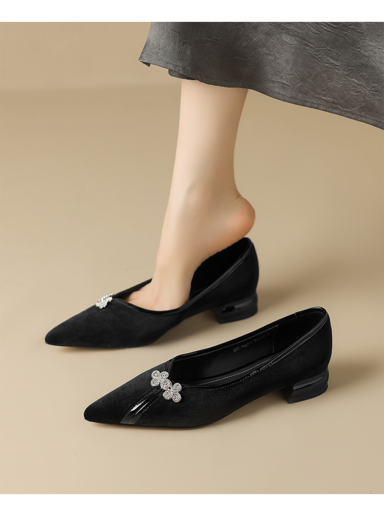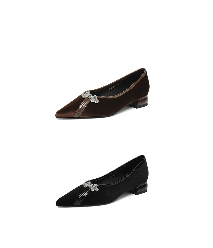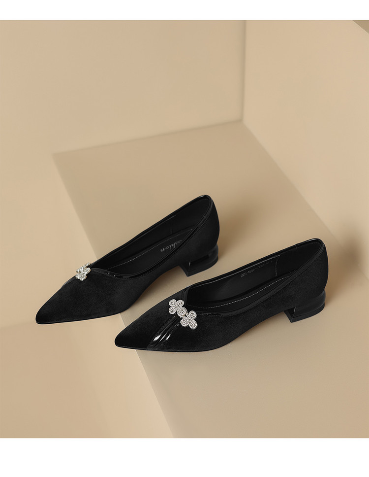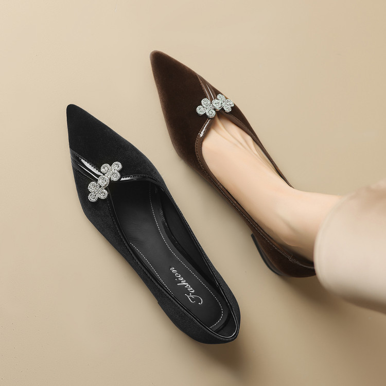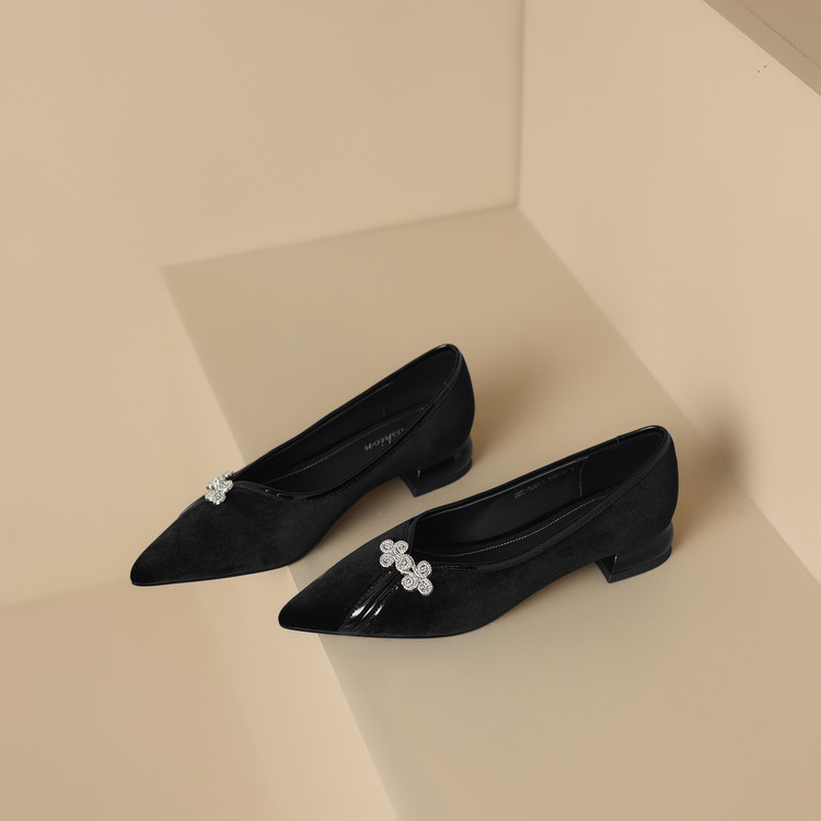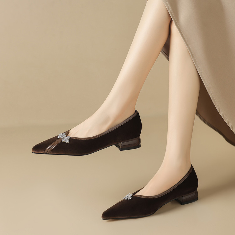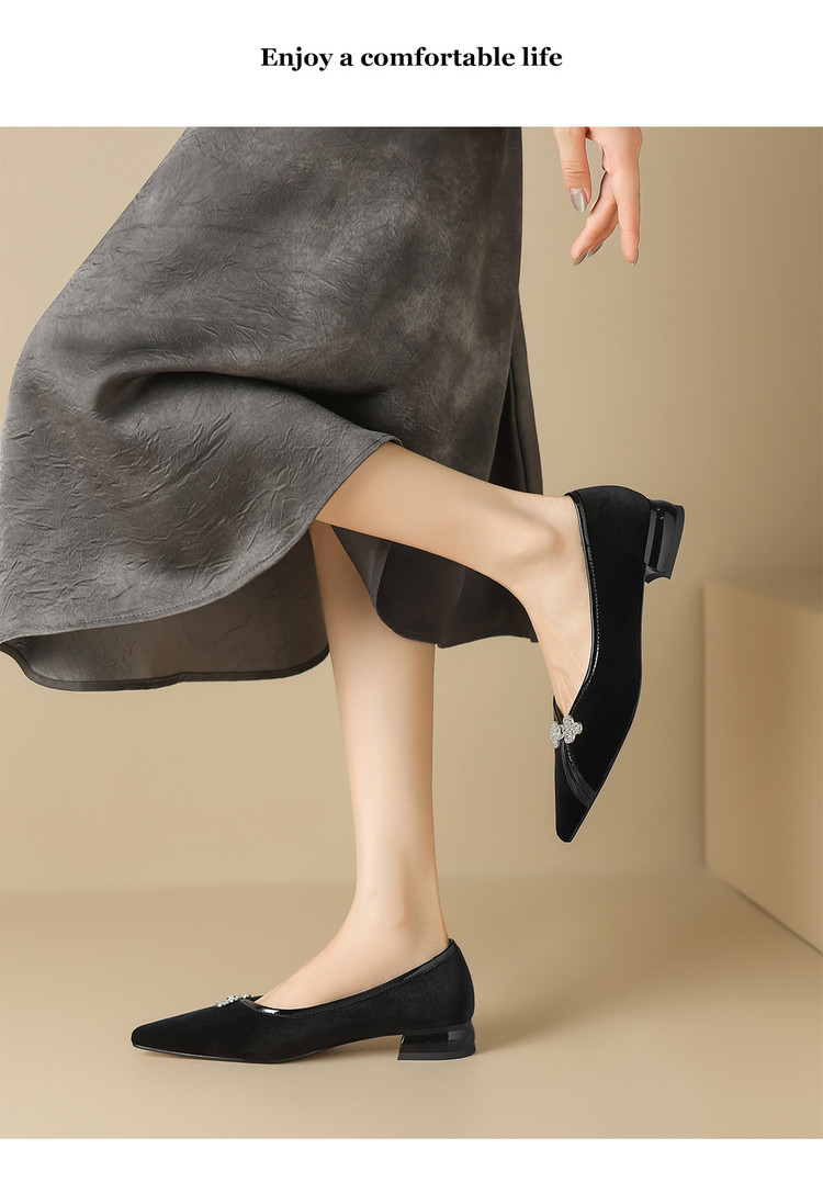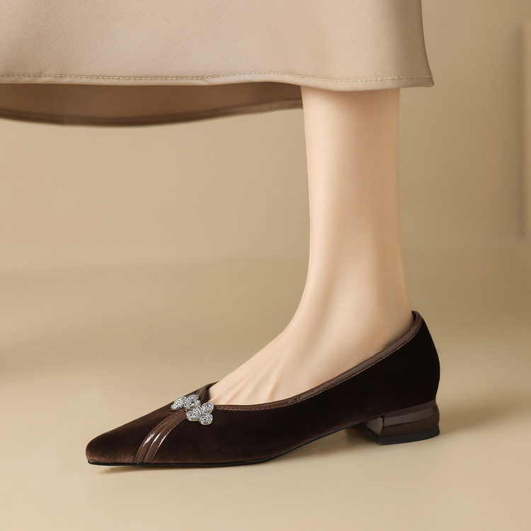 【货号】0285【帮面材质】金丝绒+牛漆皮【内里材质】猪里【鞋垫材质】羊皮里【鞋底材质】牛筋底【跟高】3CM【颜色】黑色 深棕色【尺码】34-40(大小定制不退换)
