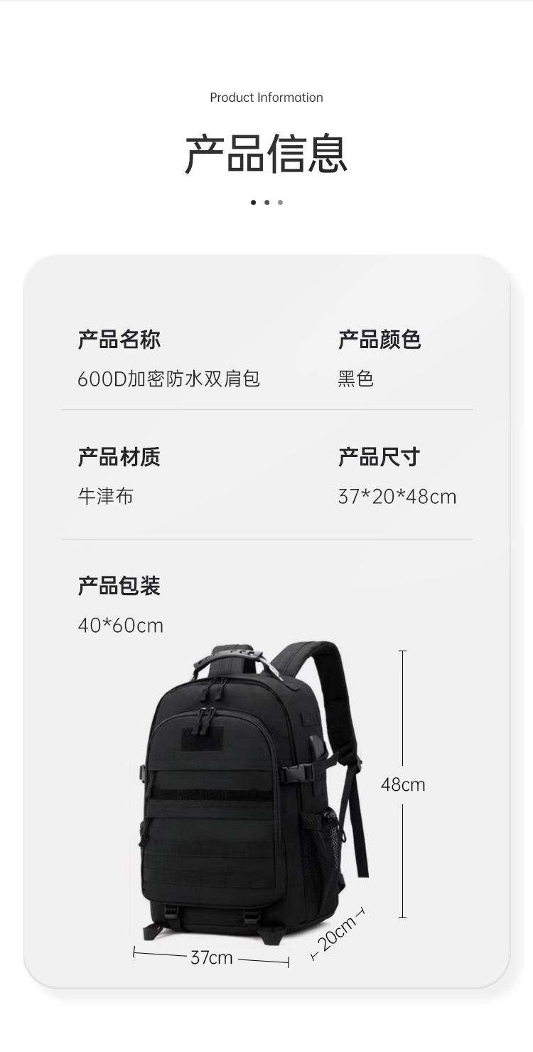 【600D加密防水双肩包】大容量防水勤务收纳包 外置USB插口双肩背包