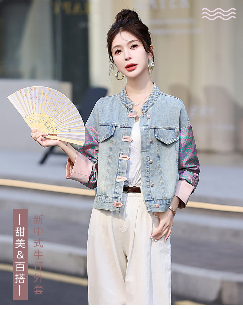 GUO风盘扣牛仔外套,时尚休闲外套HR-XYFS6780