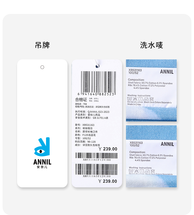 【实体店同款】男童圆领长袖卫衣秋季新款安奈儿童装XB531163