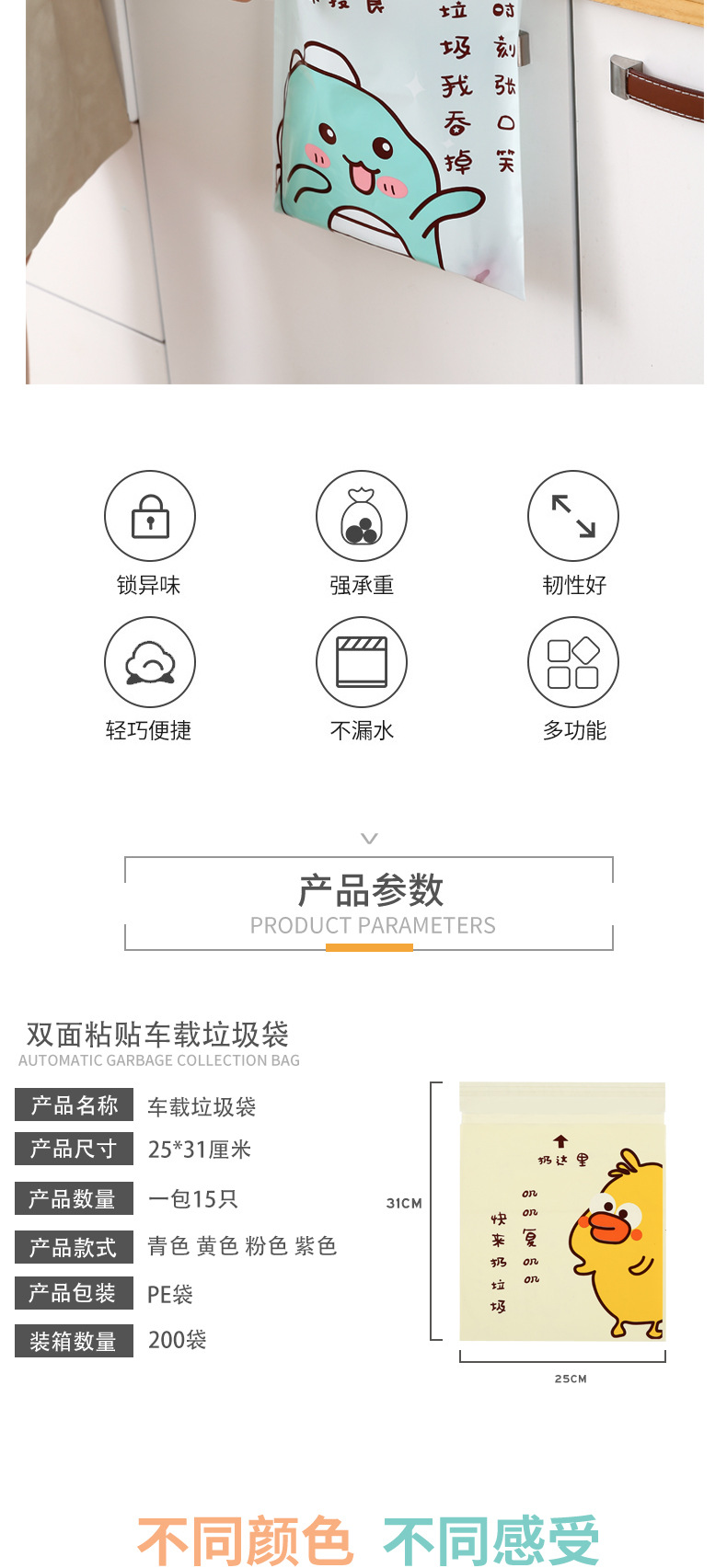 【车中常备!便携粘贴车载垃圾袋】车载一次性分类垃圾袋便携粘贴式收纳袋家用厨房旅行一次性塑料袋
