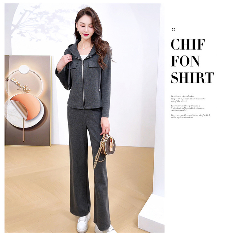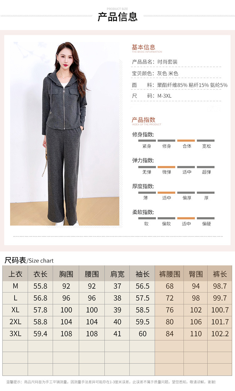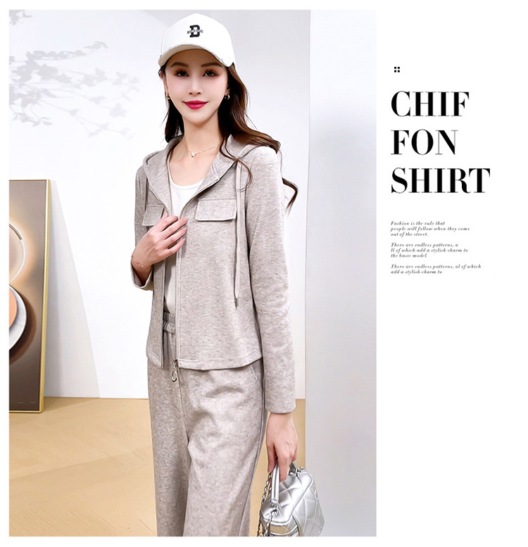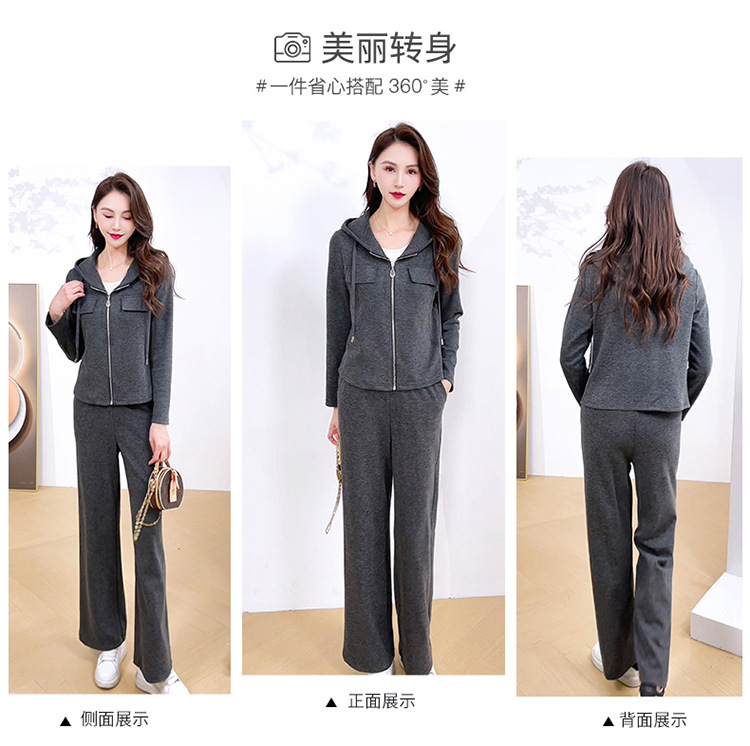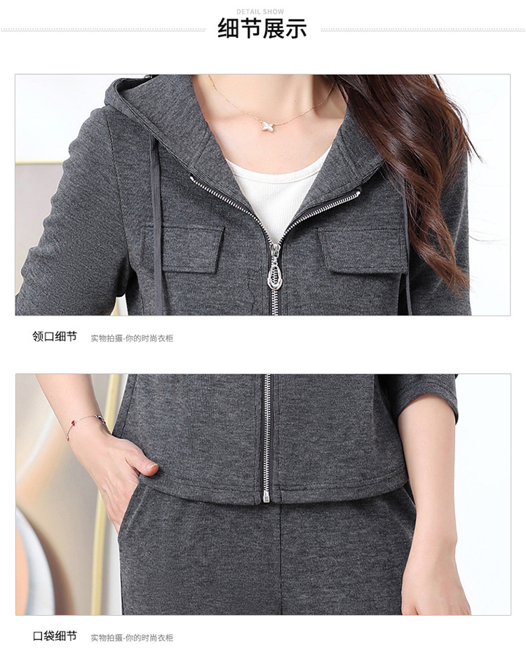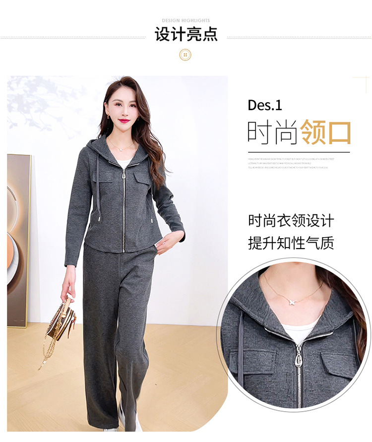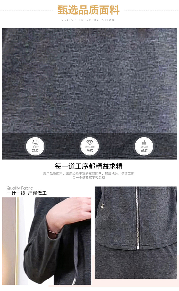 QYM 4905-L休闲运动套装连帽卫衣外套简约宽松两件套 商品图2