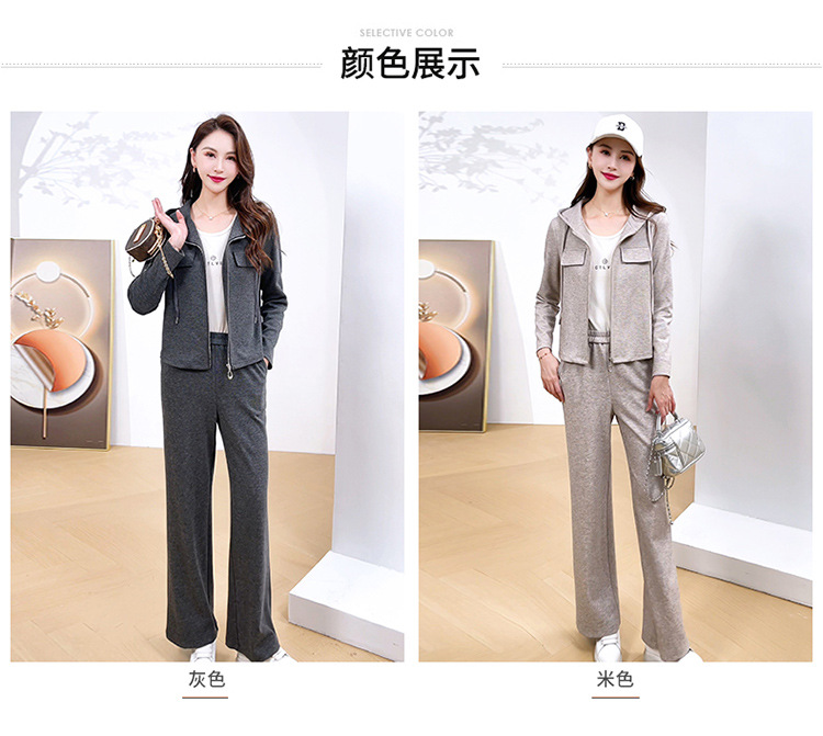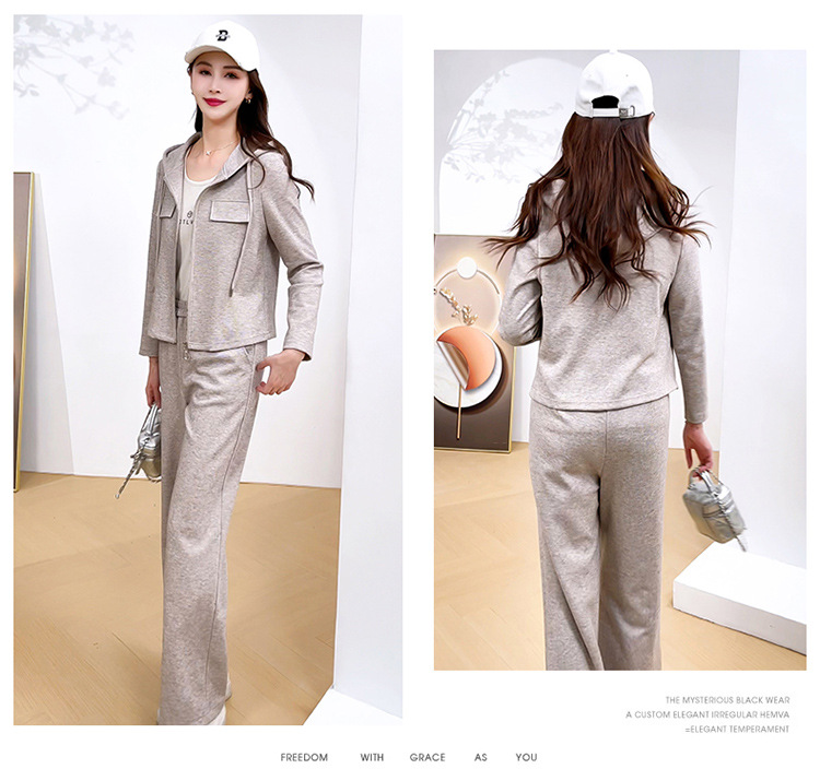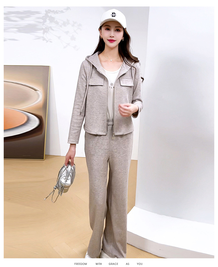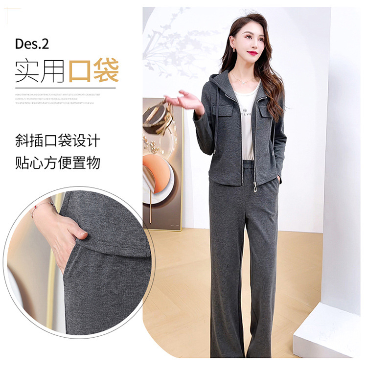 QYM 4905-L休闲运动套装连帽卫衣外套简约宽松两件套 商品图3