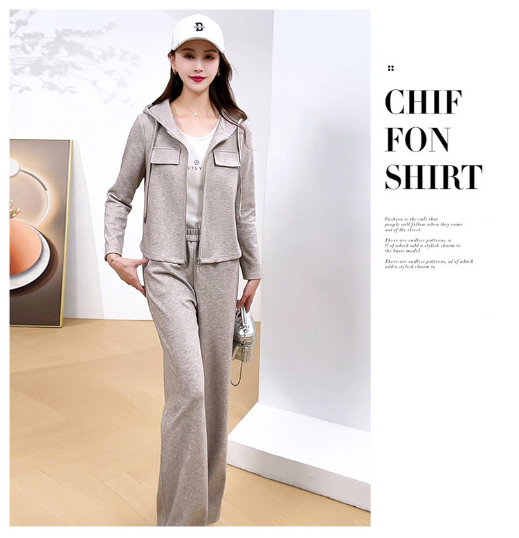 QYM 4905-L休闲运动套装连帽卫衣外套简约宽松两件套 商品图0
