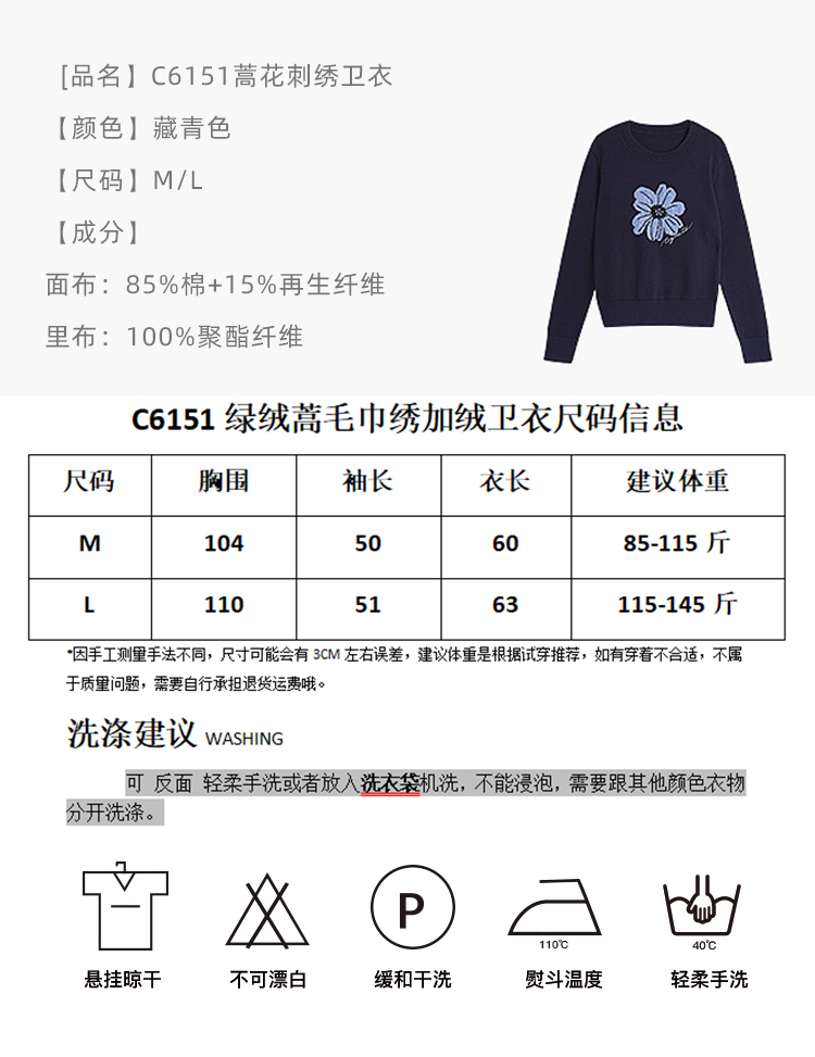 一、绿绒蒿毛巾绣加绒卫衣C6151