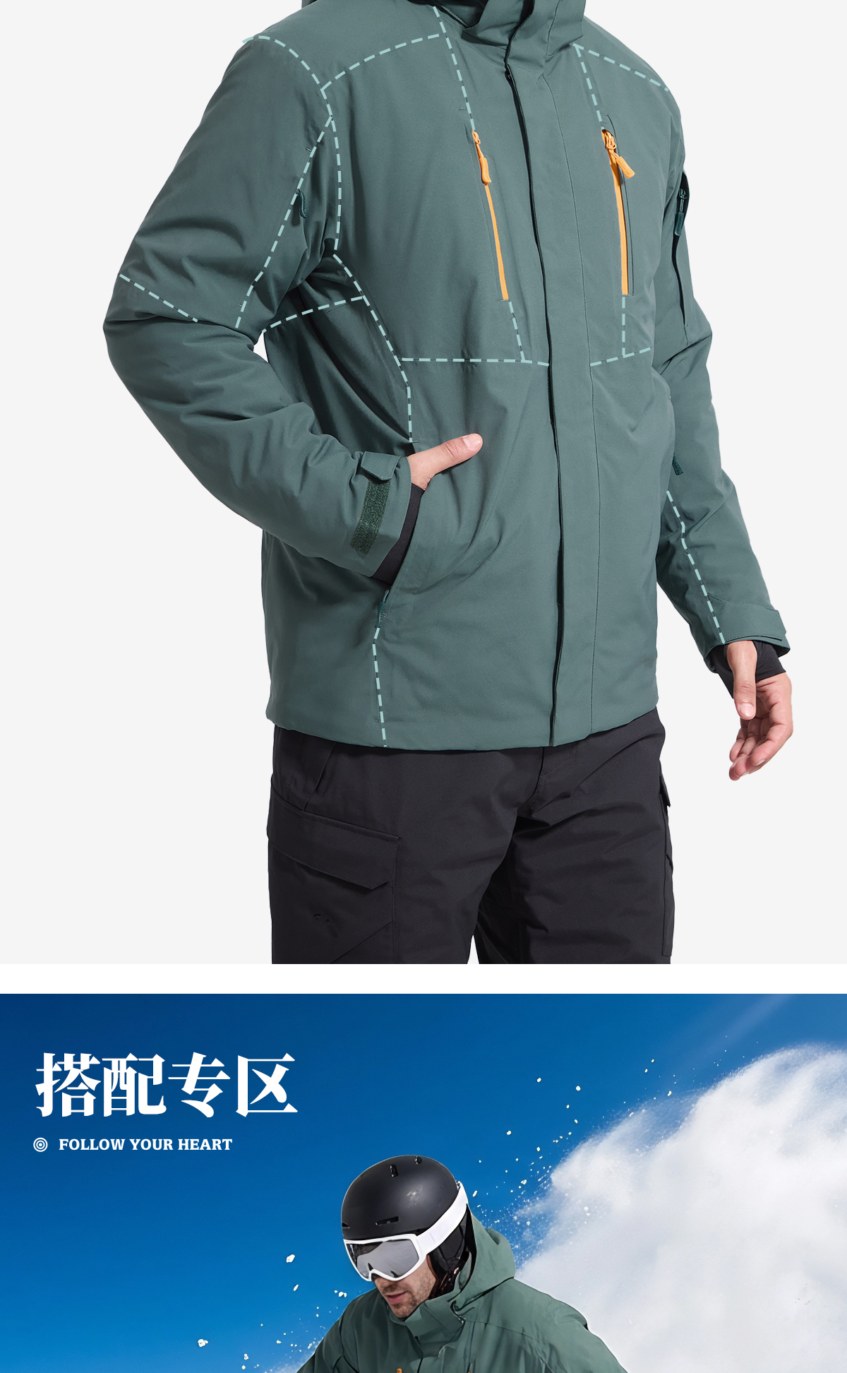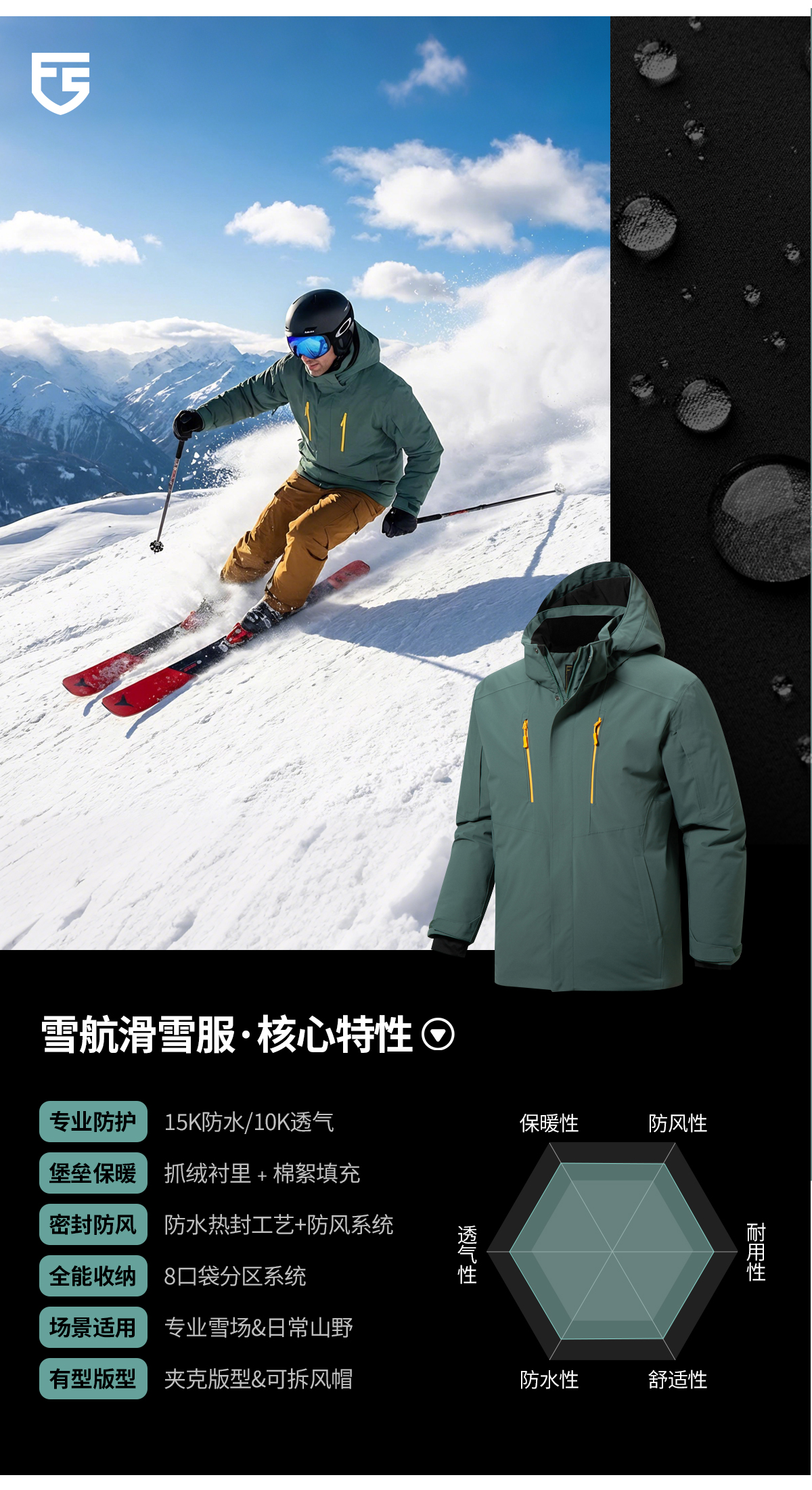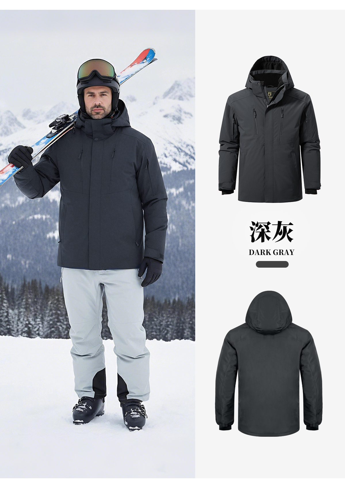 【15K防水/10K透气 8口袋装载 夹棉加厚 硬核抗寒】雪航防风可拆卸滑帽雪服 ds(zb)