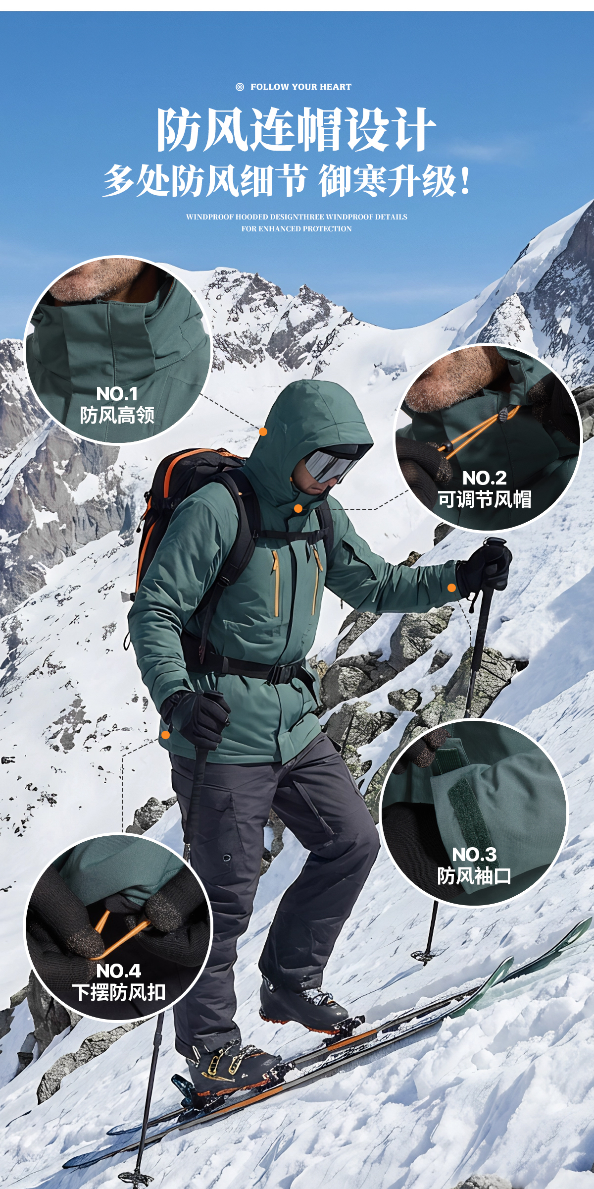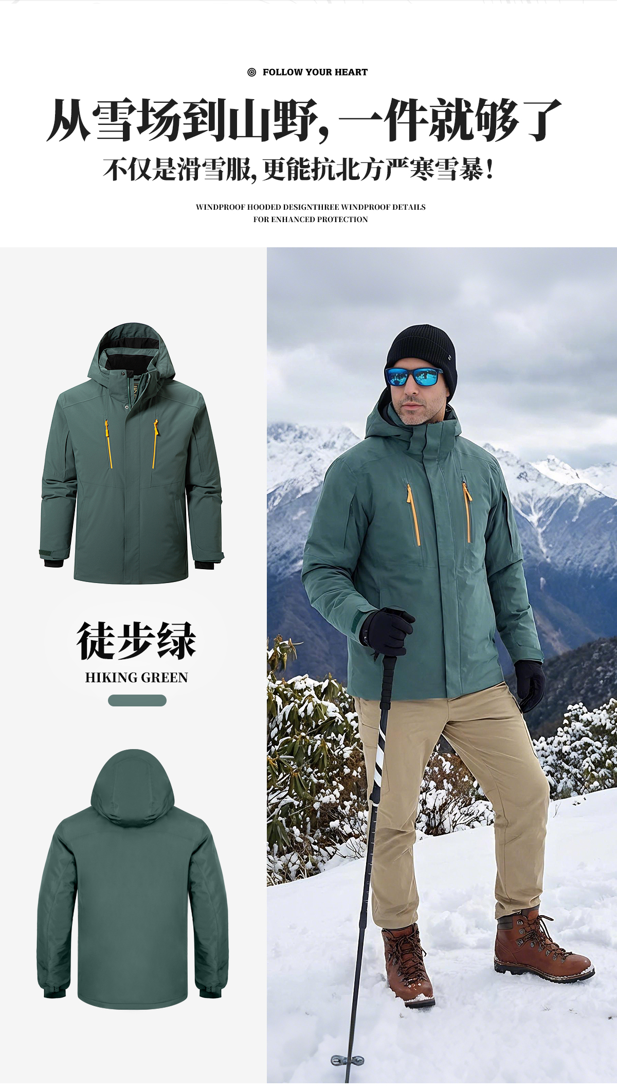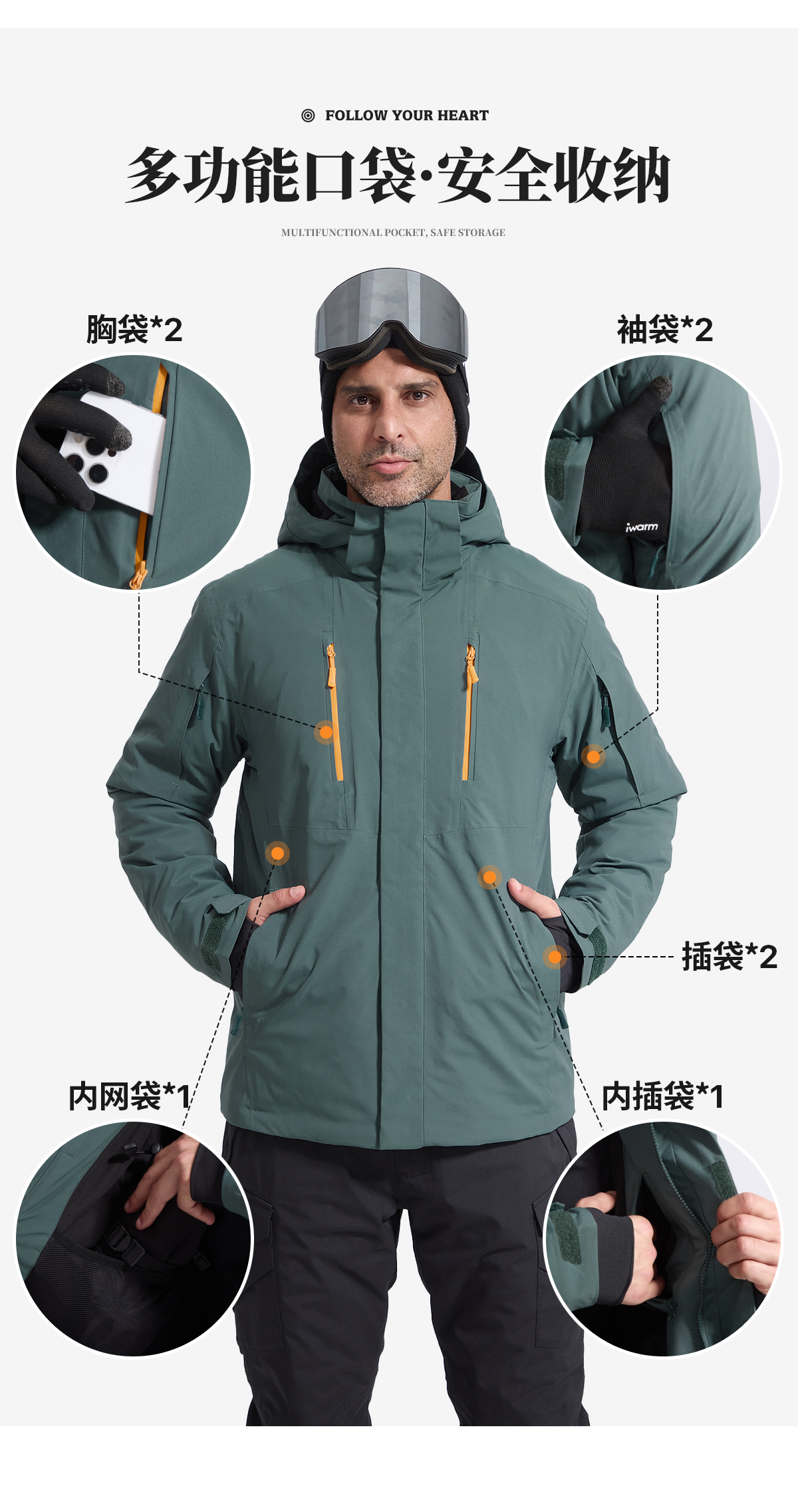 【15K防水/10K透气 8口袋装载 夹棉加厚 硬核抗寒】雪航防风可拆卸滑帽雪服 ds(zb)
