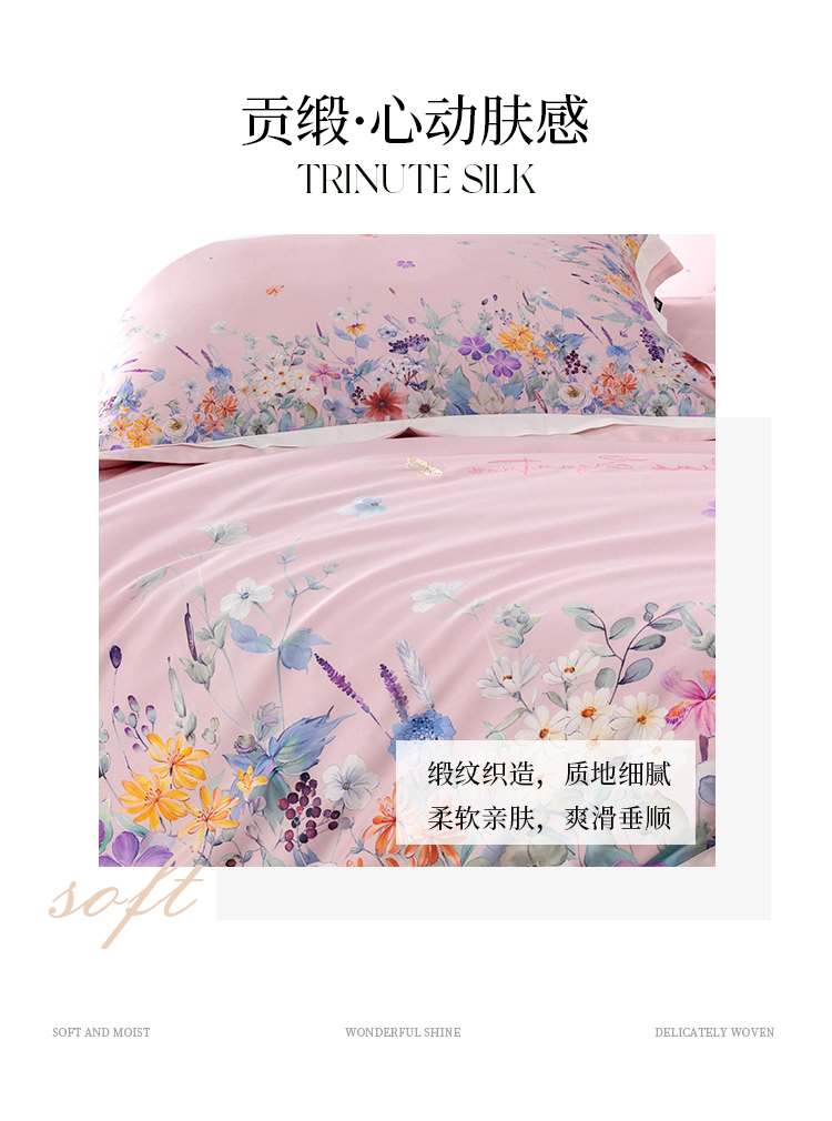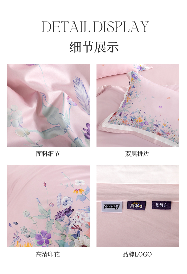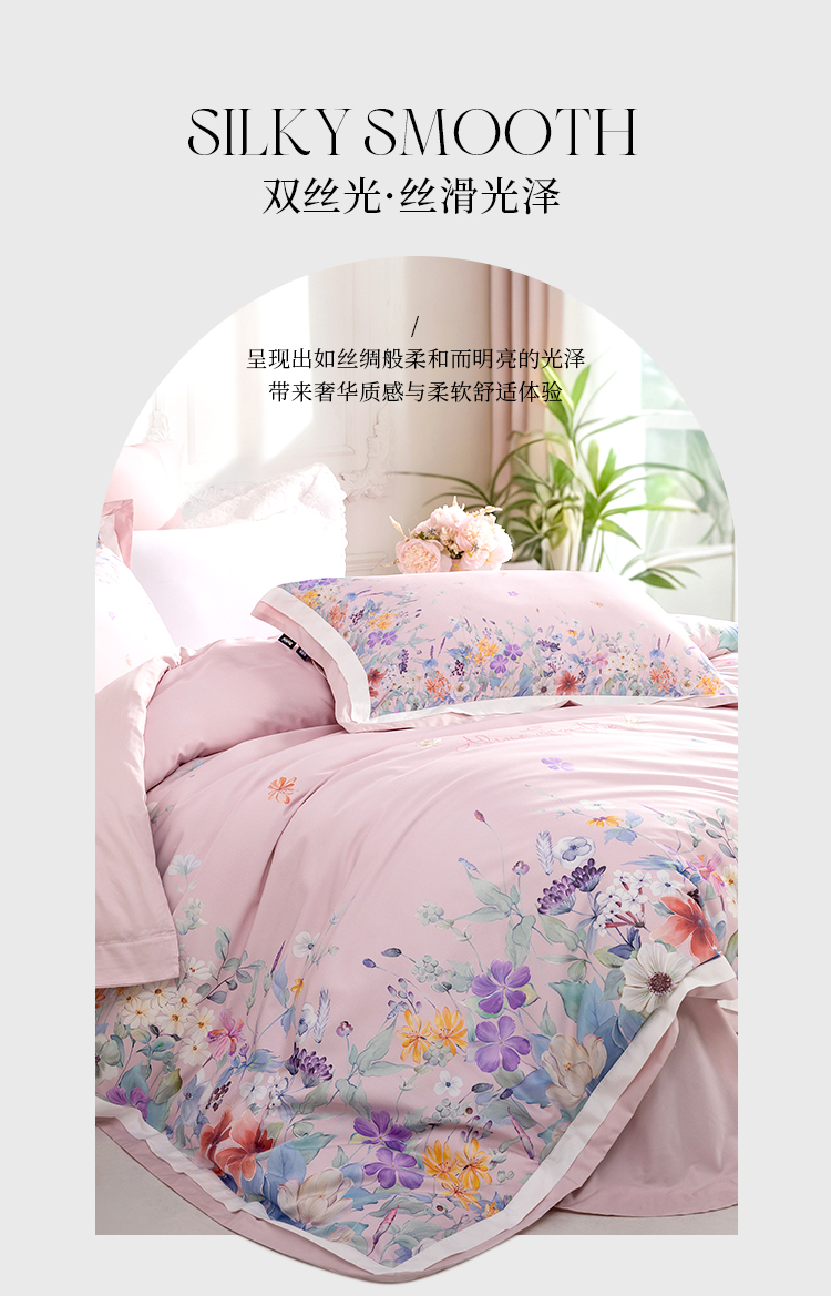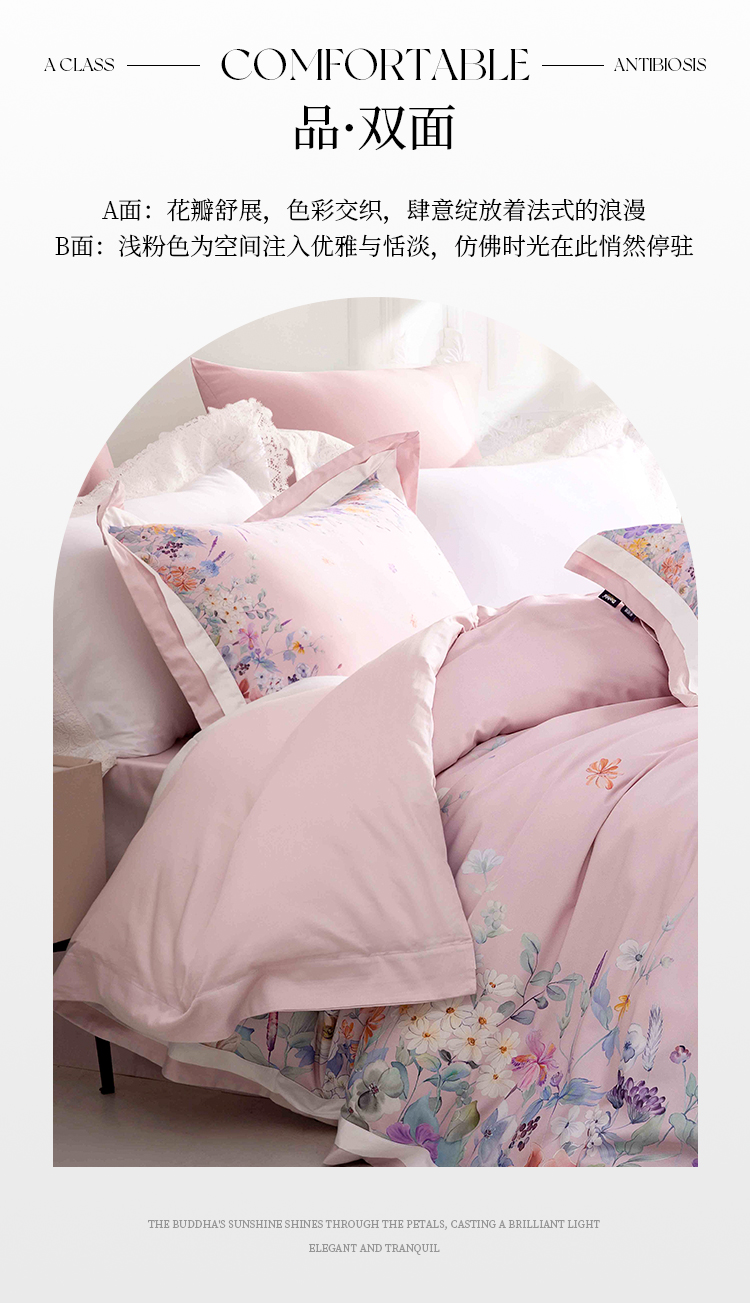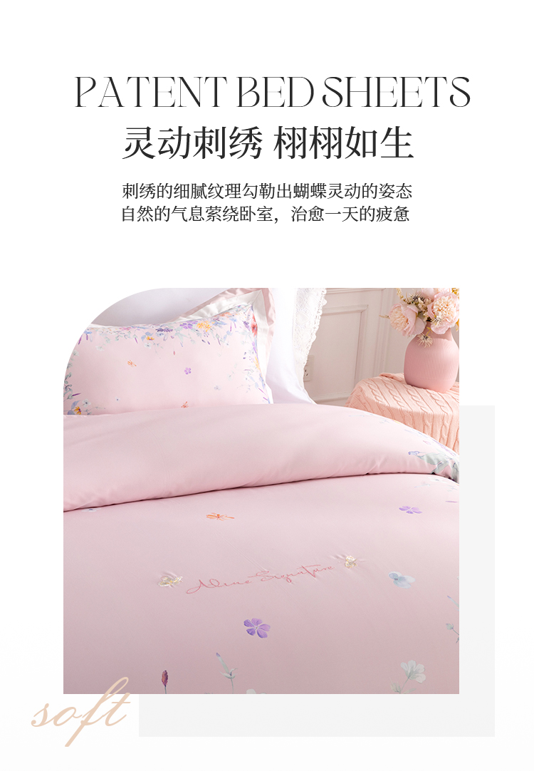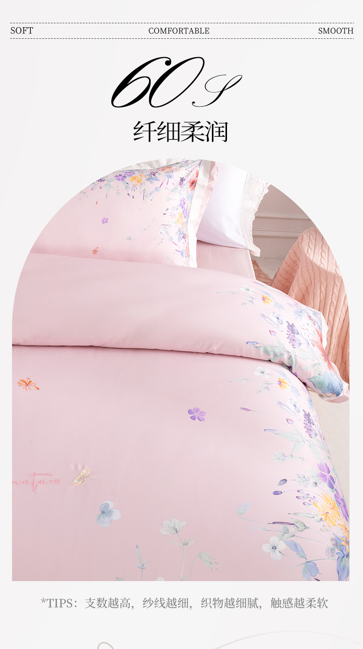 多喜爱 法式轻奢四件套-繁花雅韵(粉)【60S】【灵动刺绣】【礼盒包装】【芬纳诺抗菌】【法式拼边工艺】【专利床单】长绒棉·如丝顺滑