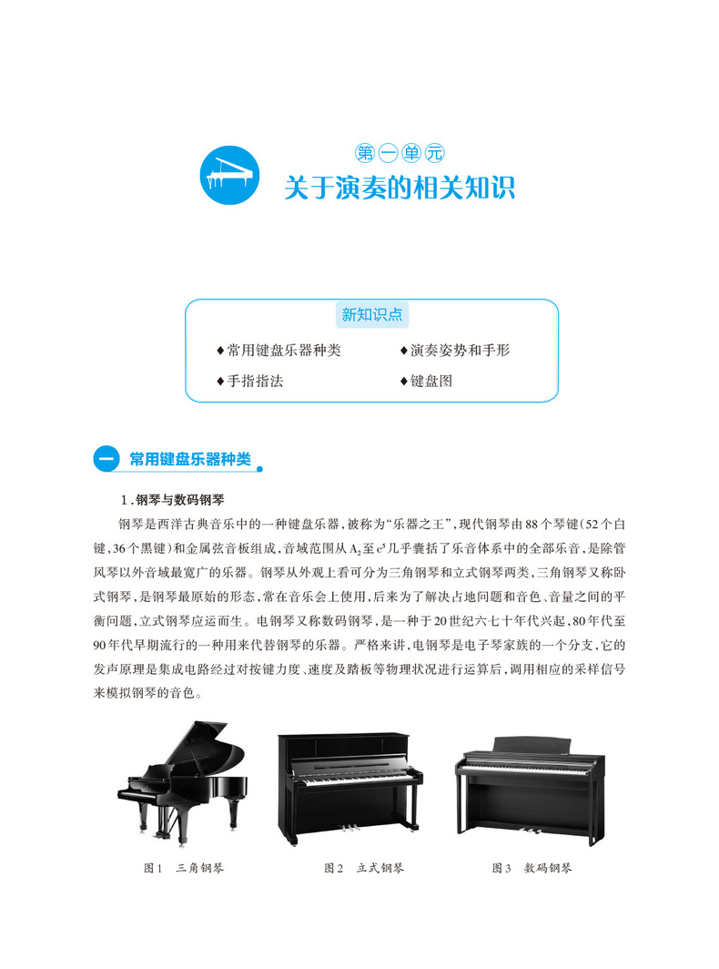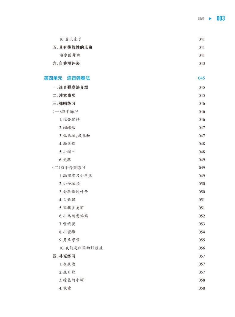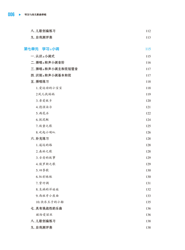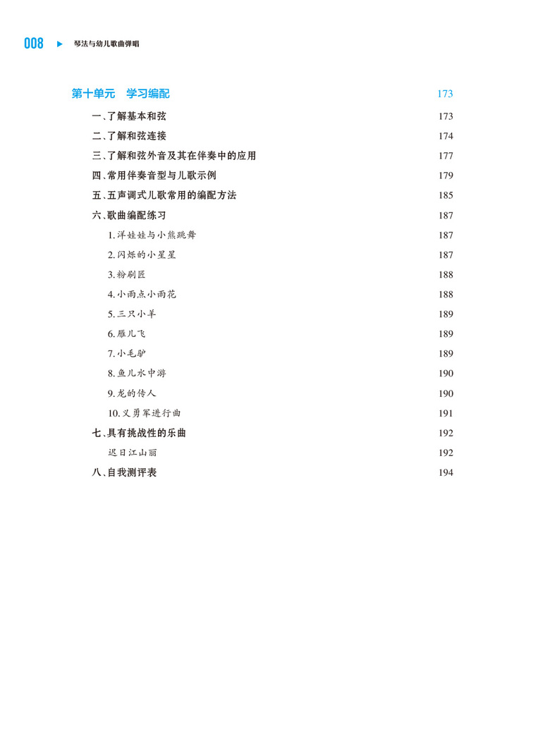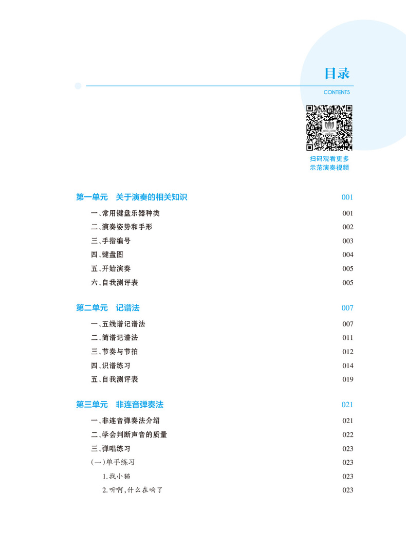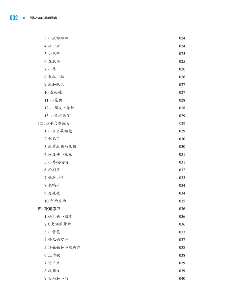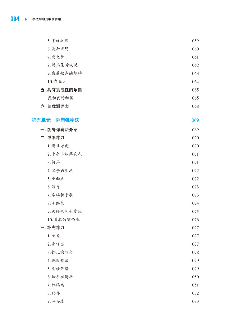 本书共10个单元,以钢琴弹奏技能为经线,以儿歌弹唱练习为纬线,结合钢琴弹奏、儿歌伴奏弹唱理论等音乐知识,按照循序渐进、由浅入深的原则编排。本教材针对学前教育专业的钢琴弹唱需求,力求使教材所涵盖的知识面广而精,把钢琴技法学习与声乐、基本乐理、和声学、即兴伴奏等多种学科有机结合。教材在选曲方面,对中外有名、经典的儿童歌曲进行筛选和整理,适合职业院校学前教育专业学生、幼儿园教师及广大钢琴弹唱爱好者学习使用。 |
