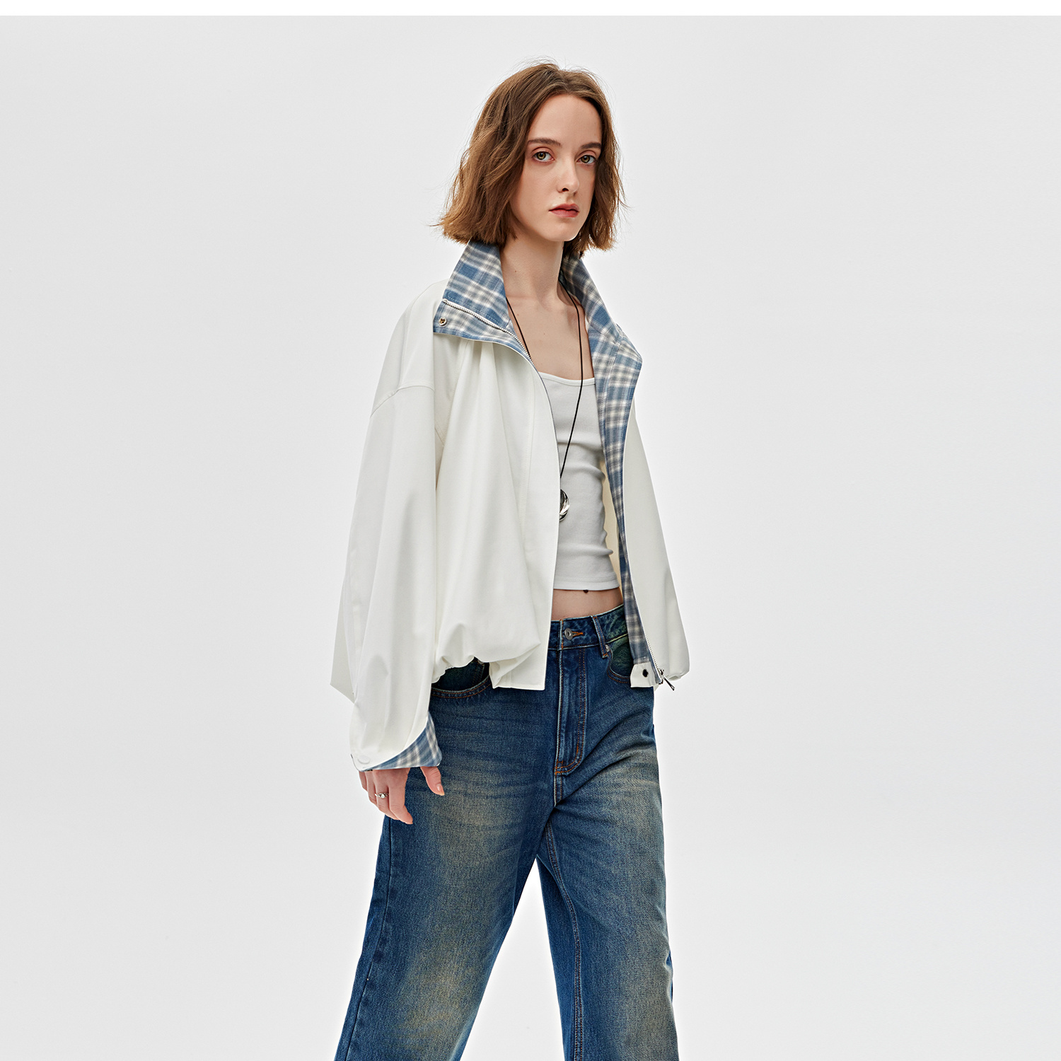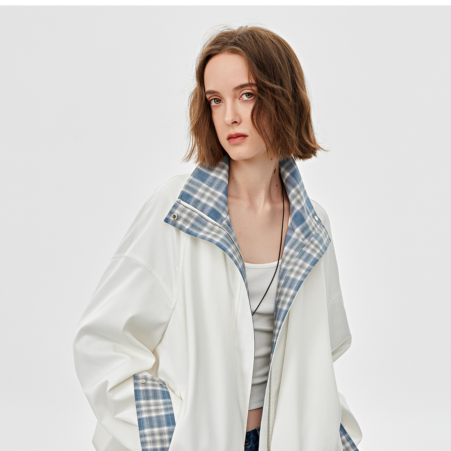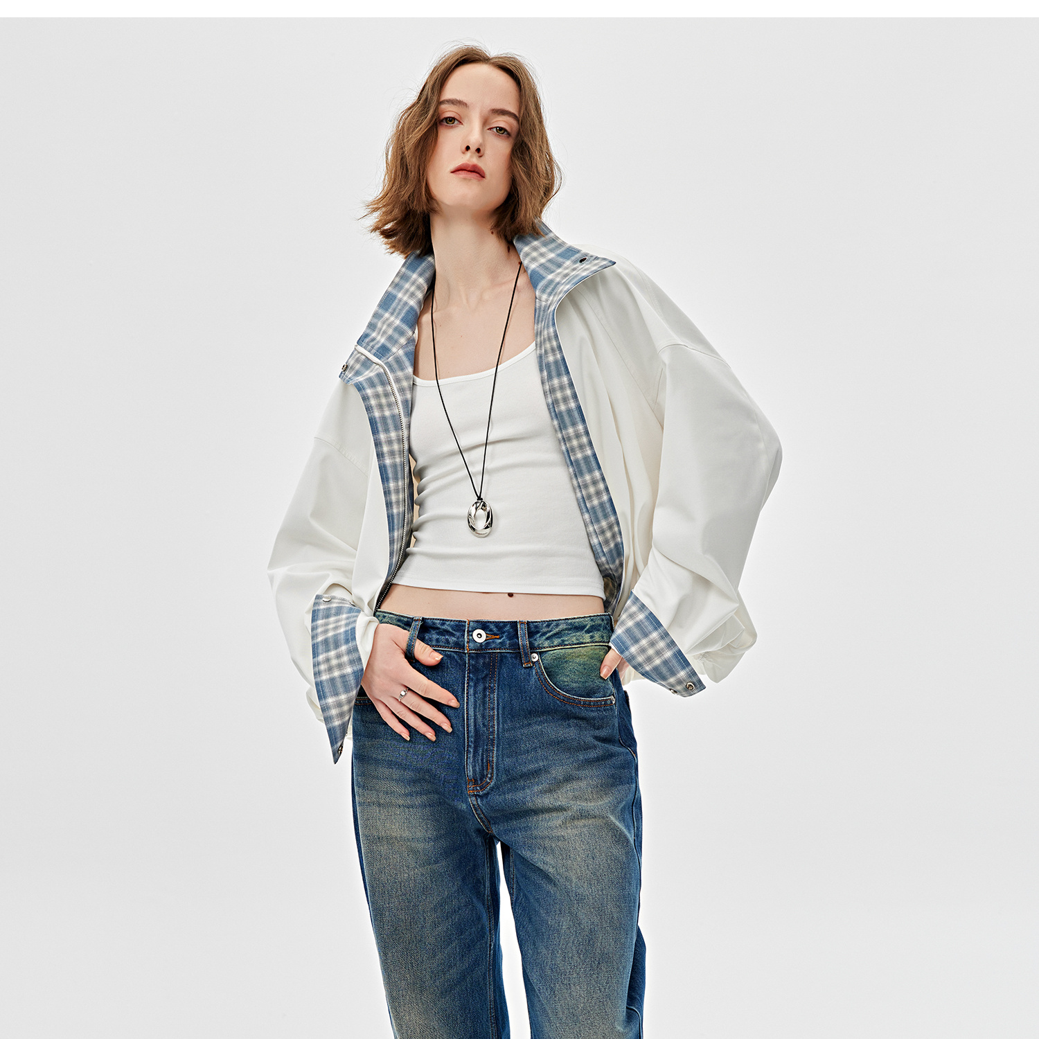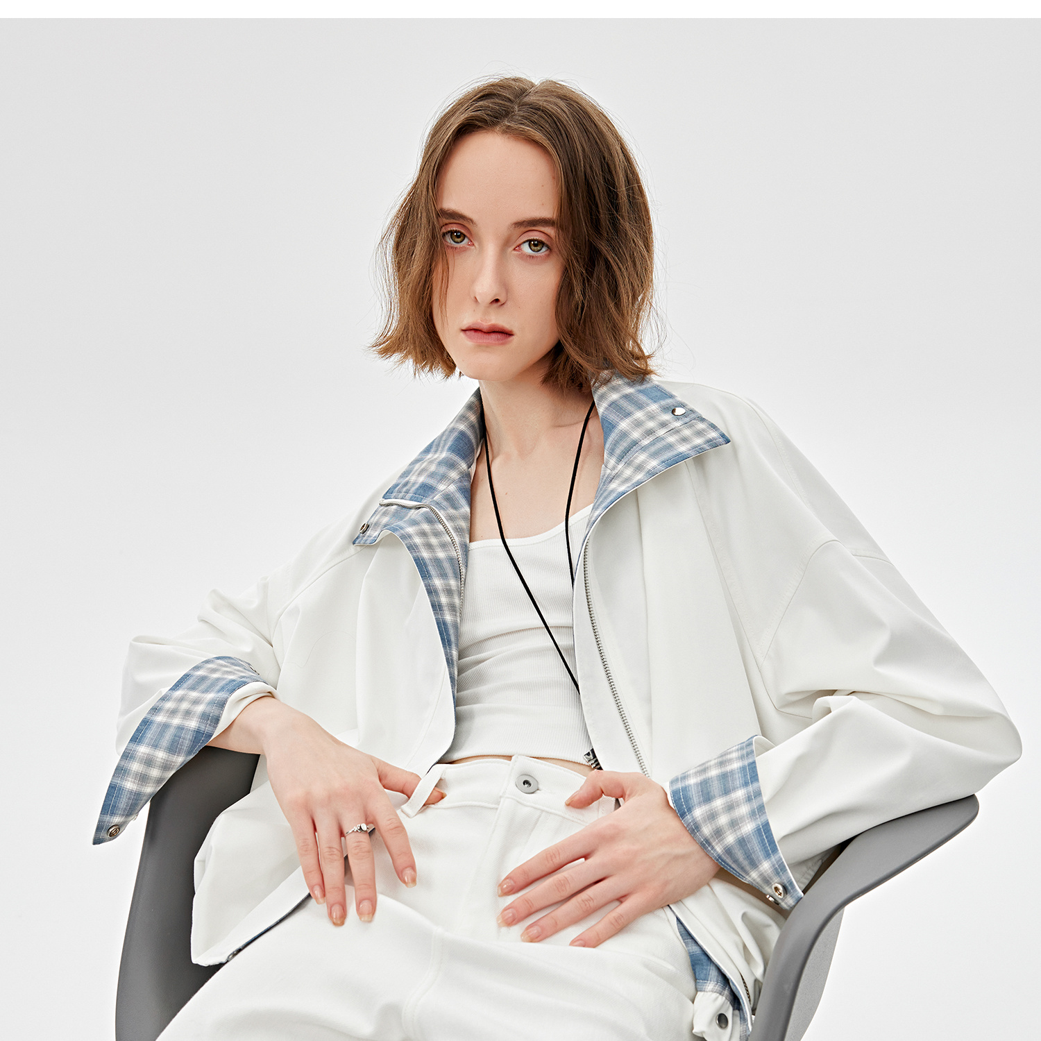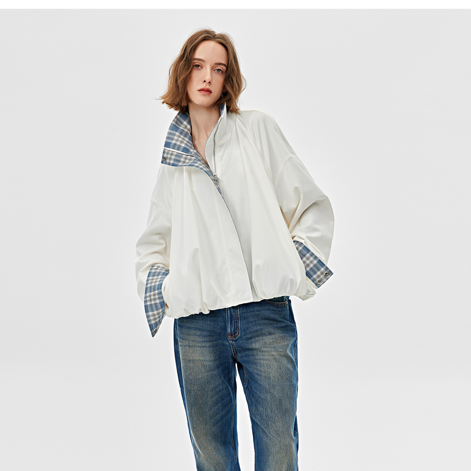 醋酸羊毛重工拼接格子设计感春季夹克外套2025春WT2501019