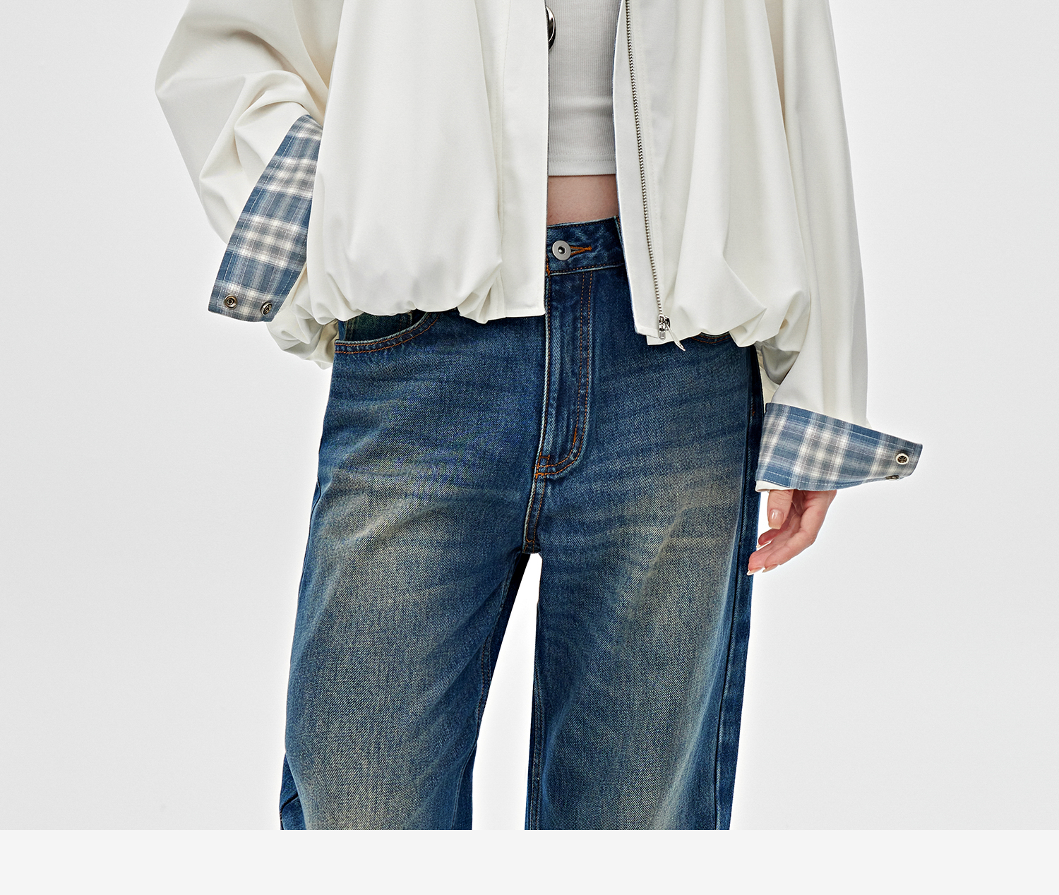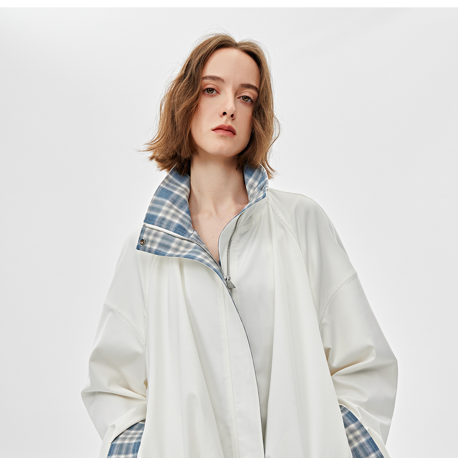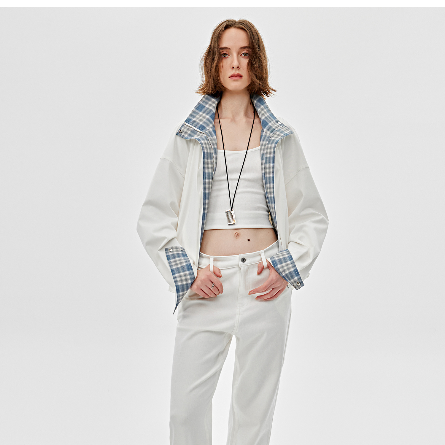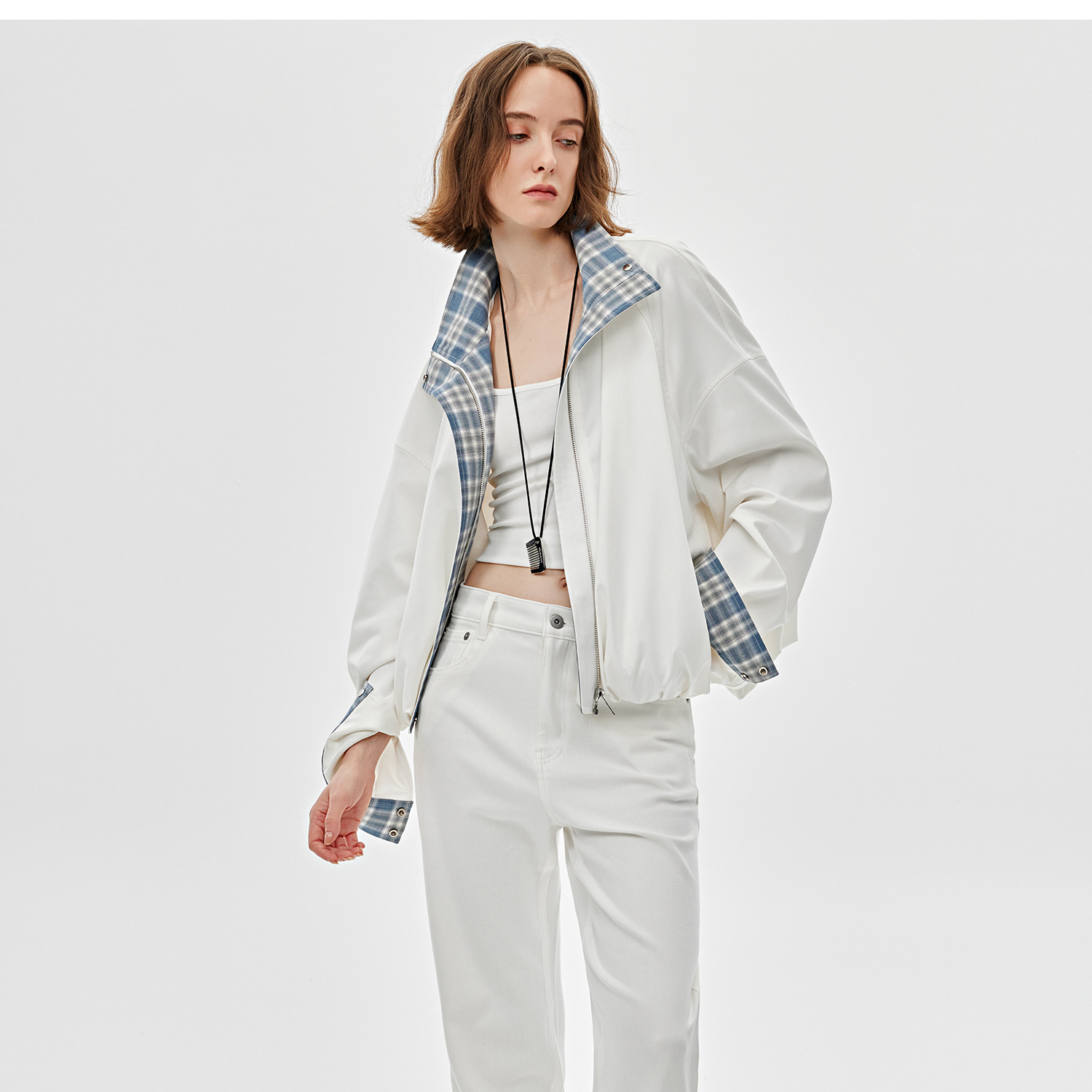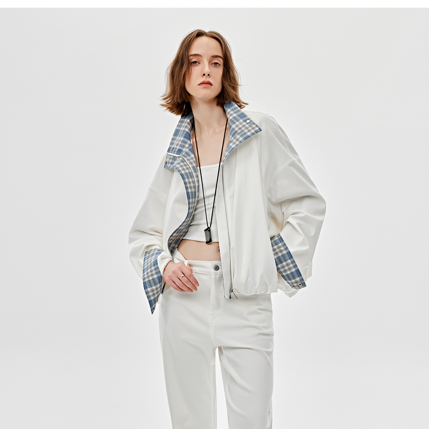 醋酸羊毛重工拼接格子设计感春季夹克外套2025春WT2501019