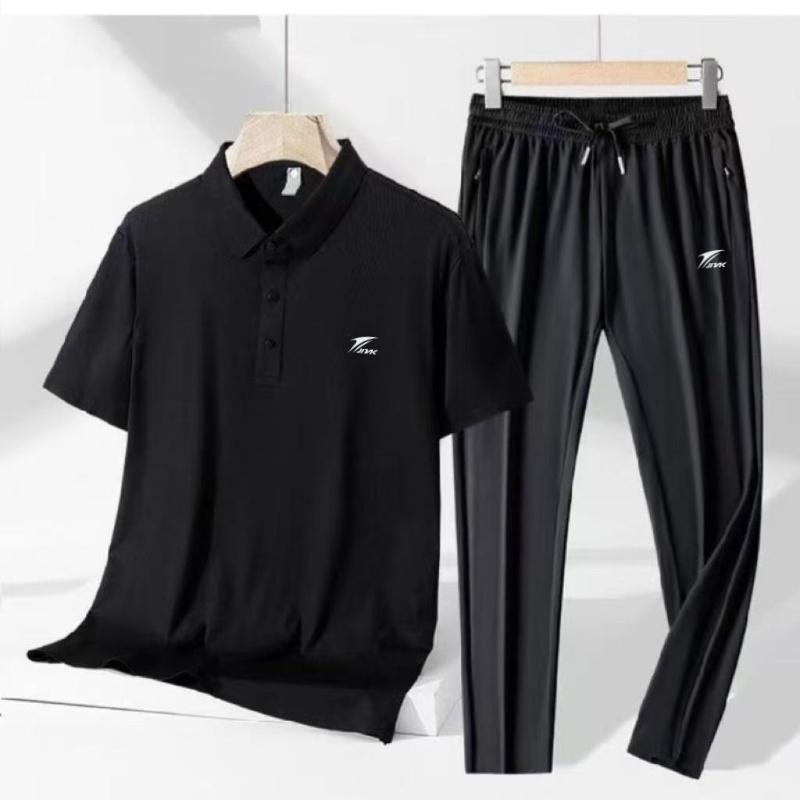 疯抢中!!【金莱克·男士速干运动套装】凉感POLO衫短袖+冰感速干长裤 透气吸汗 舒适轻盈 运动更佳