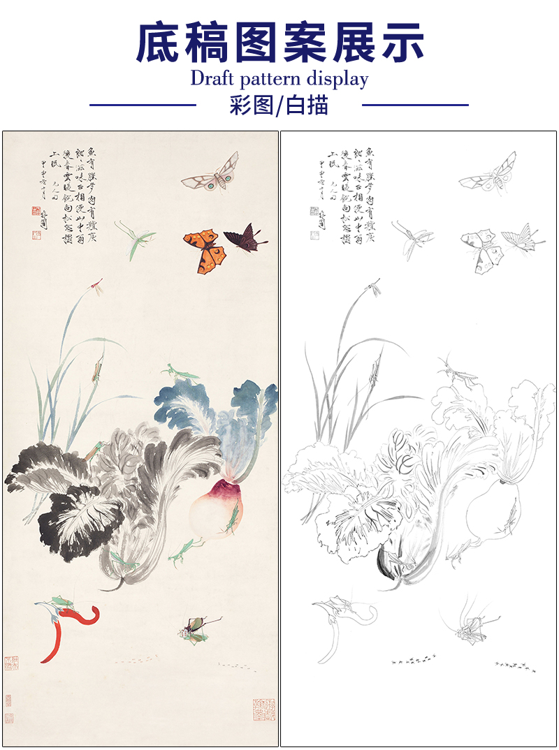 于非闇花鸟工笔画白描底稿《野蔬草虫》临摹勾线高清打印稿HS10