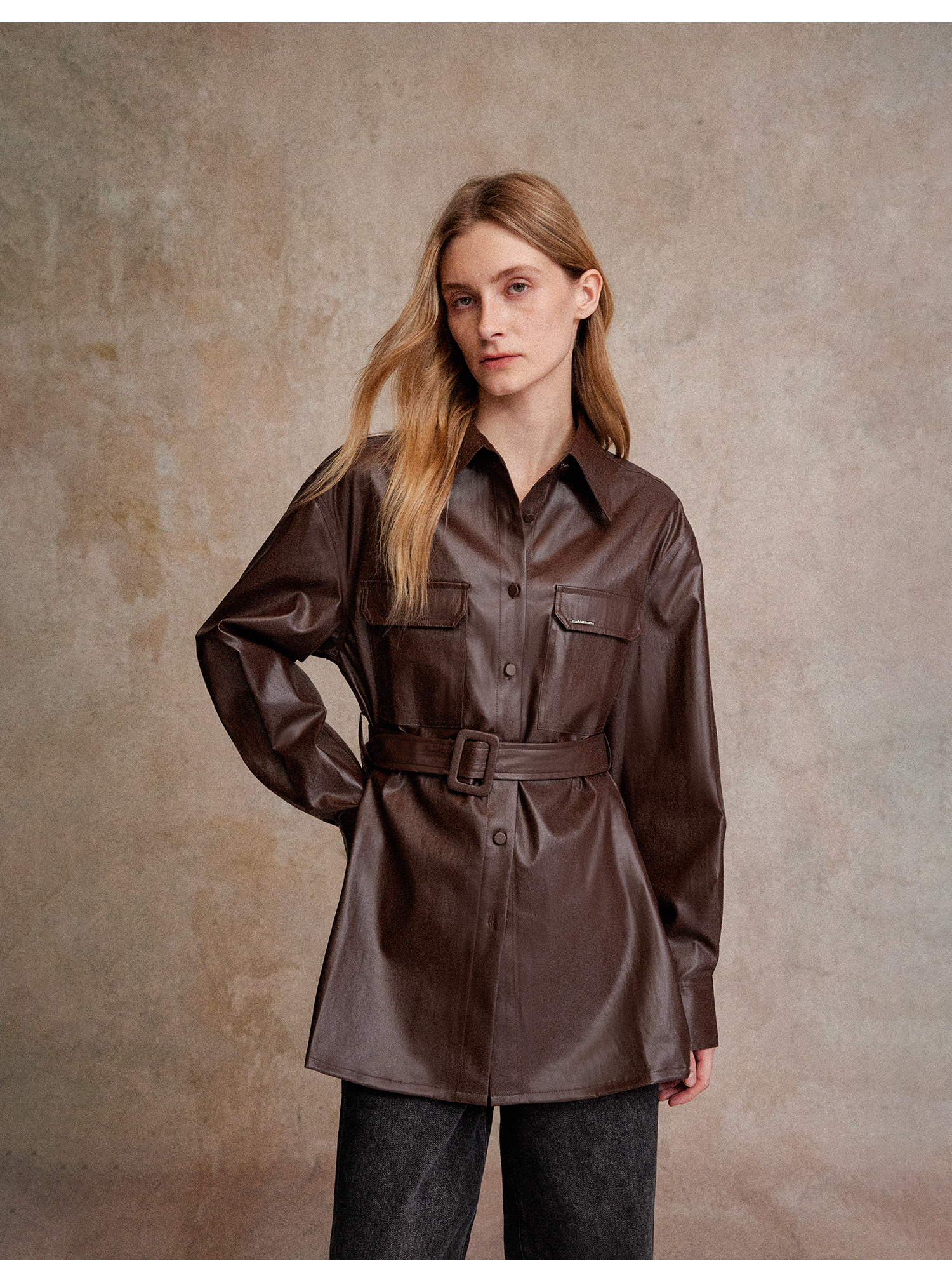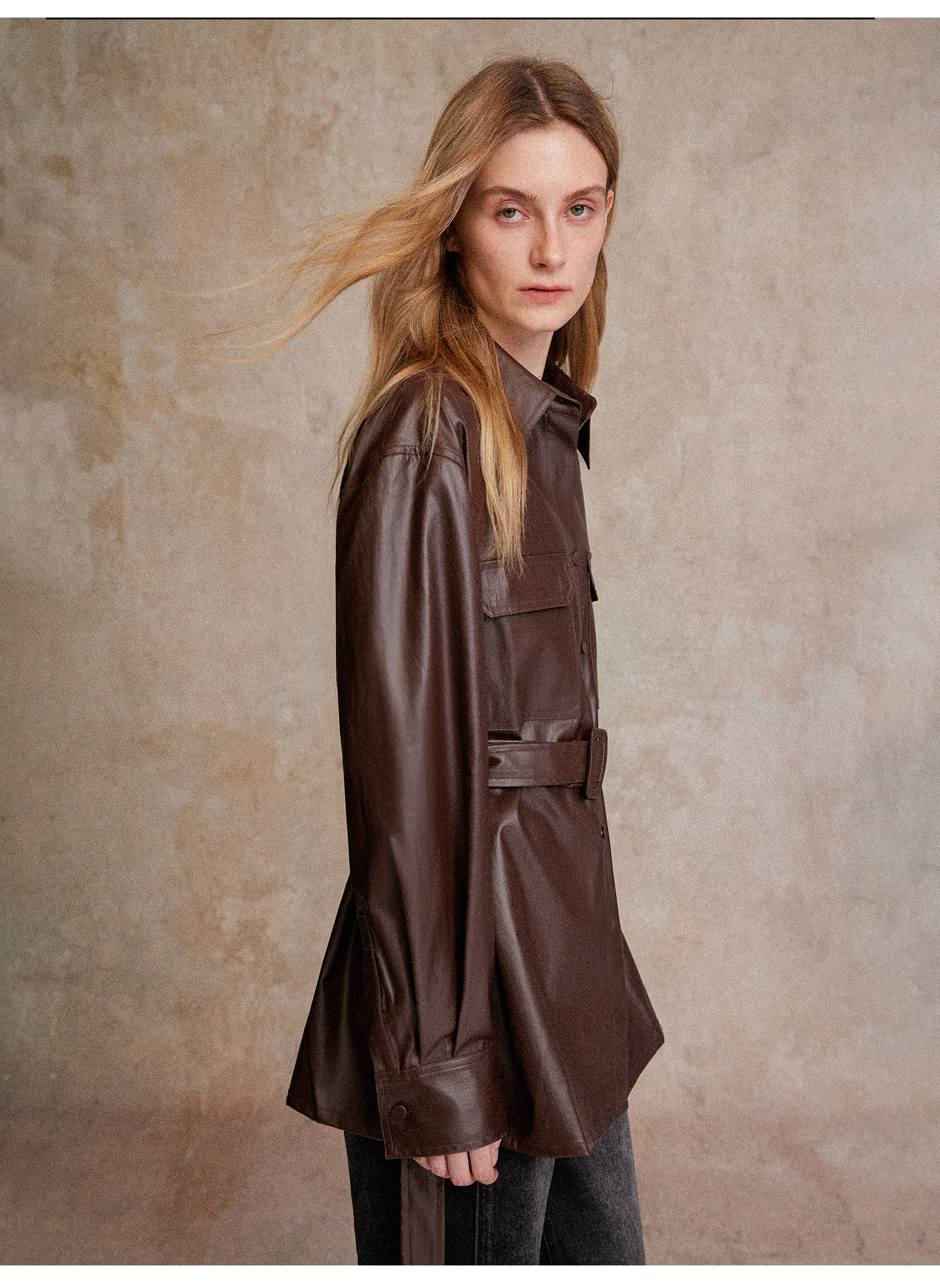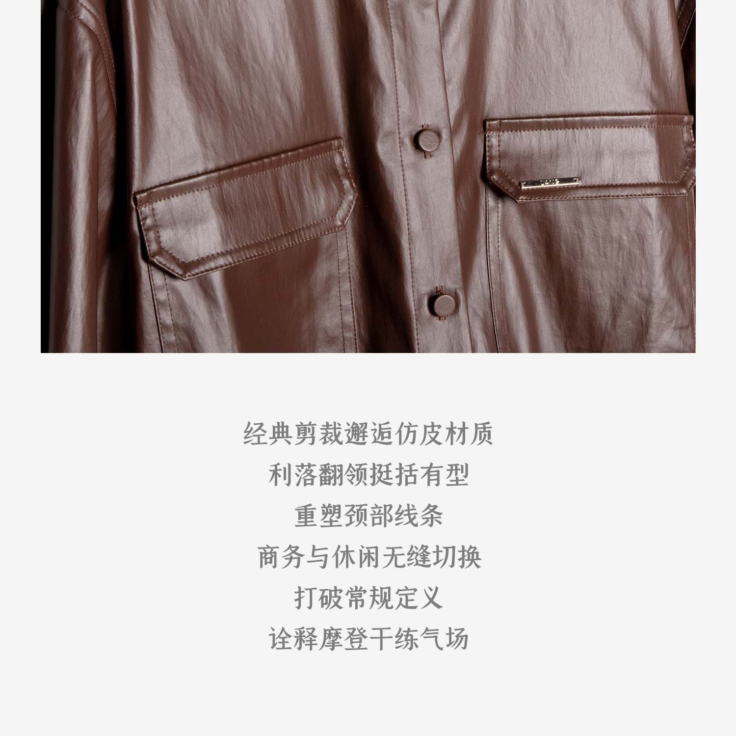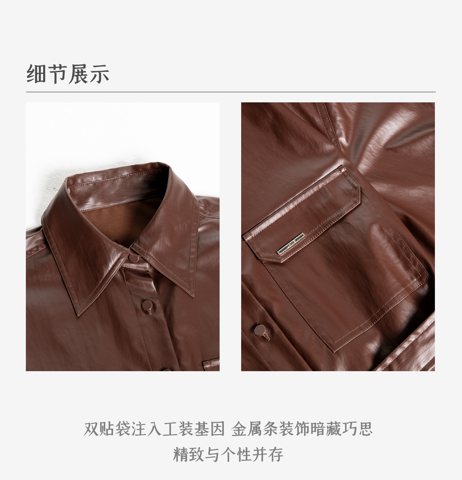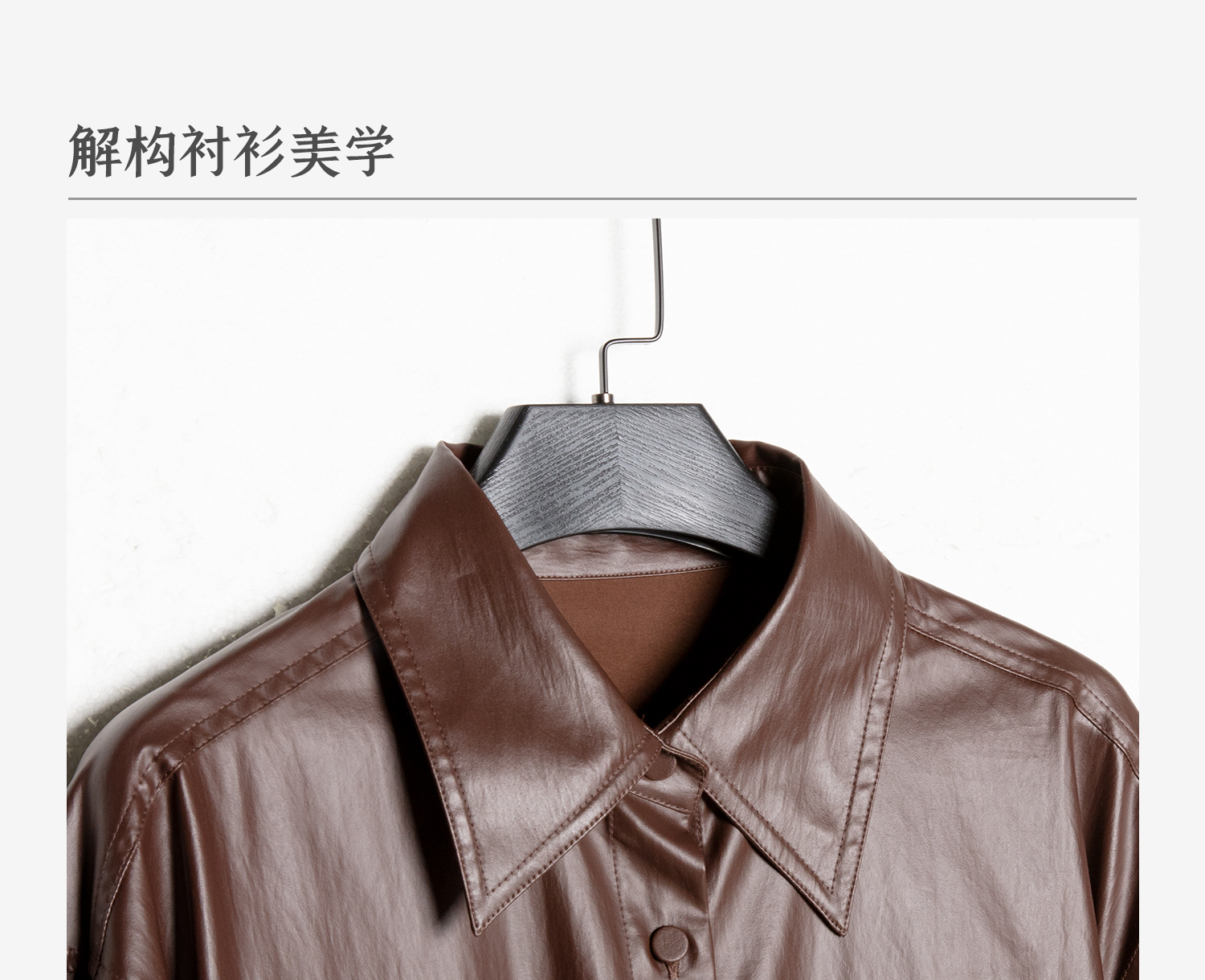 老钱风衬衫领涂层仿皮衬衫WT2503053
