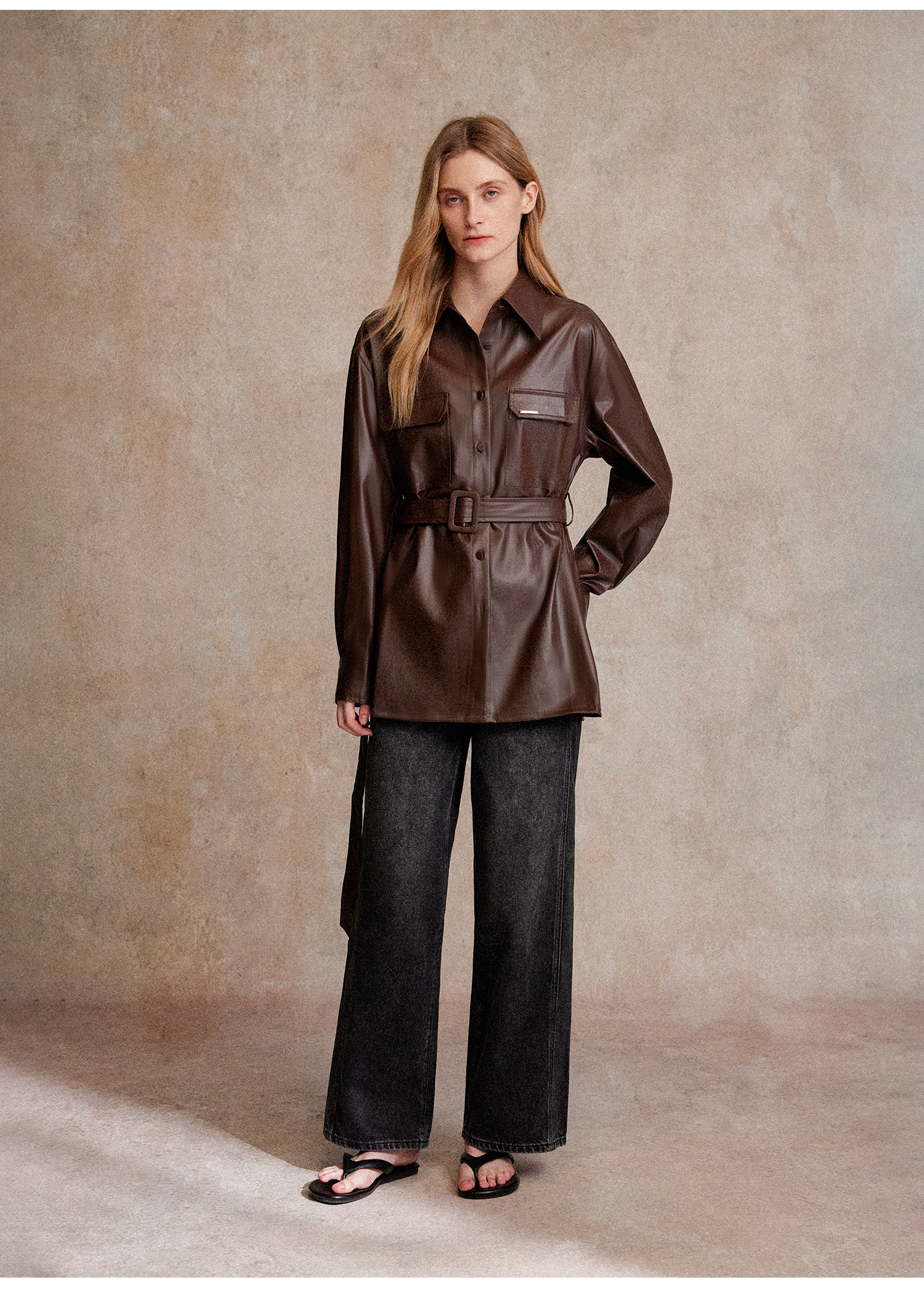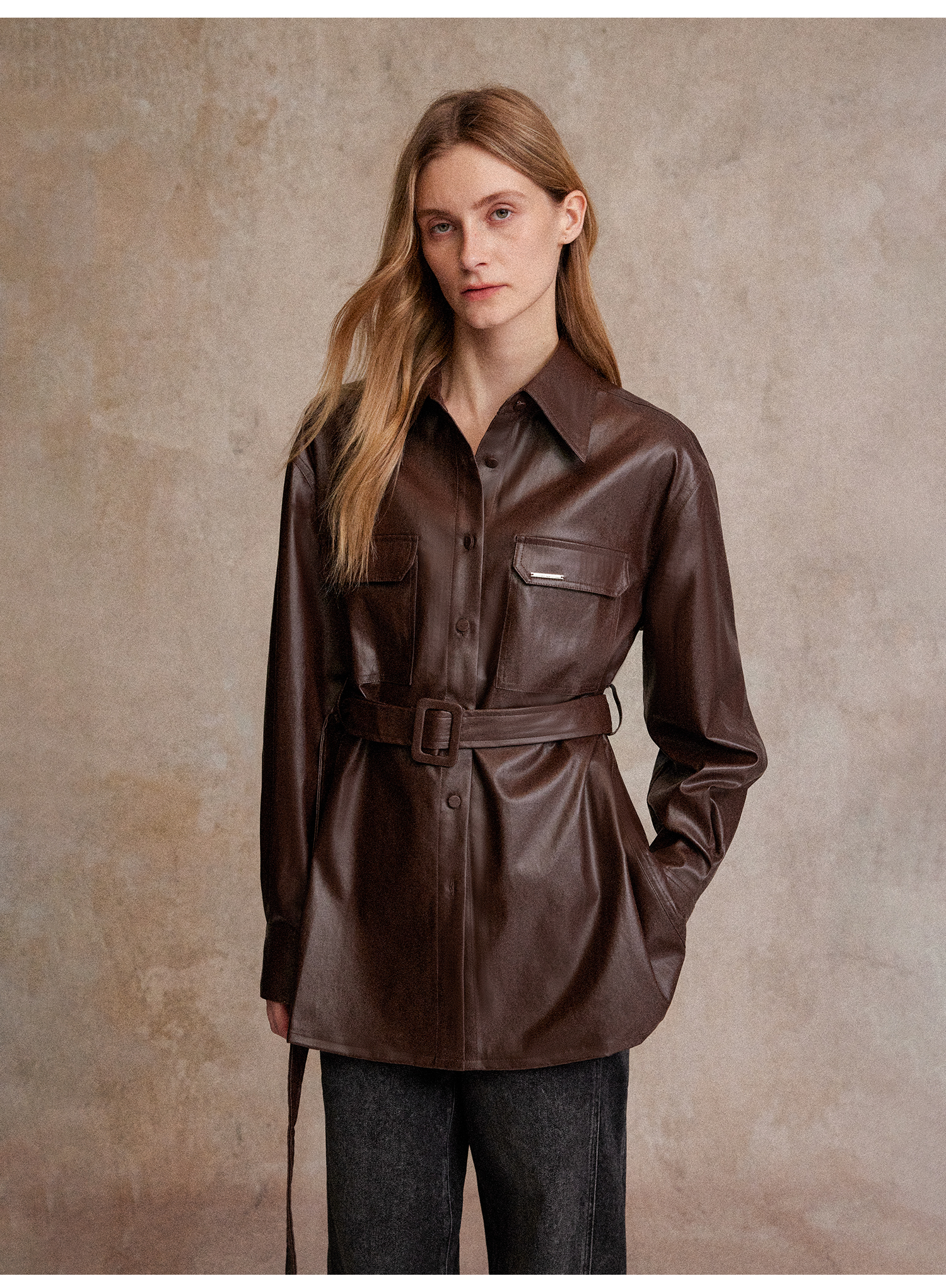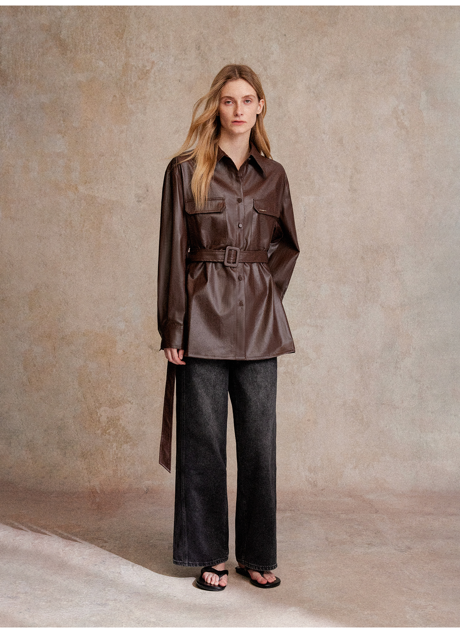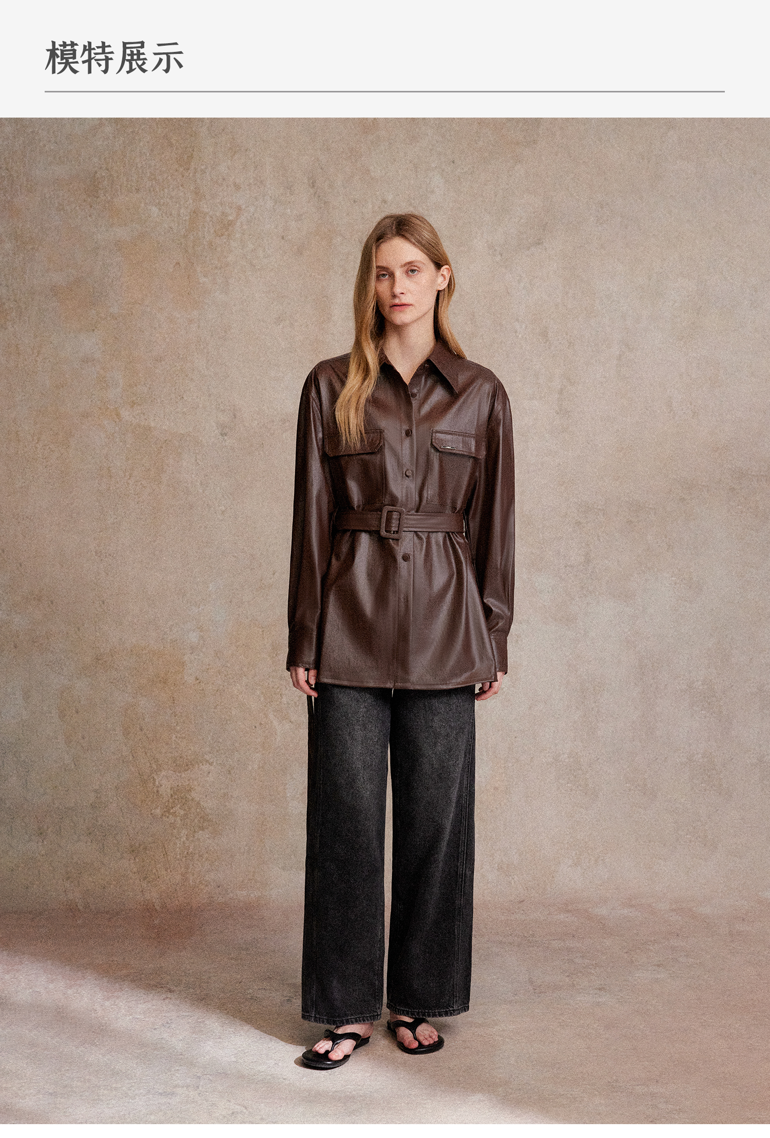 老钱风衬衫领涂层仿皮衬衫WT2503053