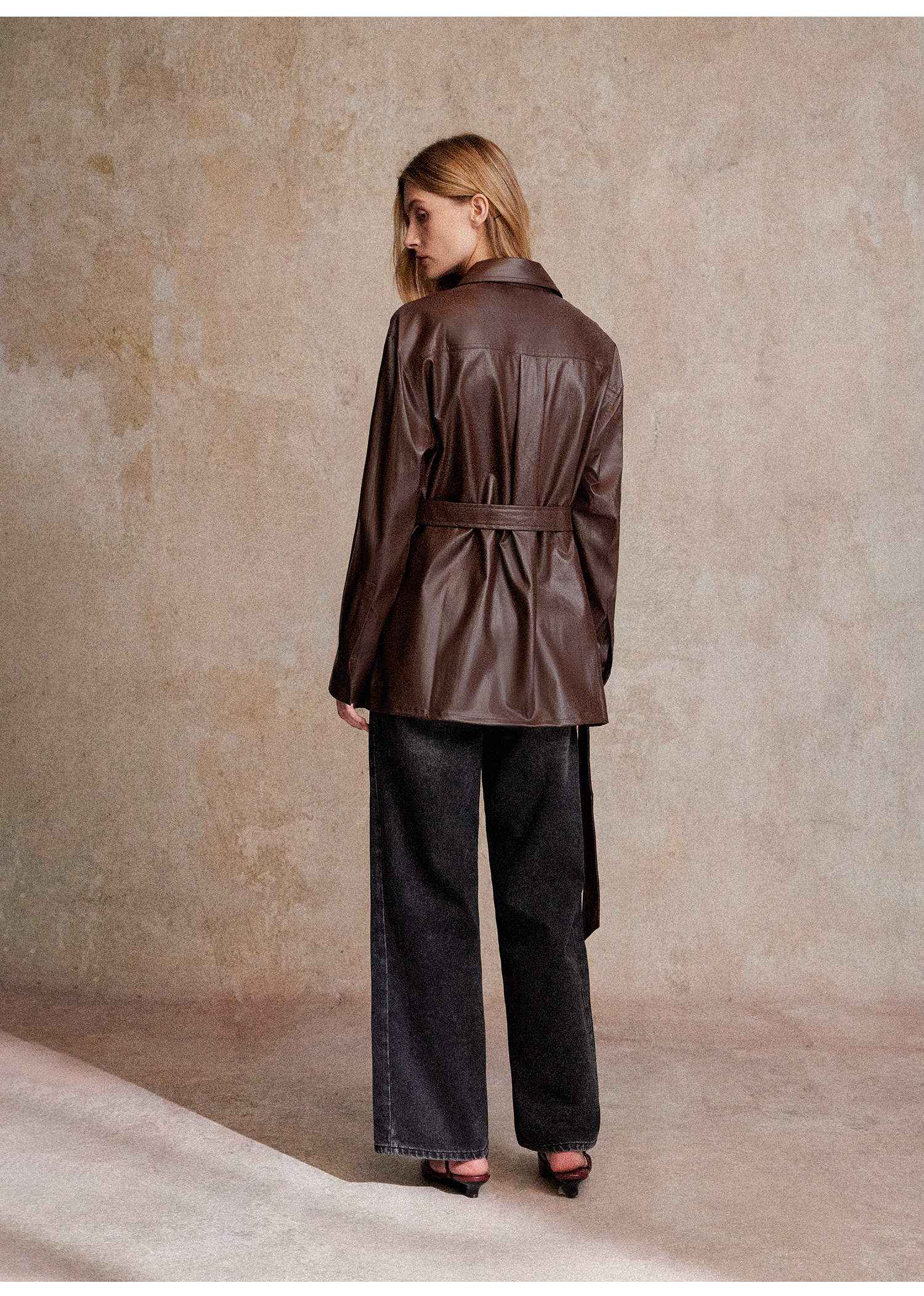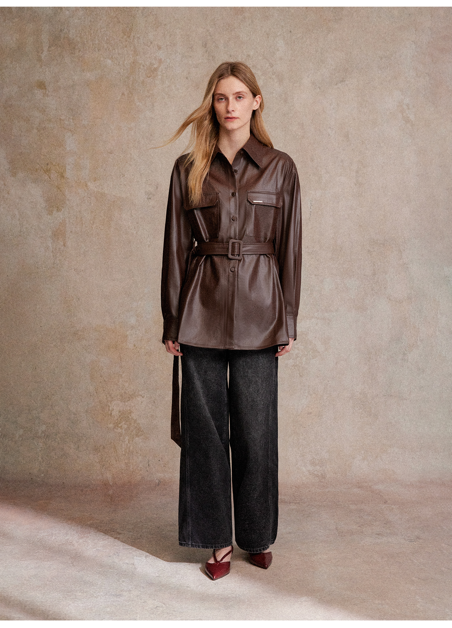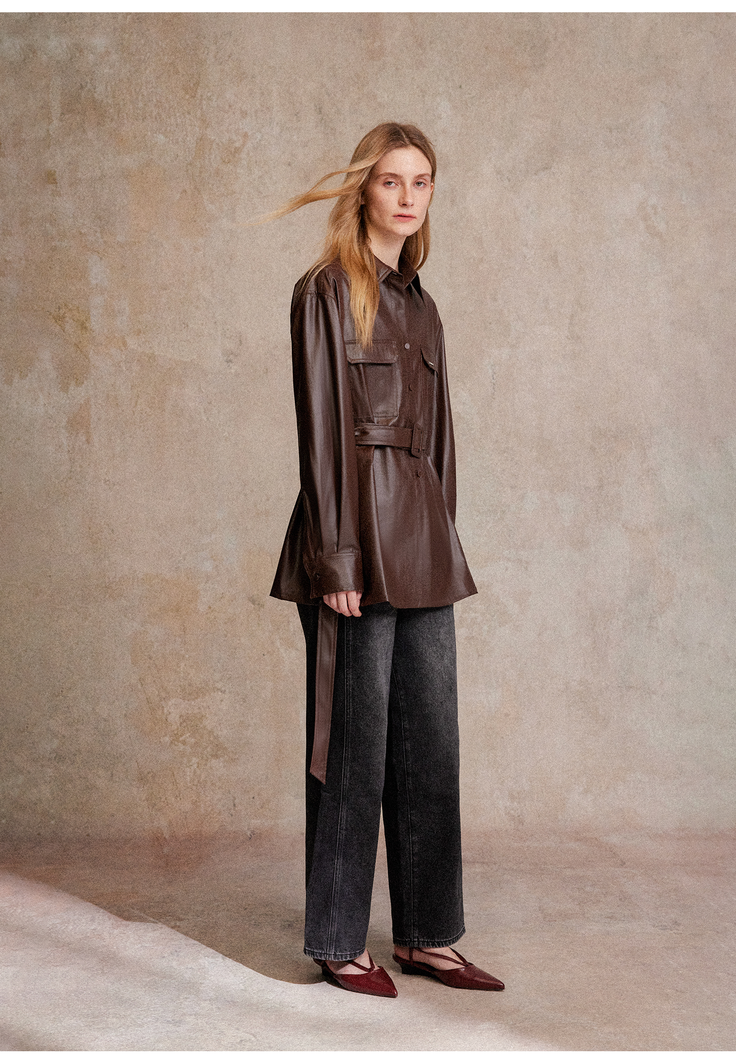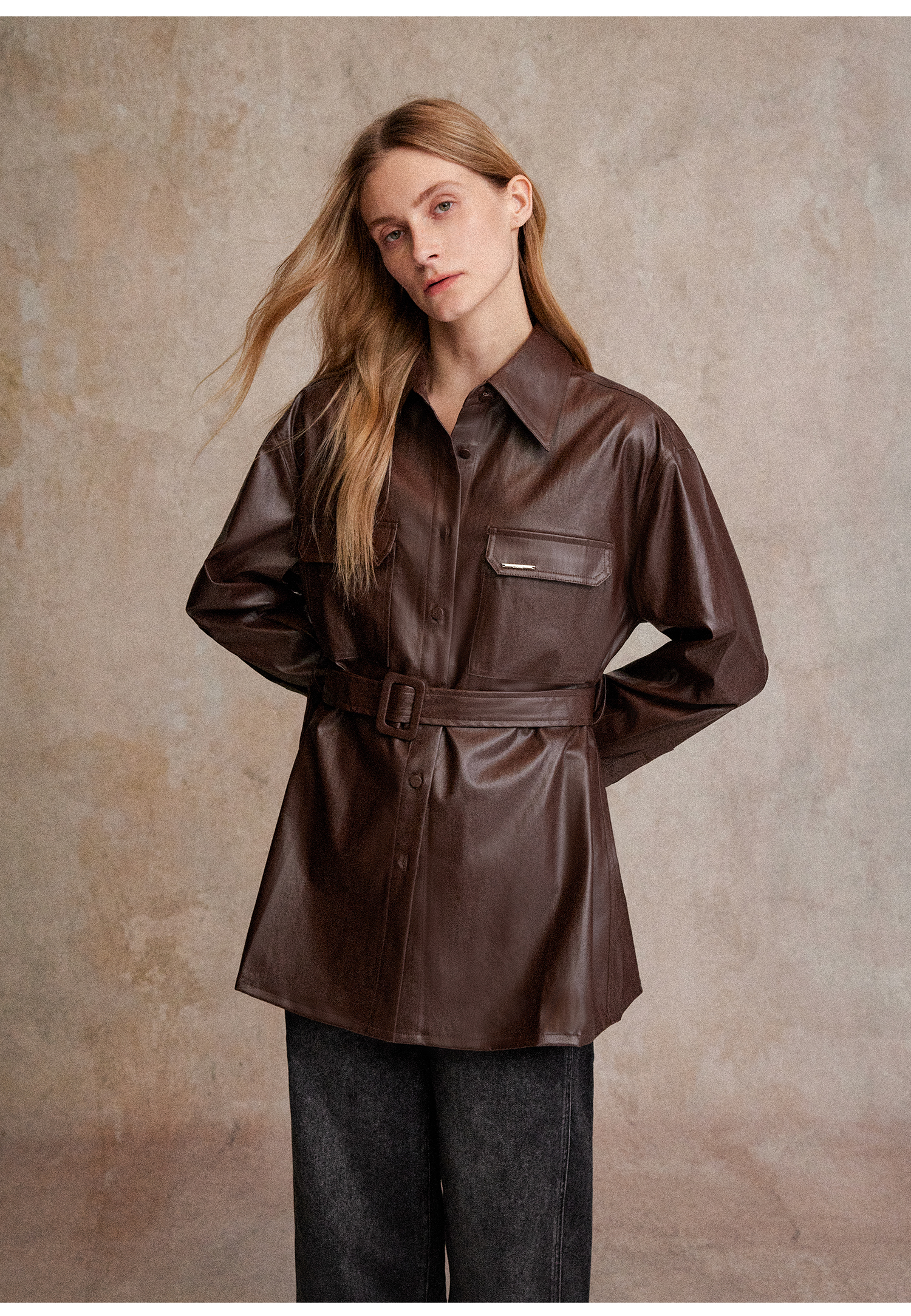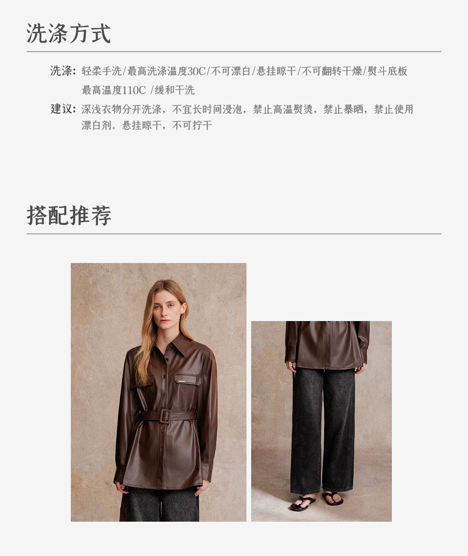 老钱风衬衫领涂层仿皮衬衫WT2503053