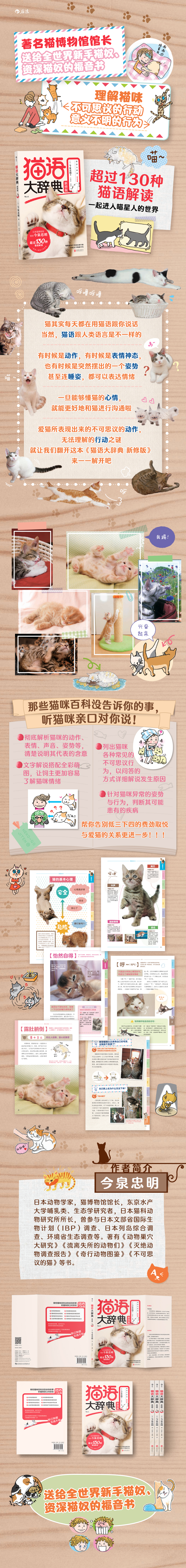 这是日本著名猫博物馆馆长今泉忠明送给全世界新手猫奴、资深猫奴的福音书。为了帮助新手猫奴从一开始就了解爱猫,也为资深猫奴不再费力不讨好,作为权威猫咪专家的今泉忠明特意编著了这本《猫语大辞典》,为所有猫奴详细解说“猫语速成法则”,让你从头到尾彻底了解爱猫。本书还会告诉你各种秘密、难解的猫咪大小事背后的真相。猫为什么独来独往,不爱交际?为什么猫会即使掩埋排泄物却不喜欢洗澡?有时猫对主人爱答不理,有时连上厕所都要跟着。爱它,就该弄懂它。有了本书指引,相信你能深入了解猫咪内心,明白它的真实需求,永远与爱猫心灵相通。