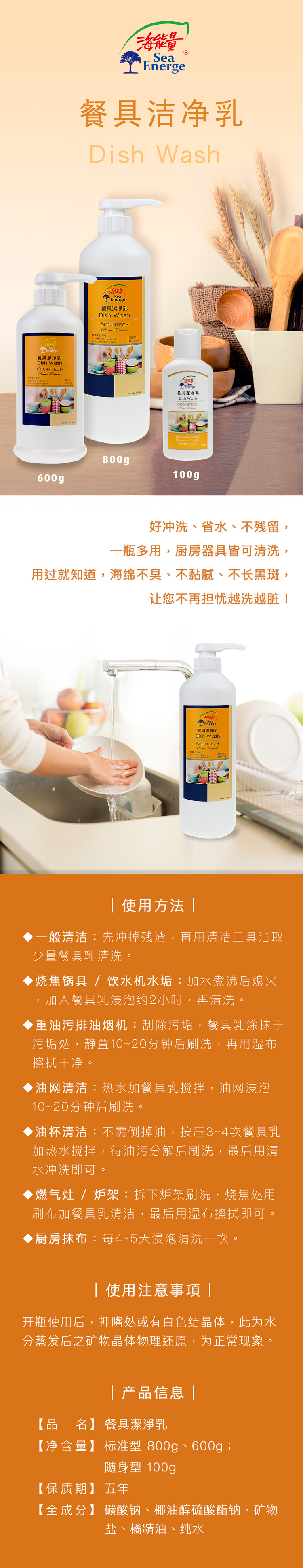 餐具洁净乳 | 100g/600g/800g 环保洗碗液 洗洁精 洗奶瓶 去除油渍茶渍水垢 适用洗碗机 海能量