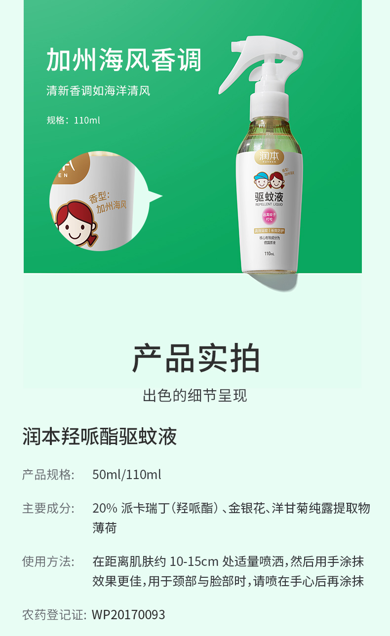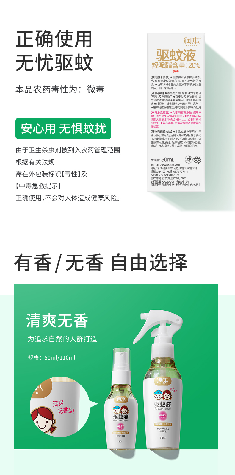 润本驱蚊液 无香无酒精 驱蚊5.7小时