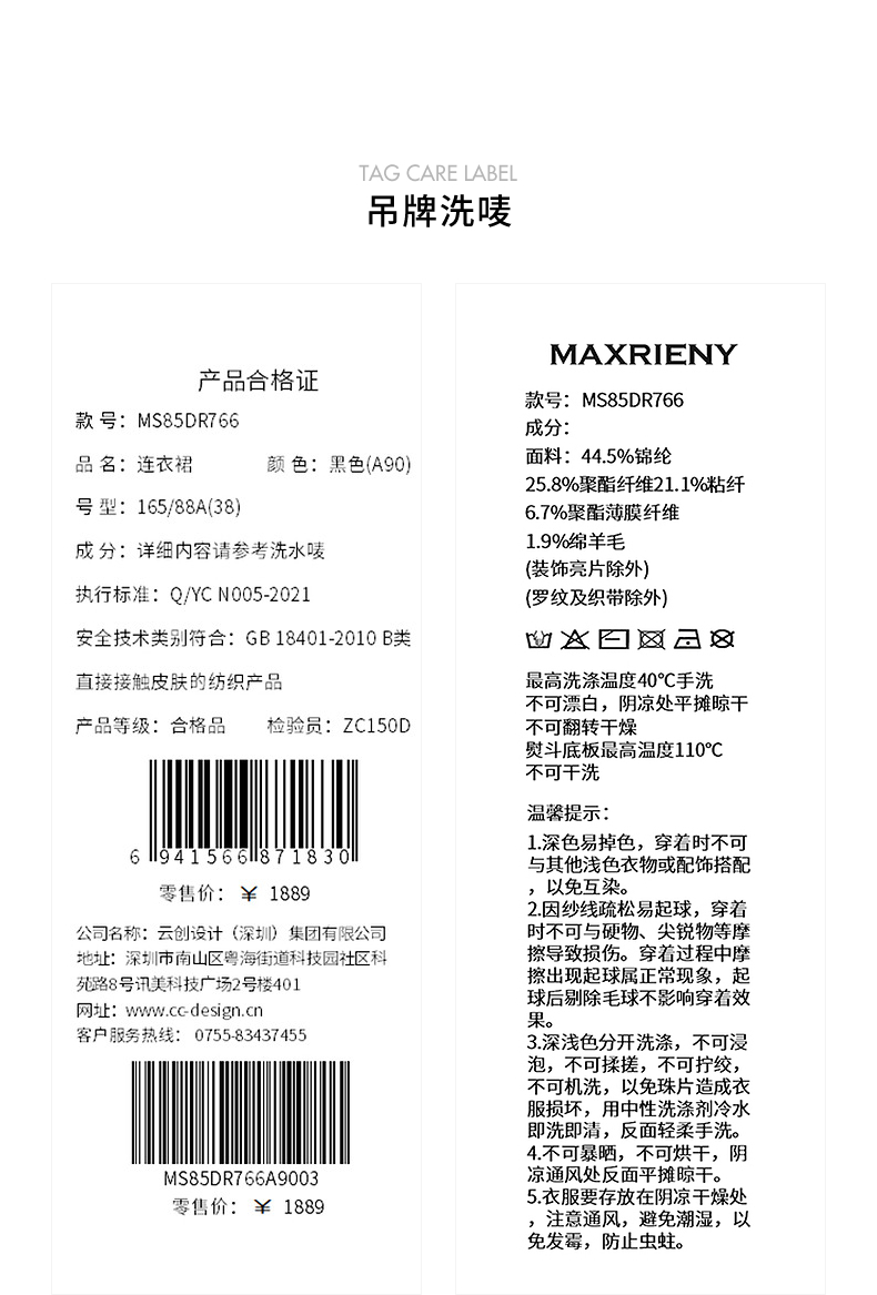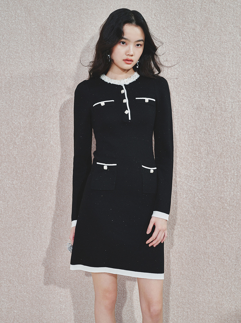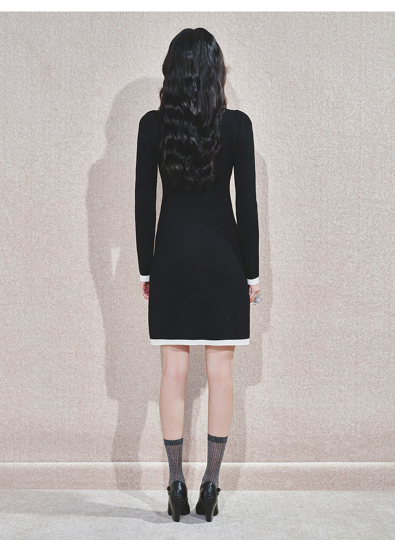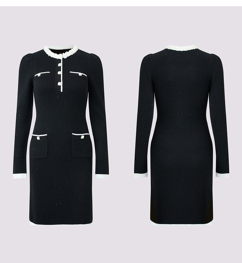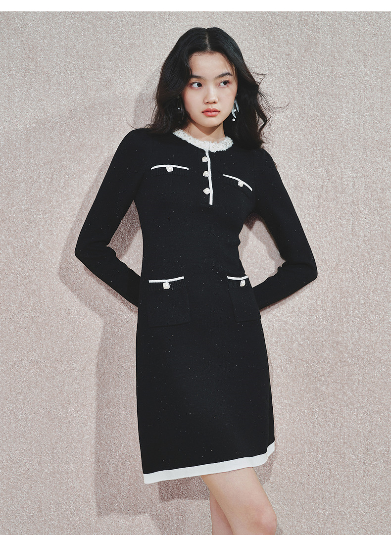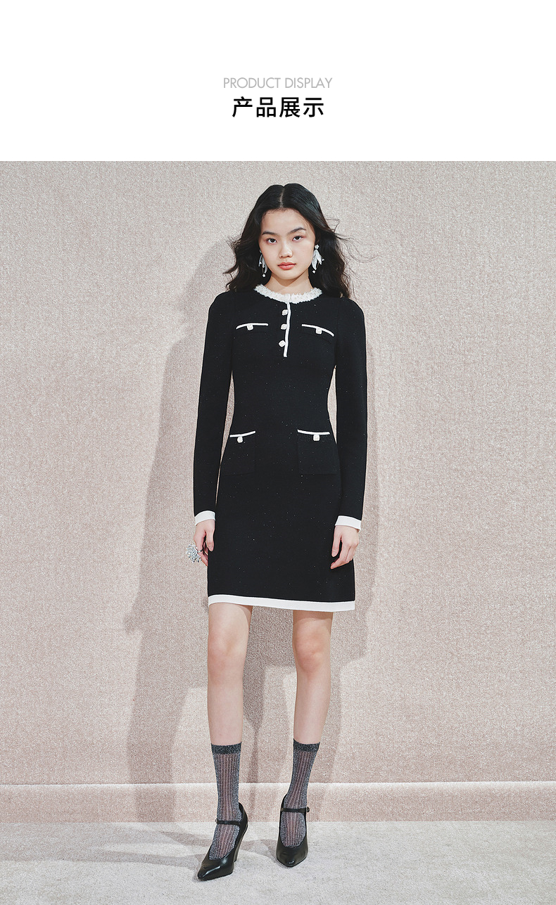MAXRIENY千金名媛风连衣裙24冬新款精致法式小香风针织裙子收腰(货号:MS85DR766)