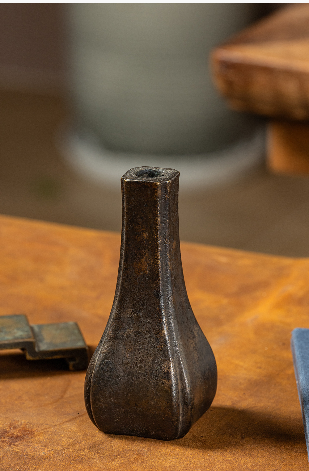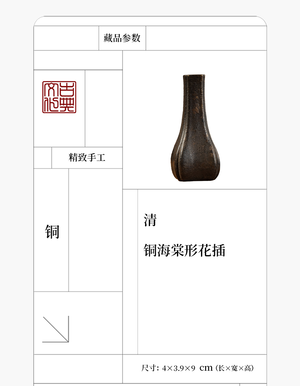 清 铜海棠形花插