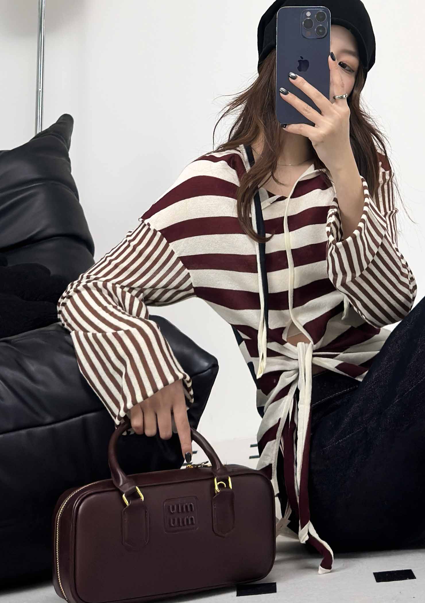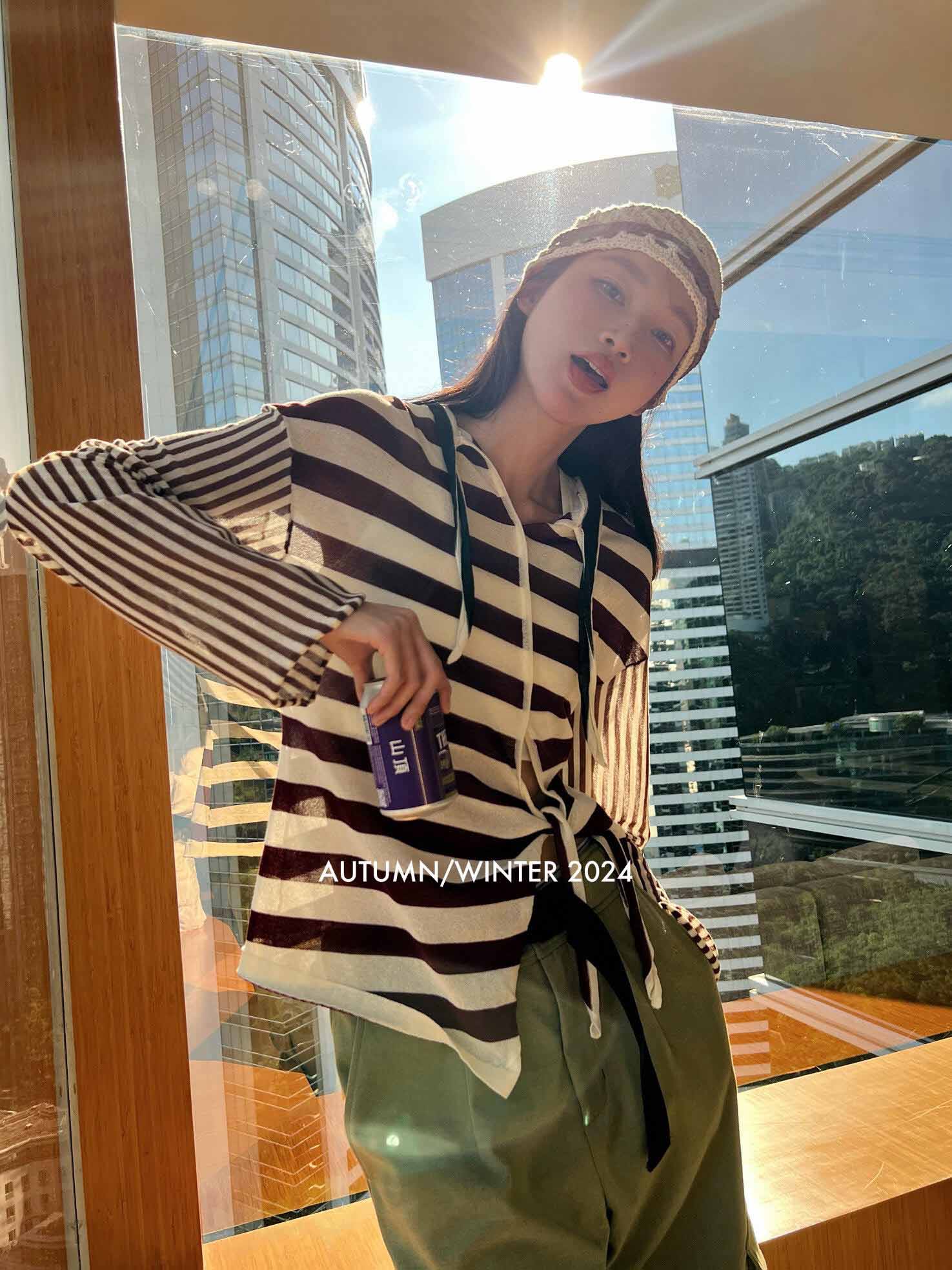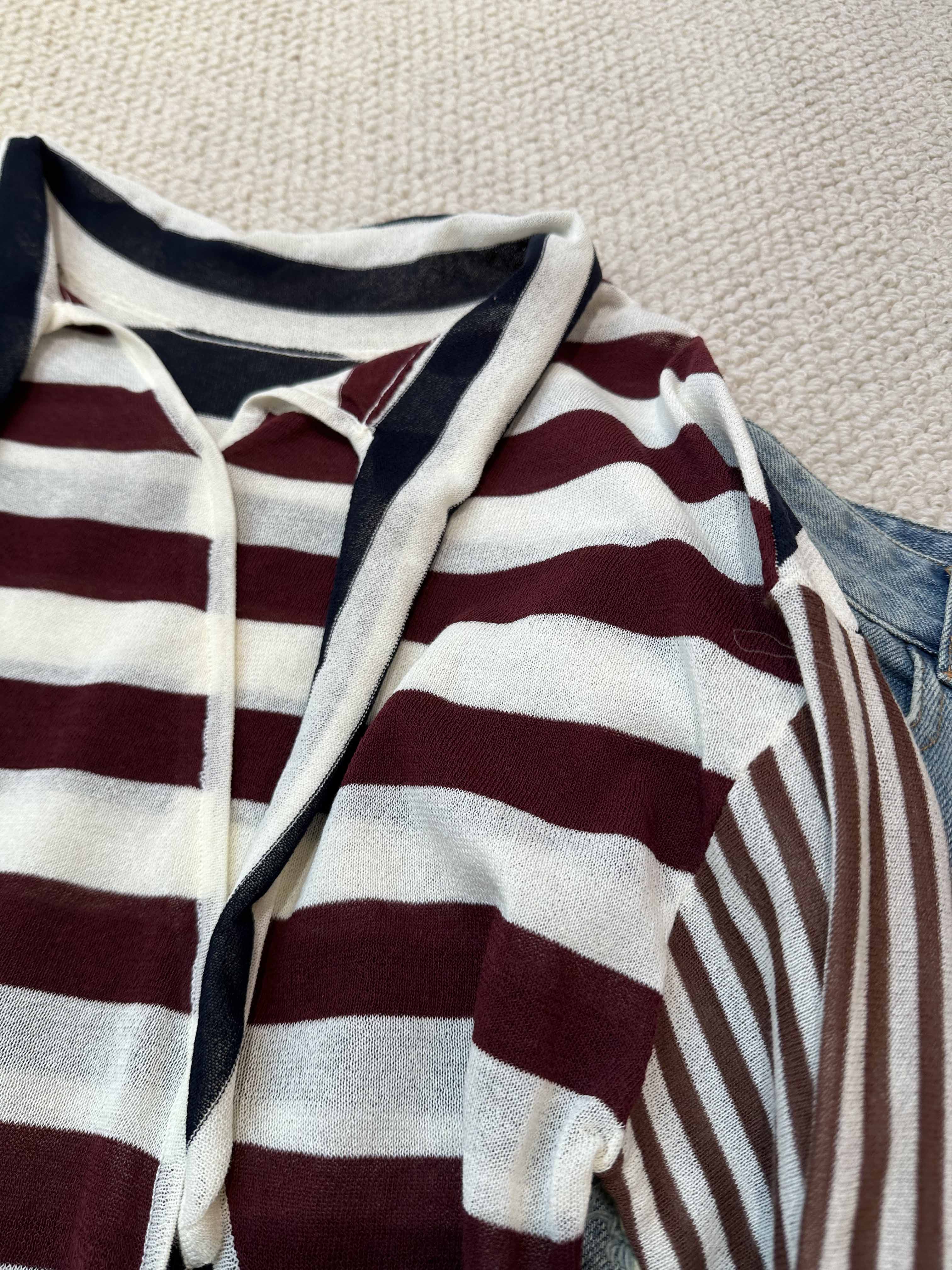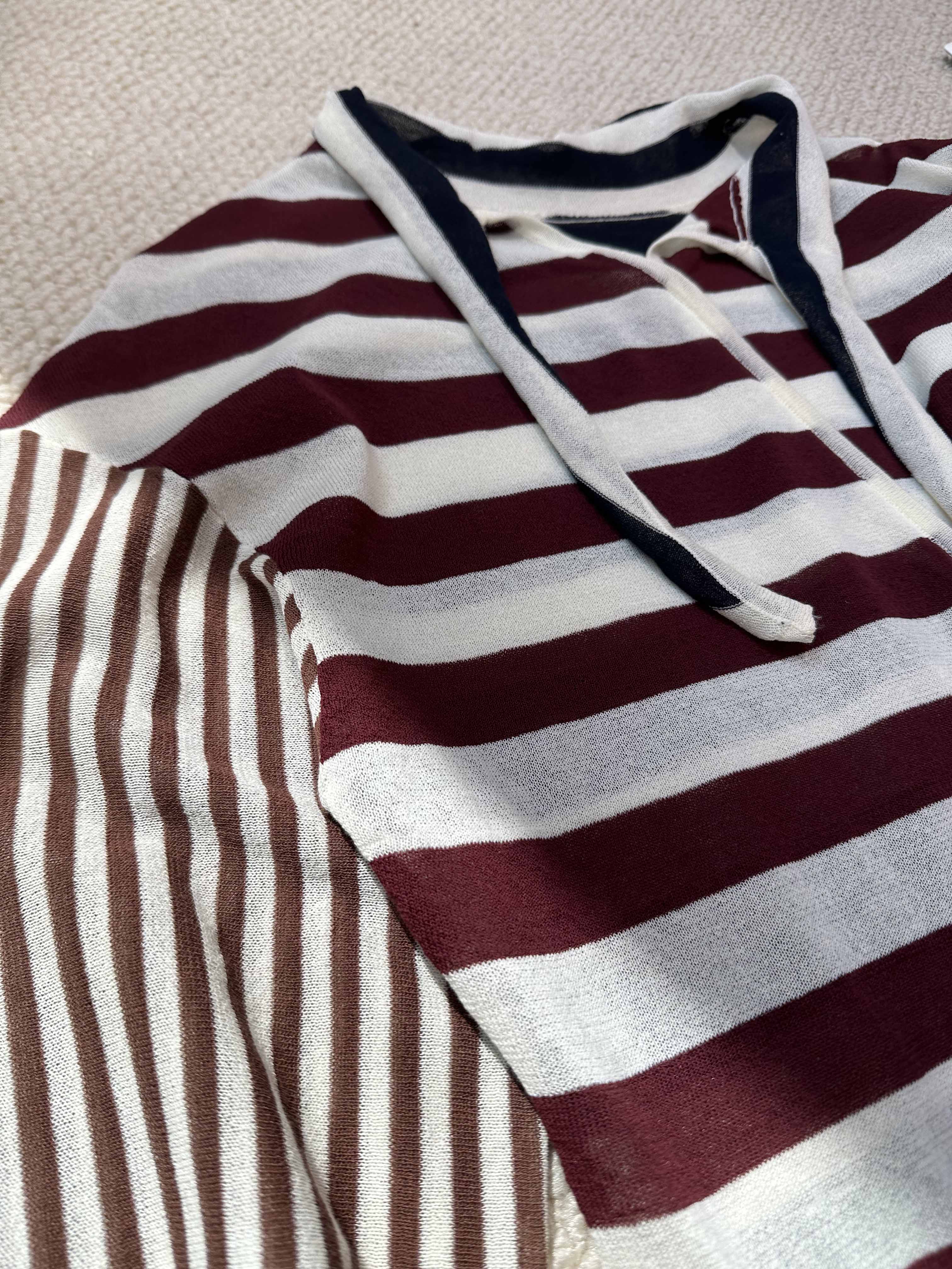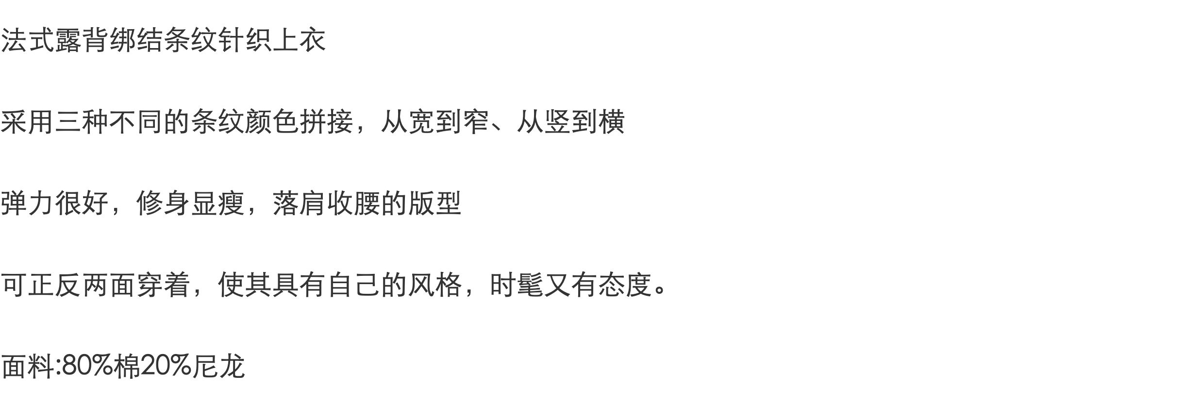 顺丰包邮15944洛诗琳法式露背绑带正反两穿条纹针织上衣734