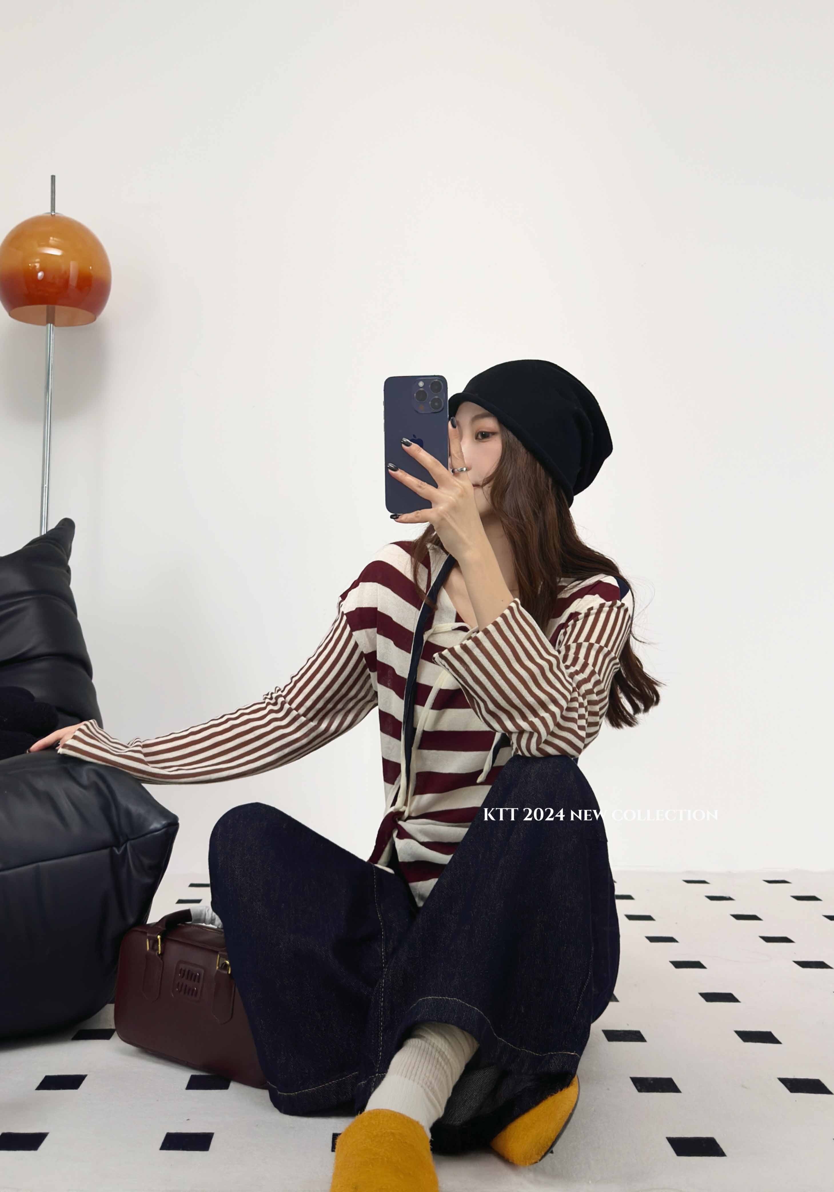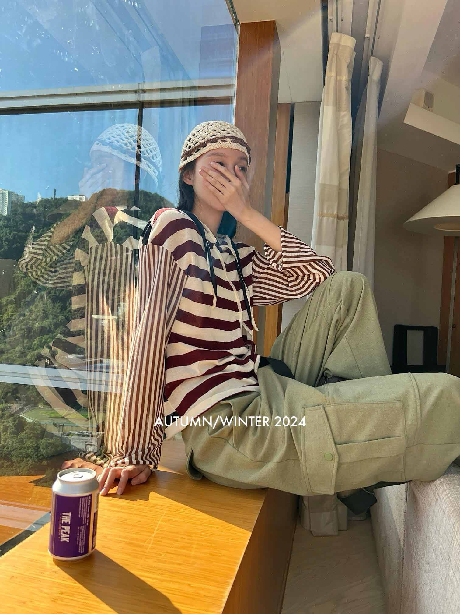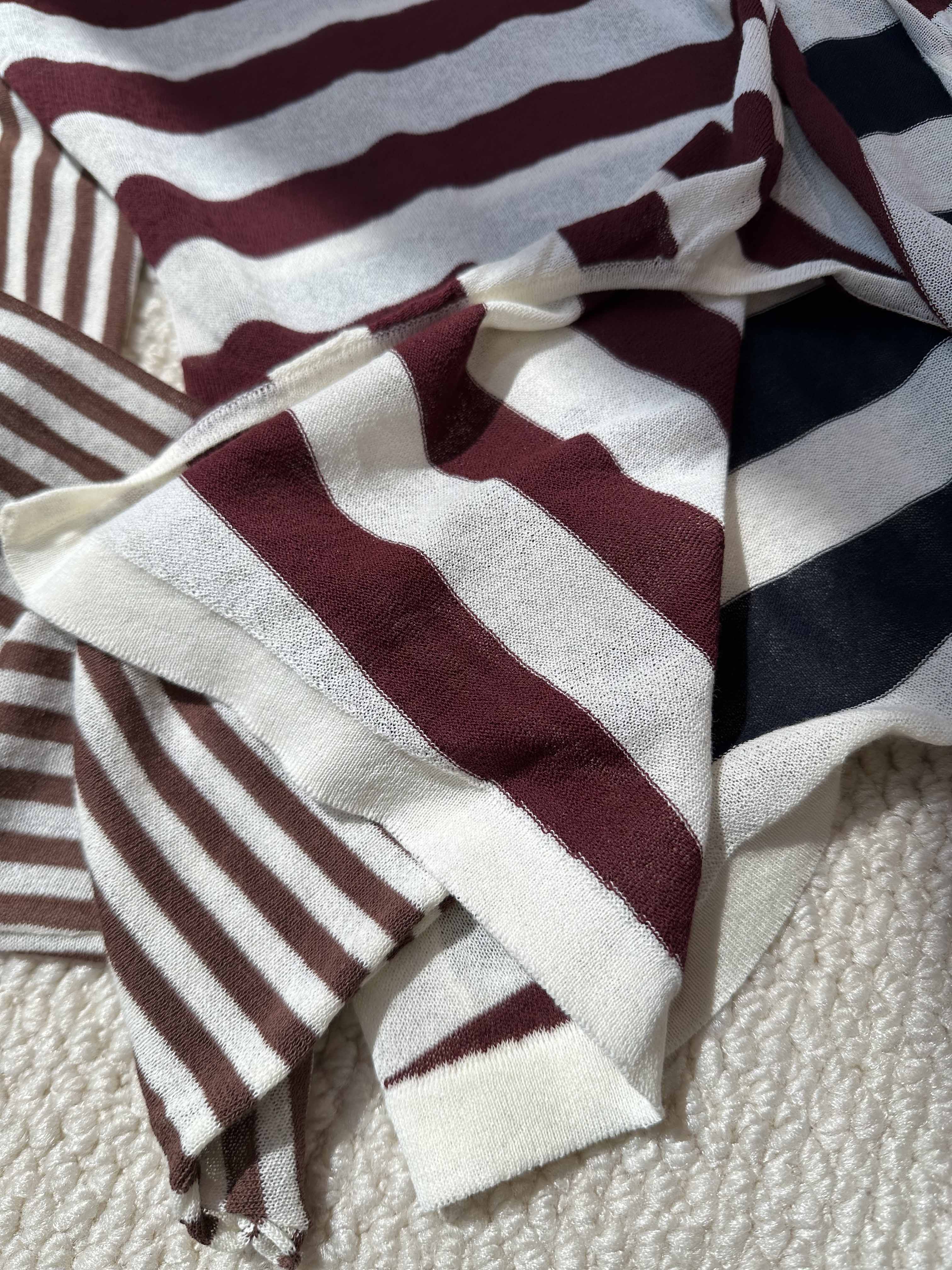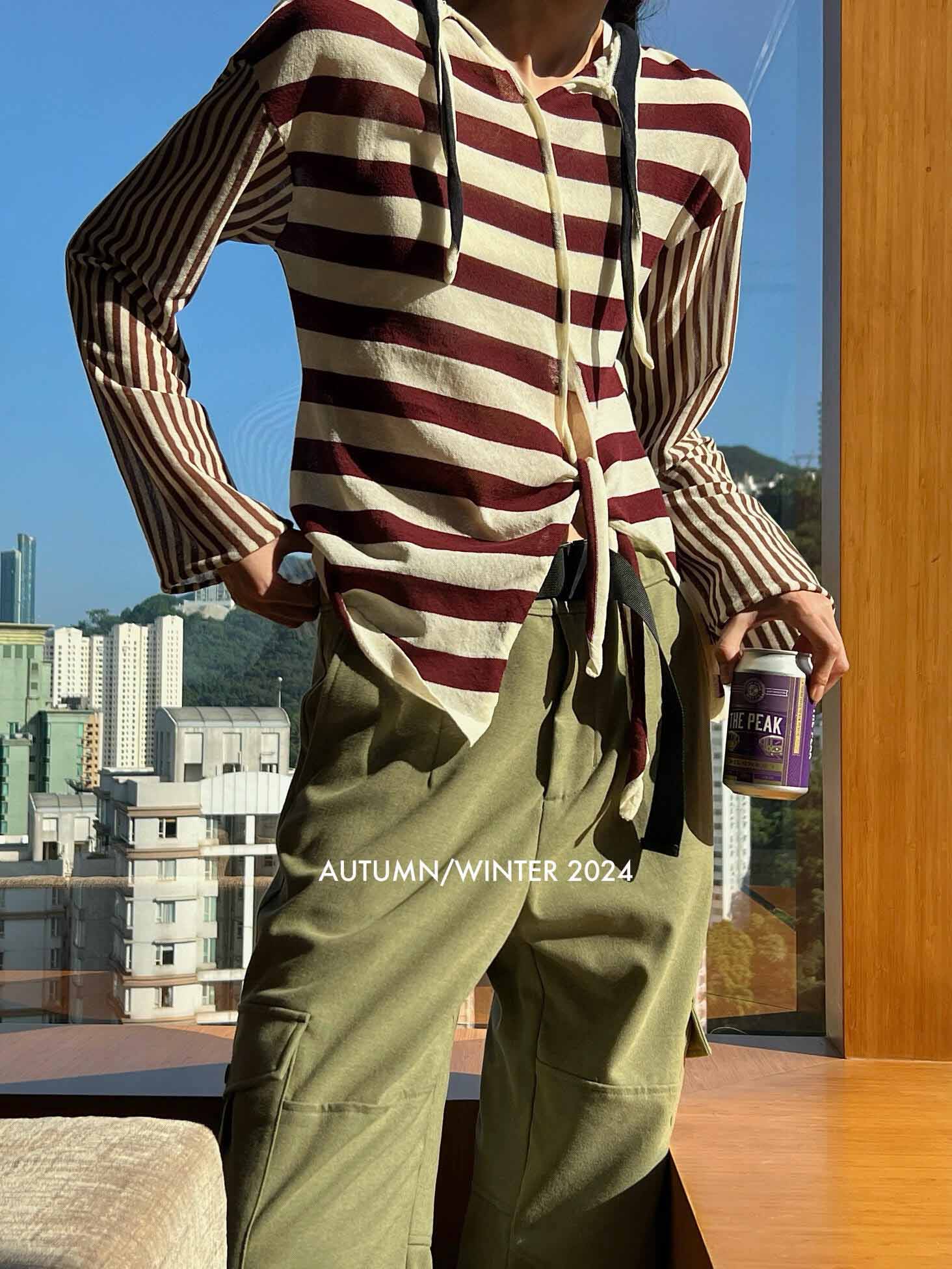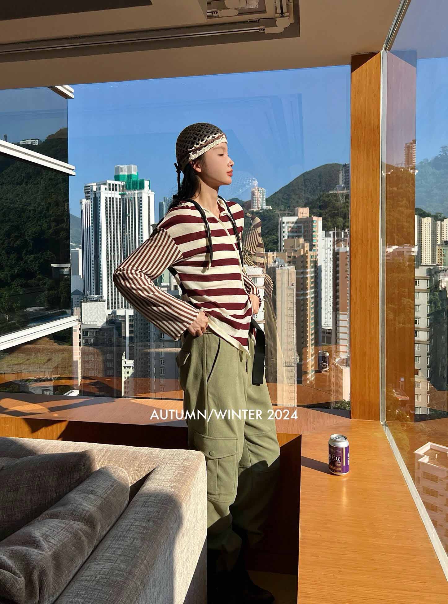 顺丰包邮15944洛诗琳法式露背绑带正反两穿条纹针织上衣734