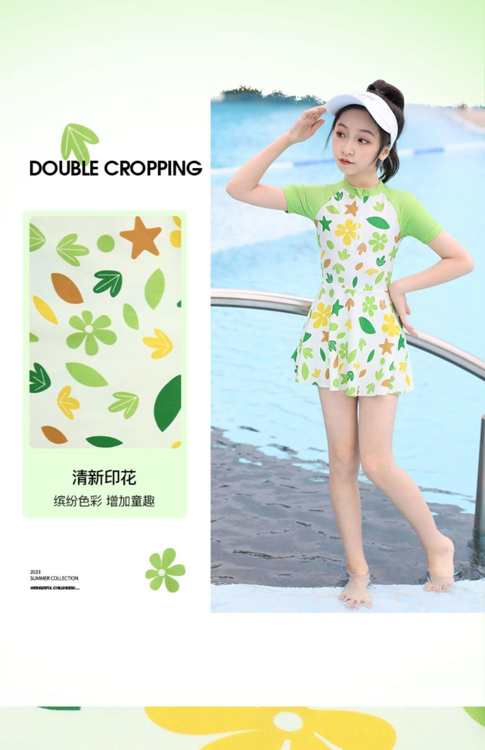 【可爱甜美系列,清新植物印花儿童泳衣】儿童泳衣女孩中大女童 夏季新款 宝宝连体泳装游泳衣温泉-QQ