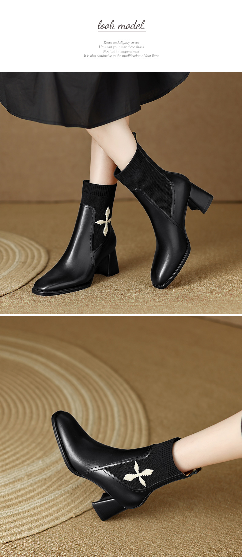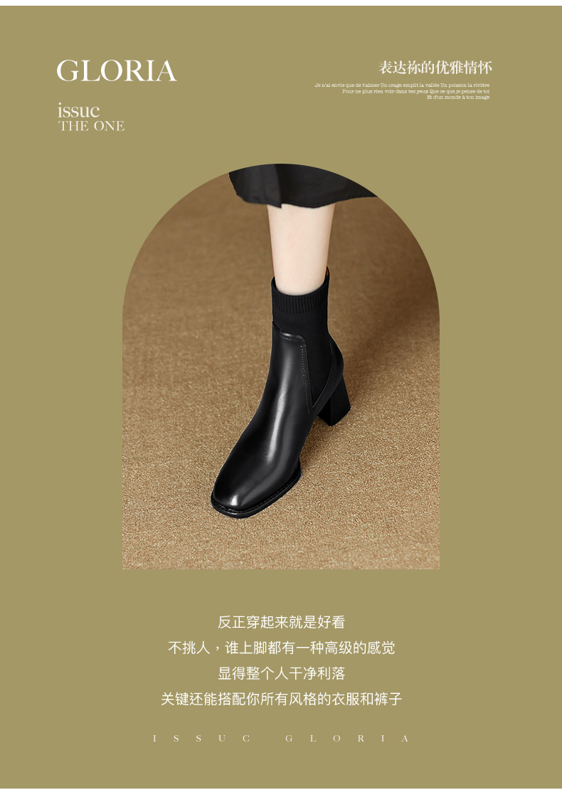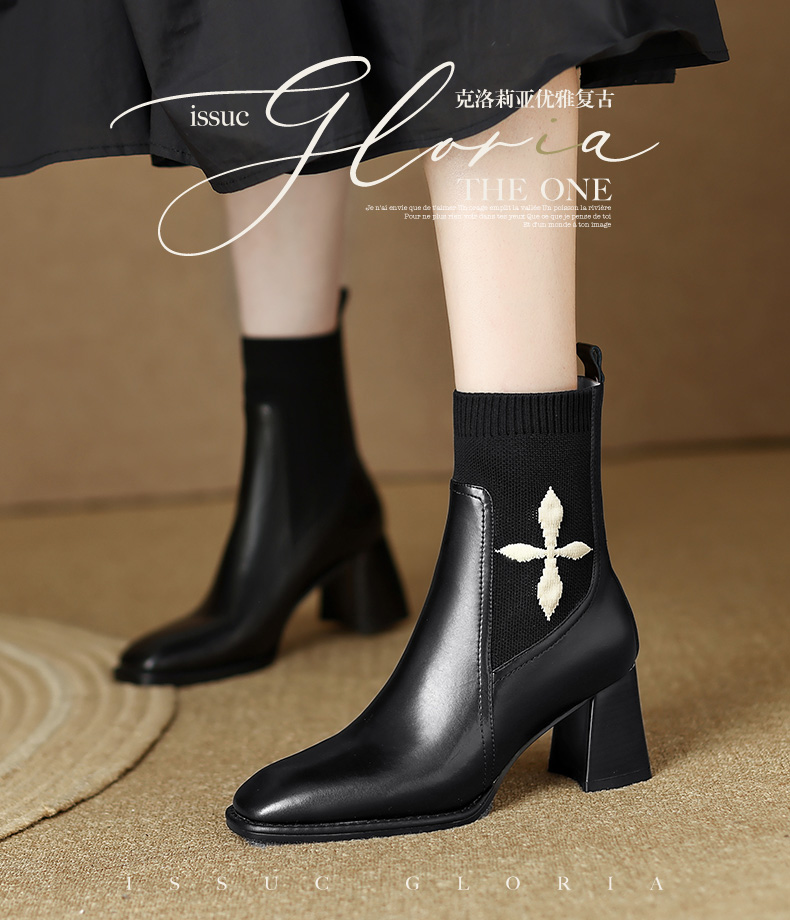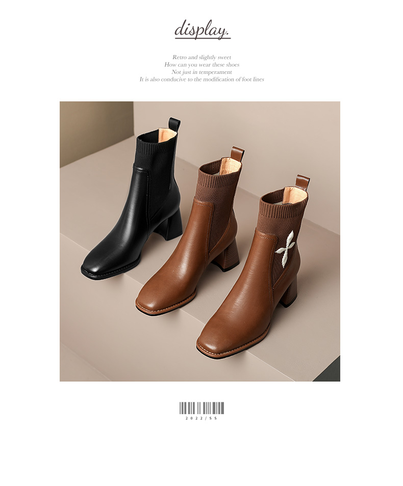优雅百搭,新款粗跟飞织靴LD-6127