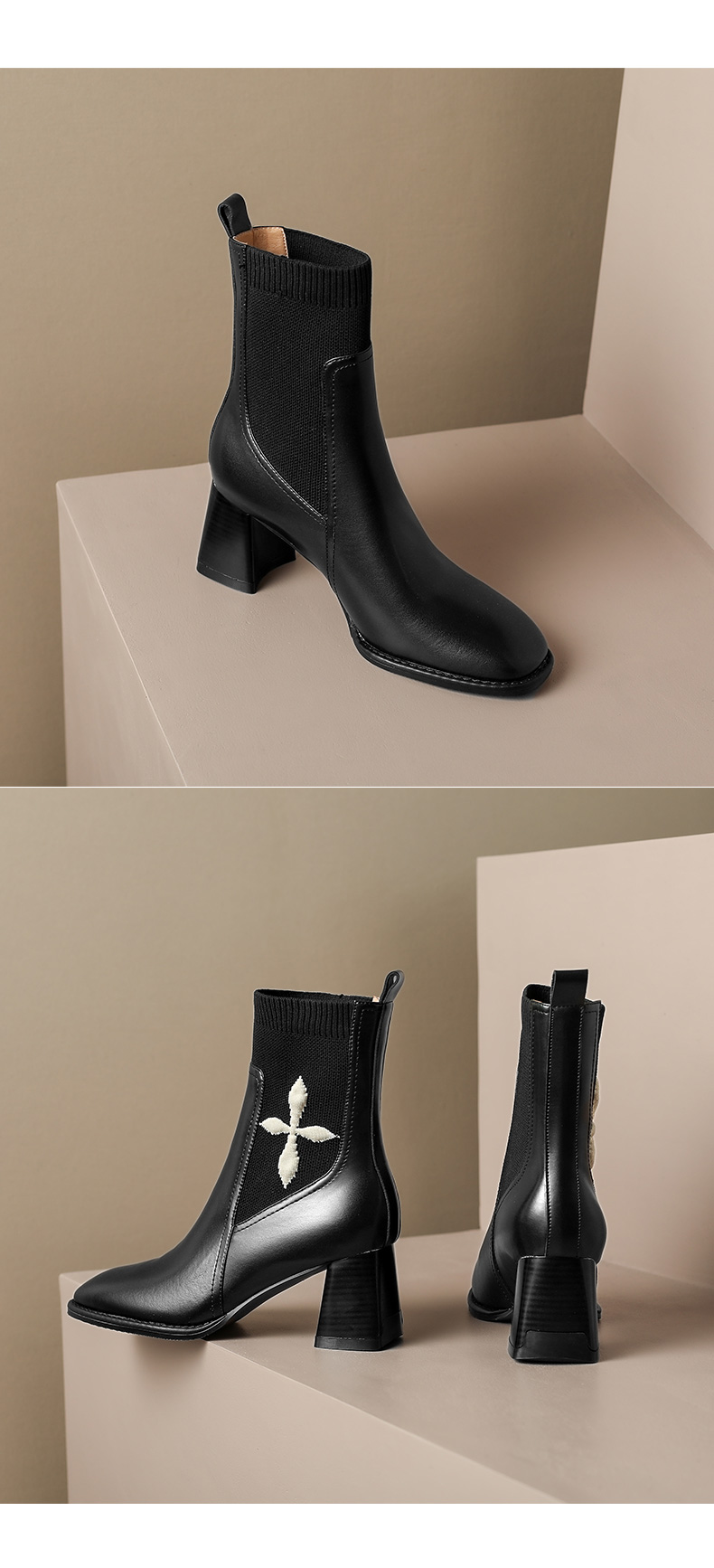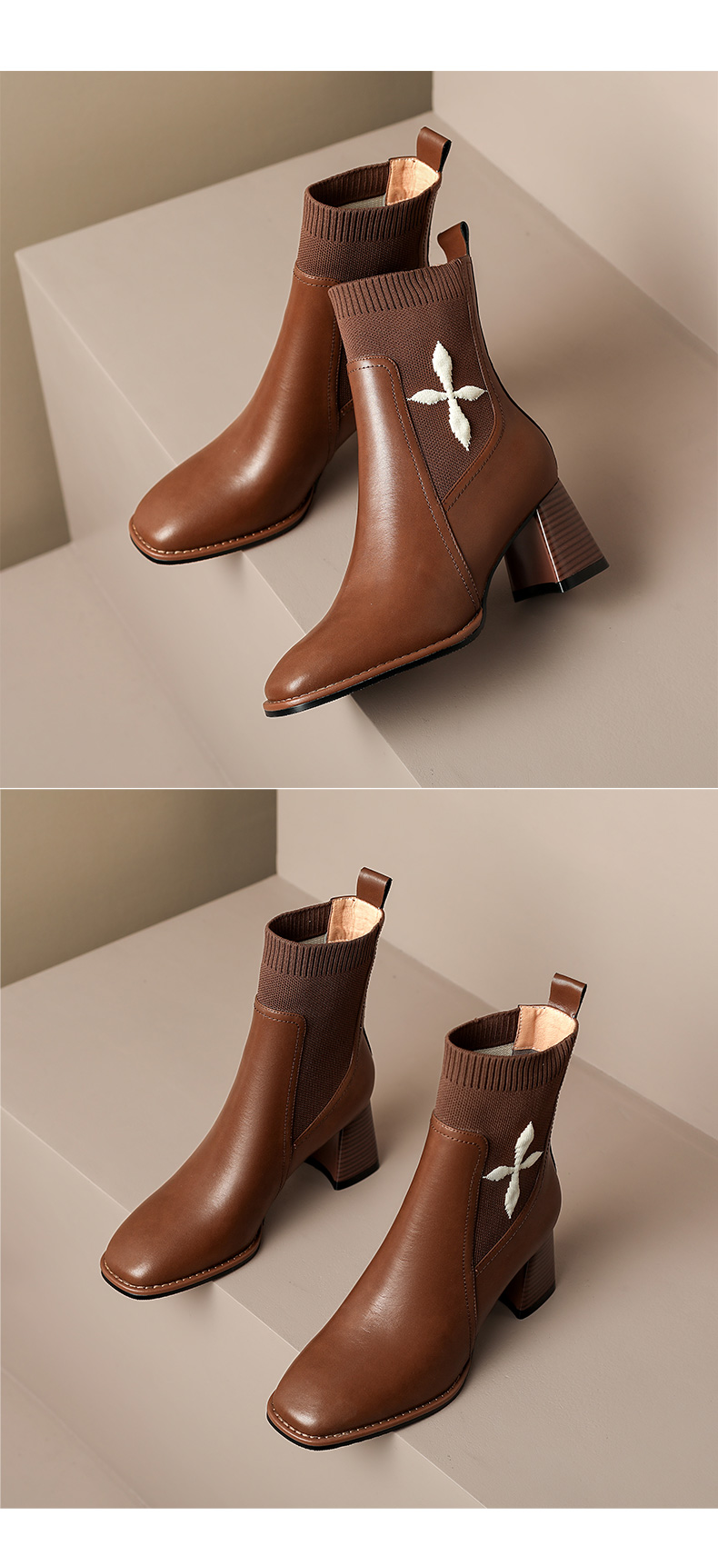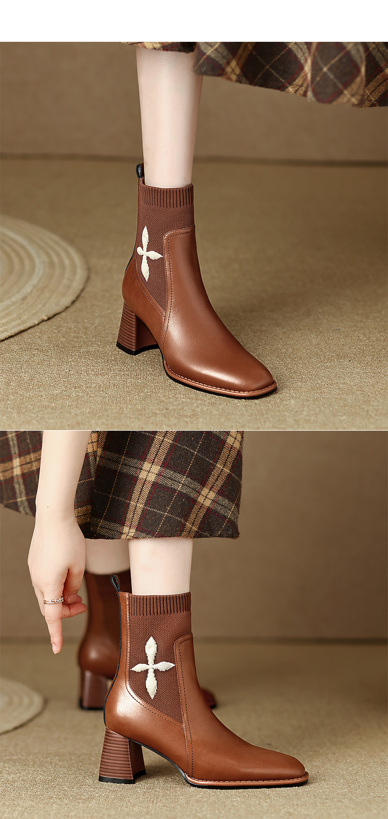 优雅百搭,新款粗跟飞织靴LD-6127