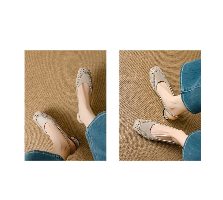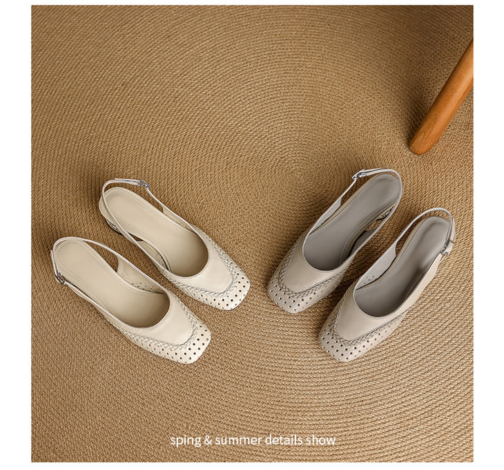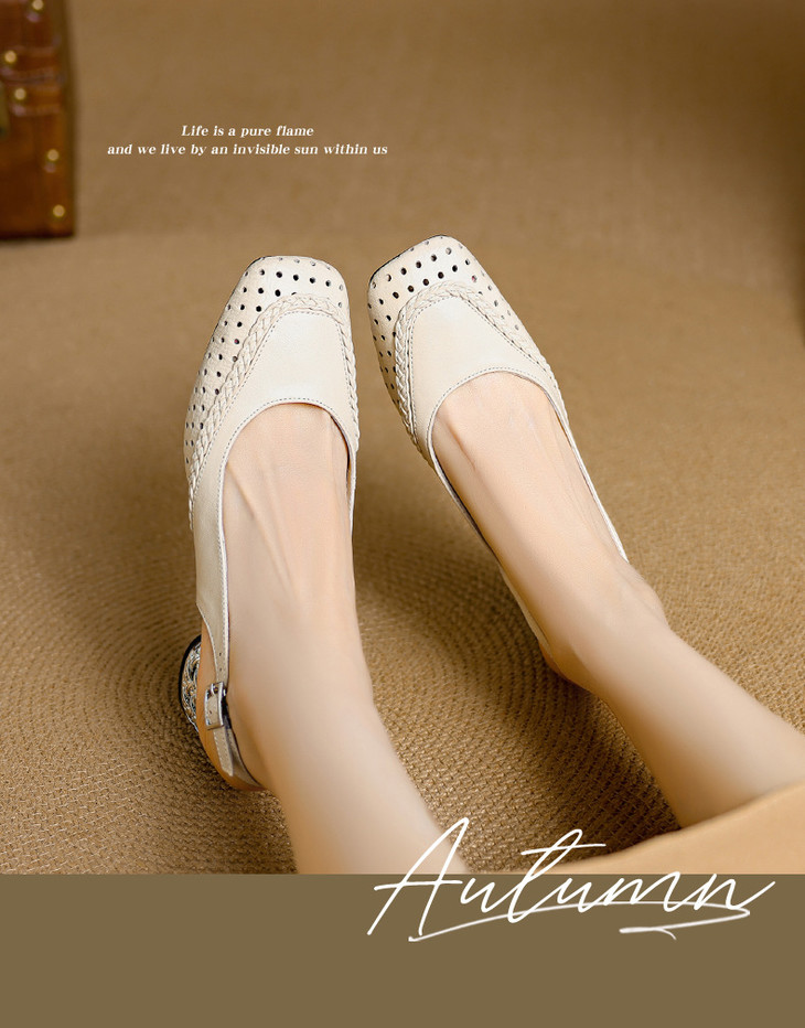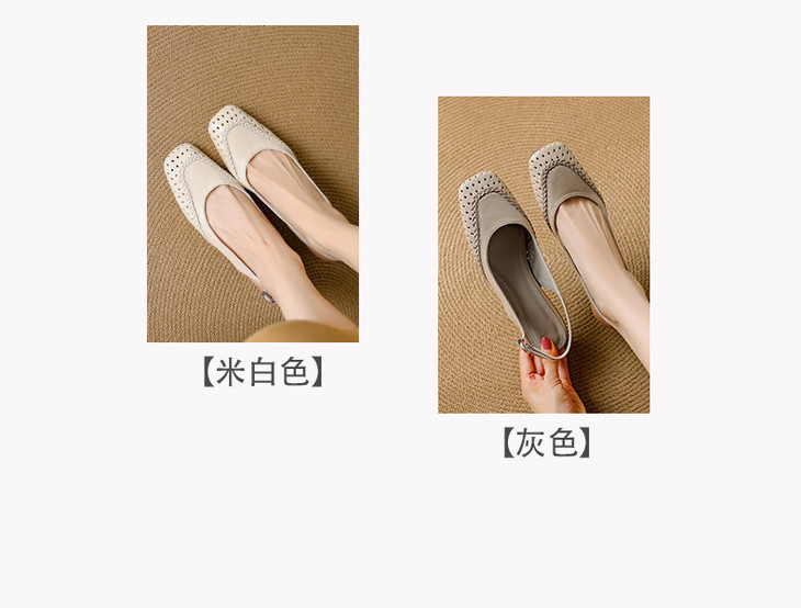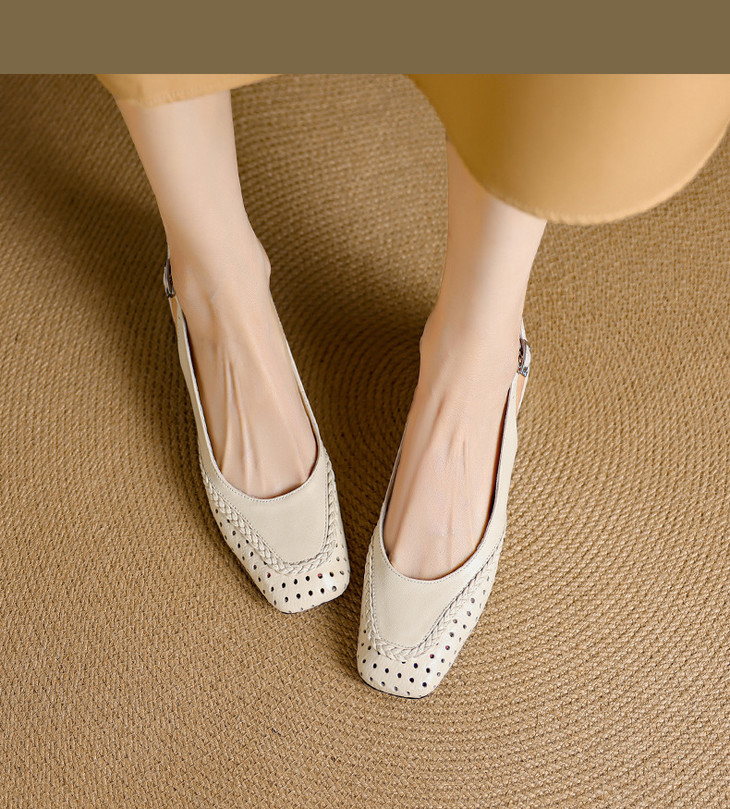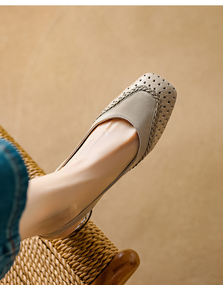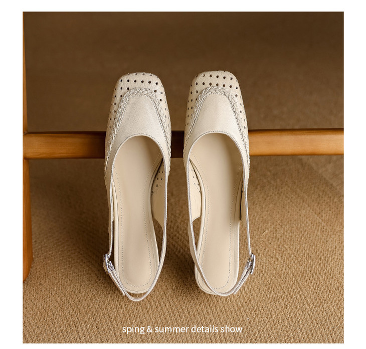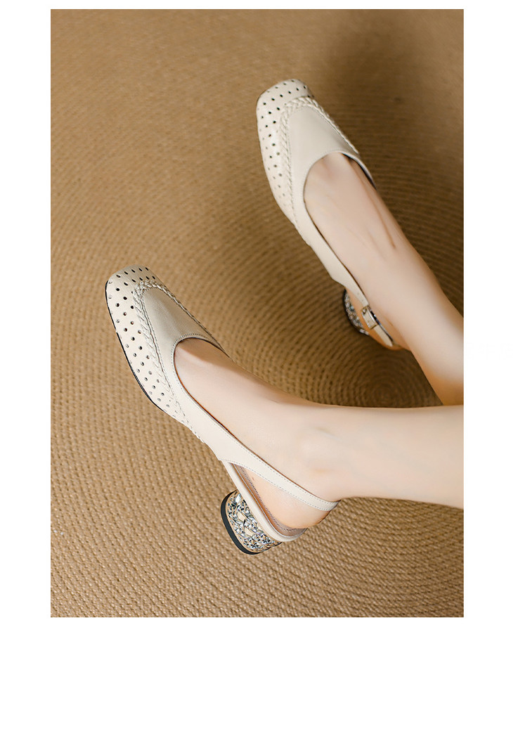 【预售5天】设计感小众编织羊皮方头镂空洞洞鞋法式粗跟一字带包头罗马凉鞋K1623