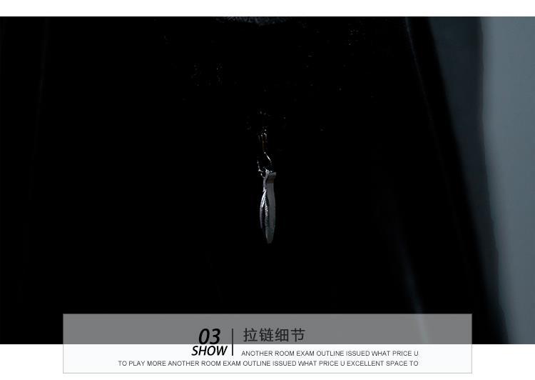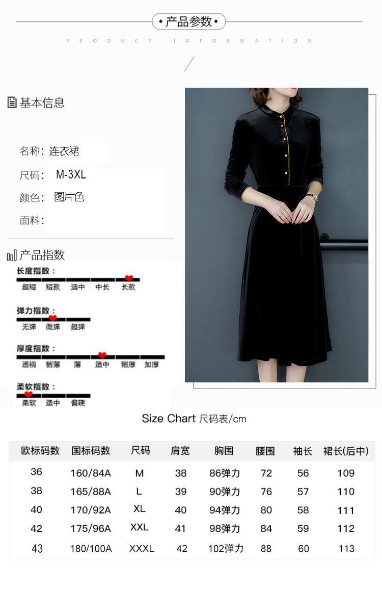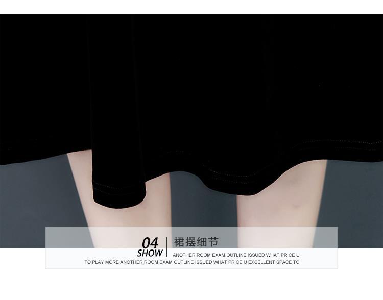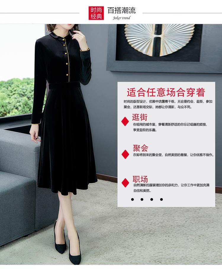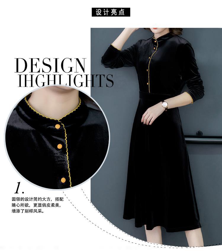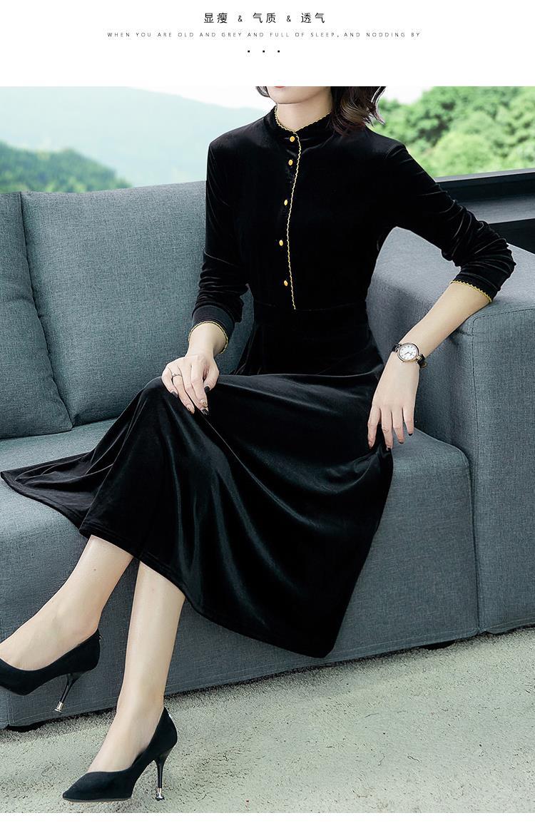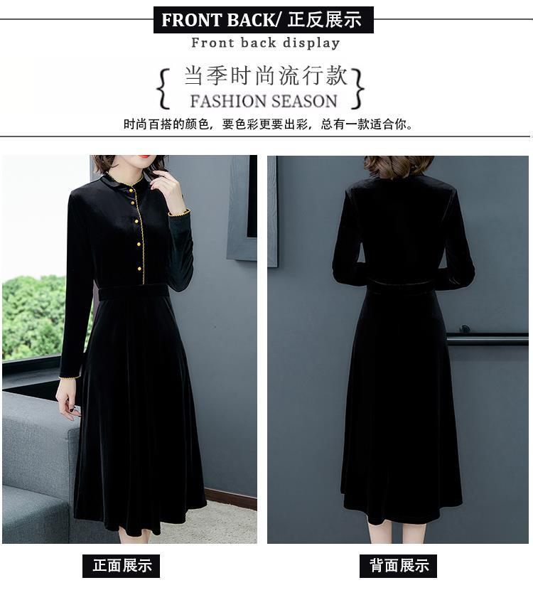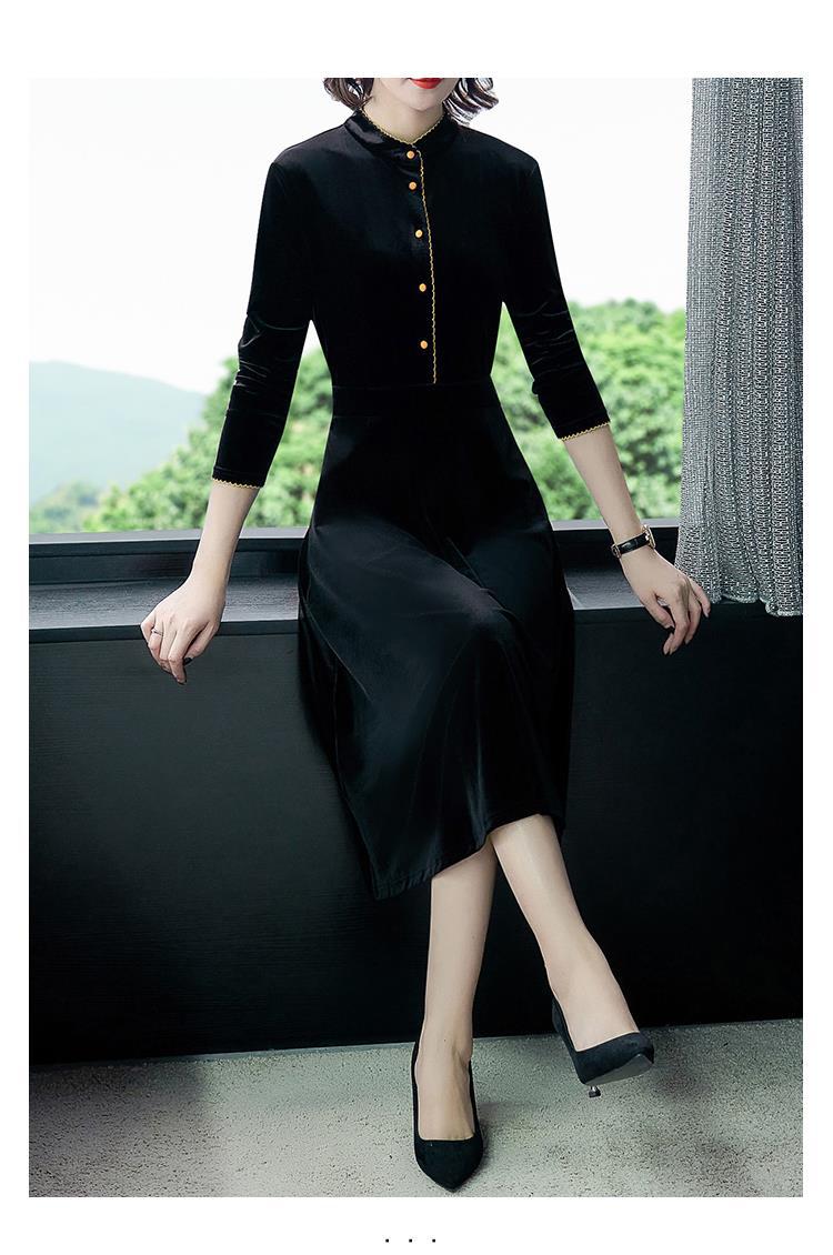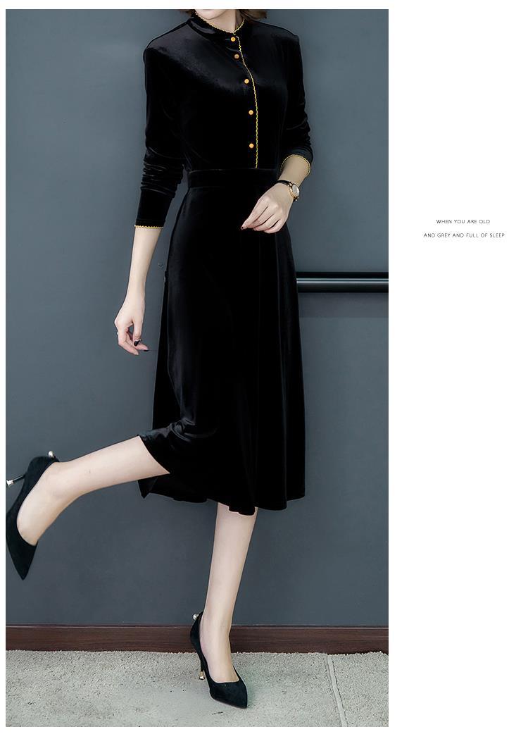 黑色金丝绒连衣裙时尚洋气立领拼接收腰显瘦中长款NYL80093