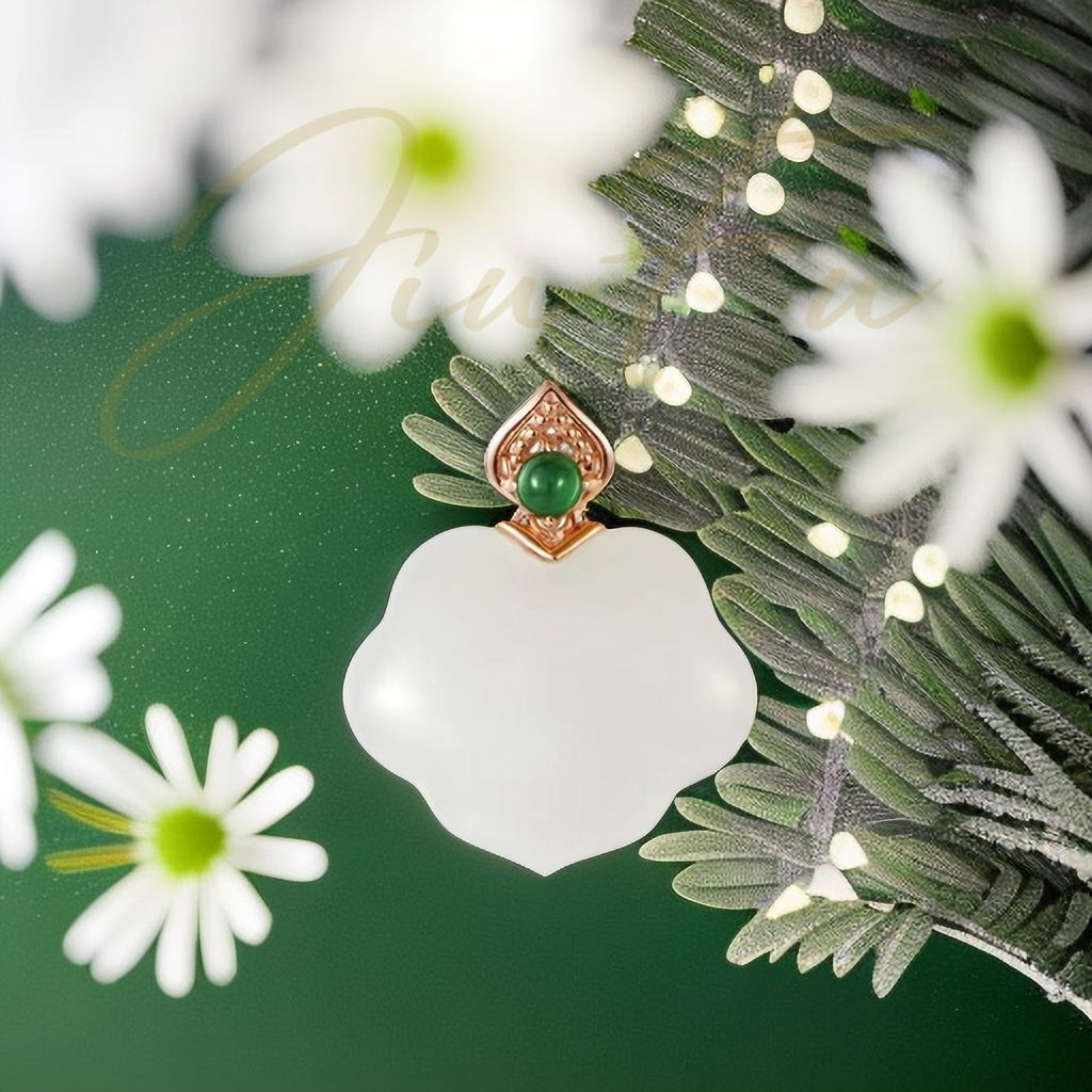 玉石尺寸:双面如意12*14mm 配镶:翡翠