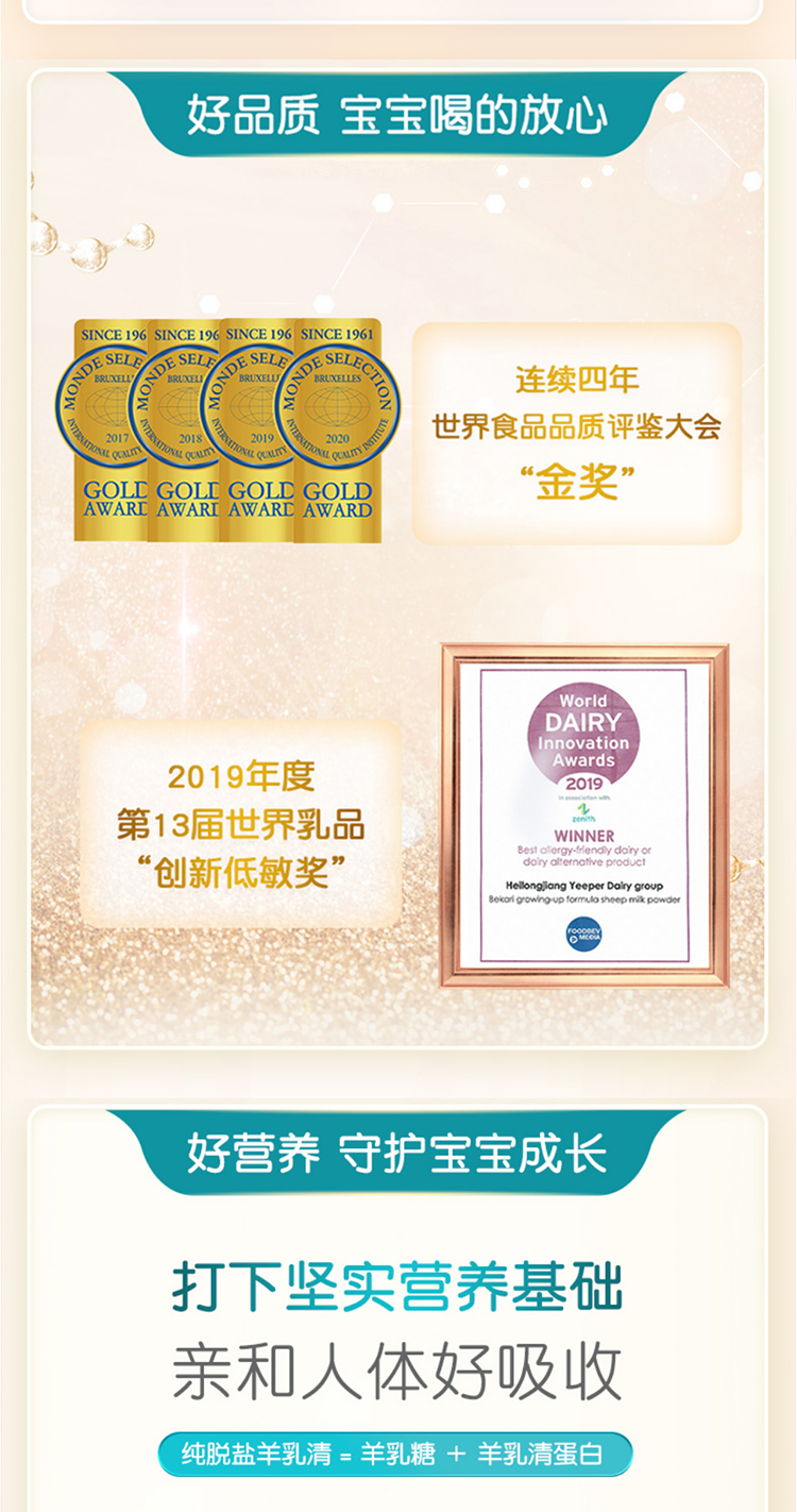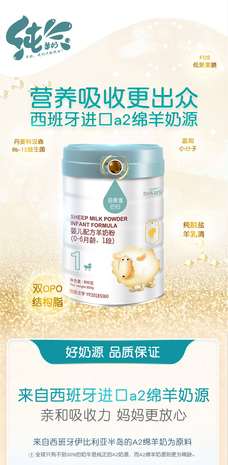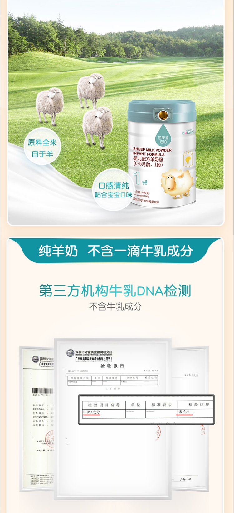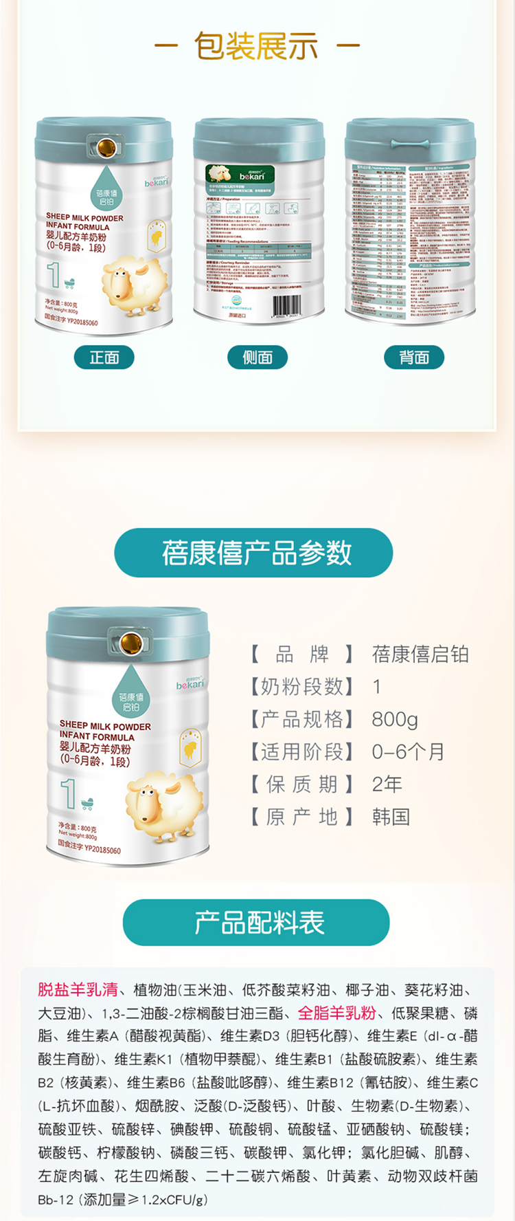 韩国进口蓓康僖启铂婴儿配方羊奶粉1段 800g
