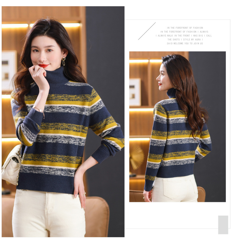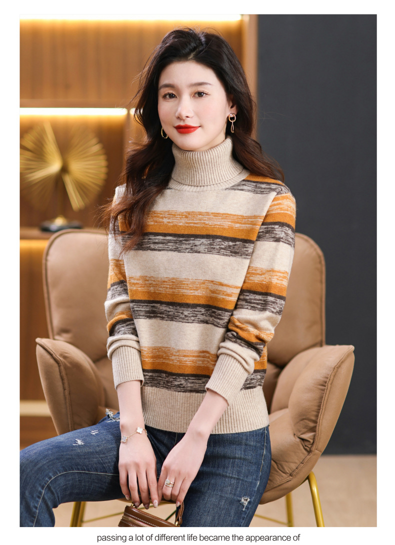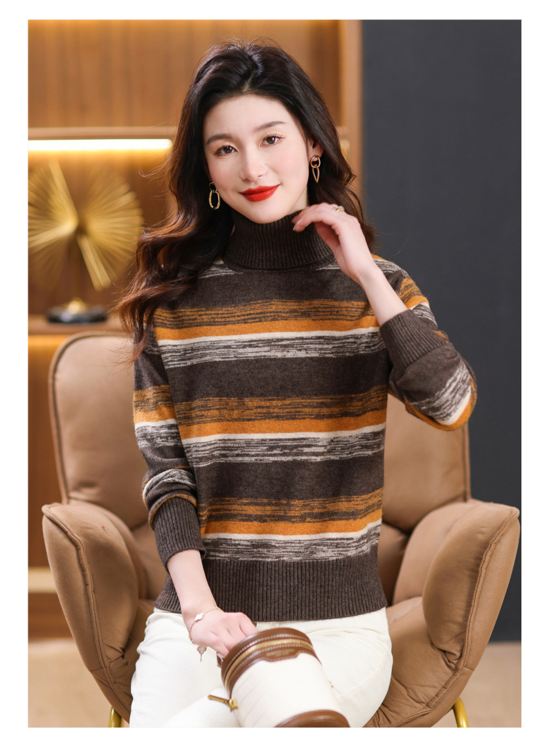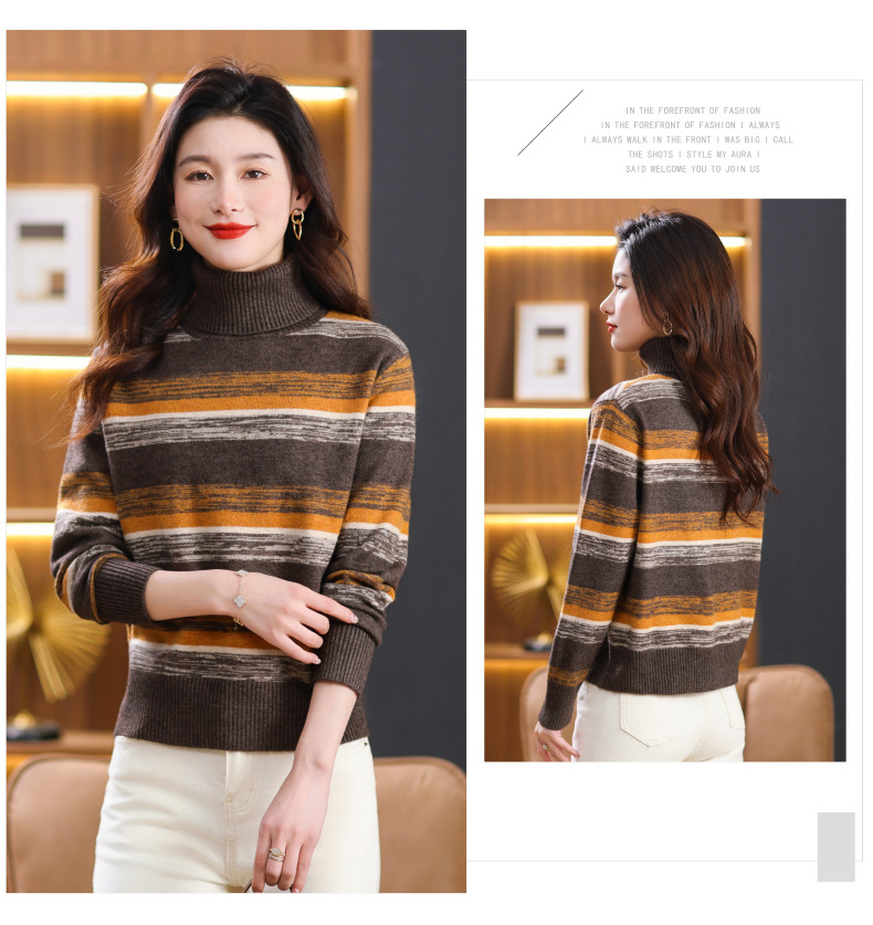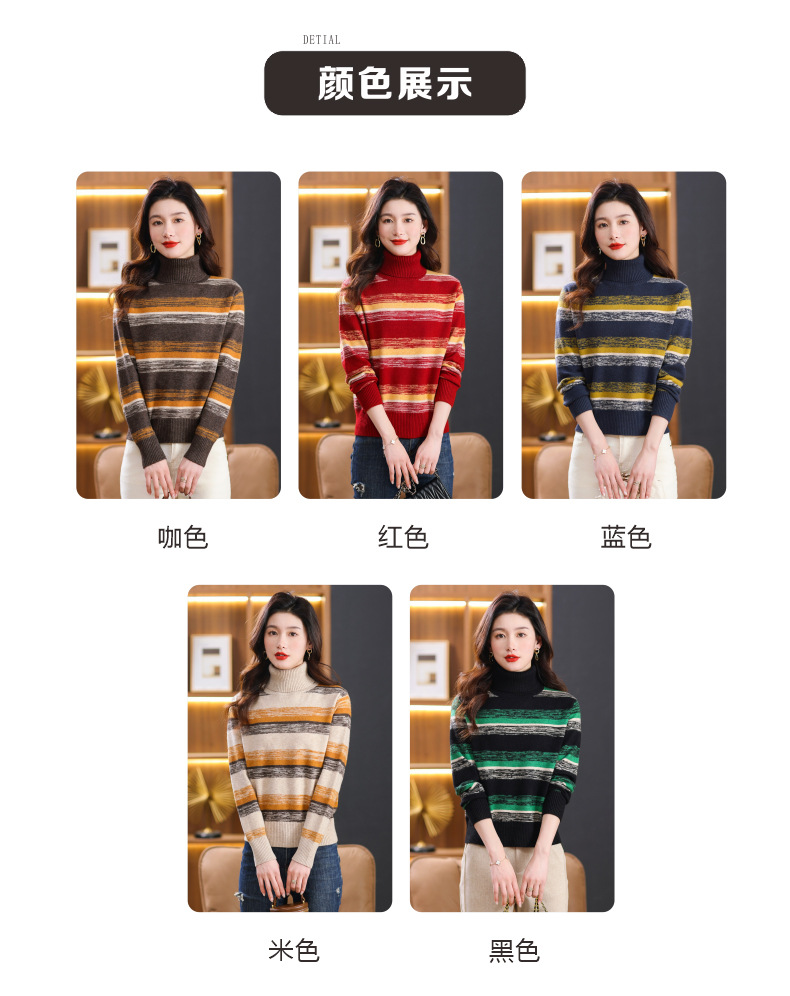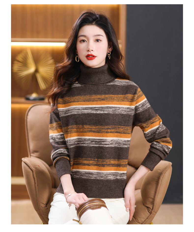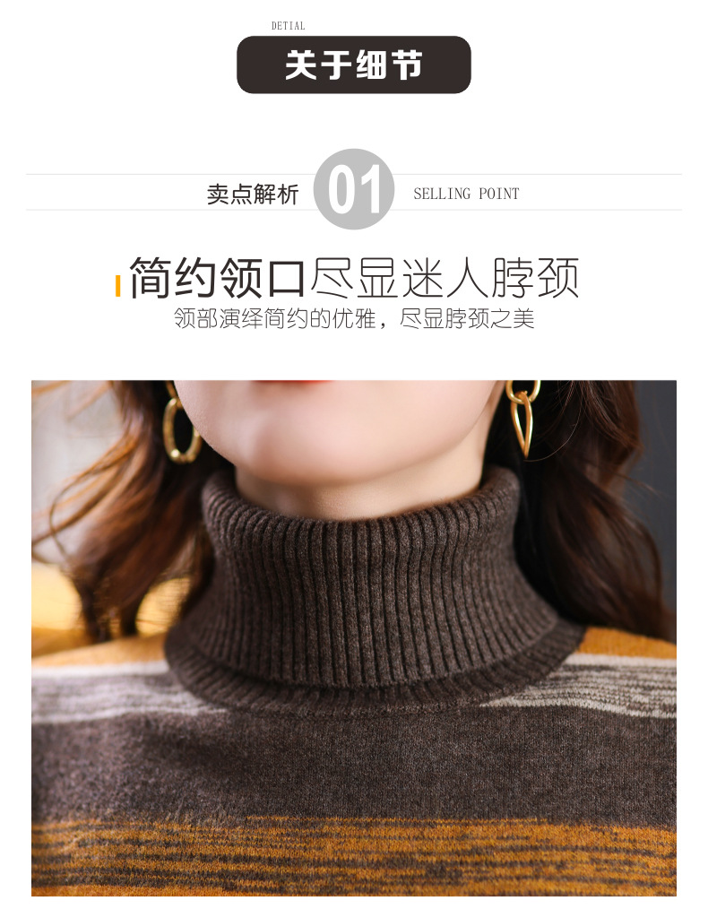 秋冬季新款,女士加厚条纹拼色打底衫高领洋气宽松内搭翻领毛衣CC-101-35363
