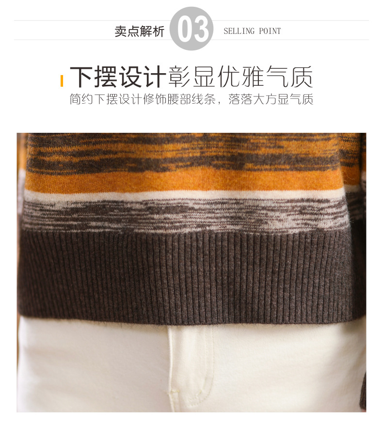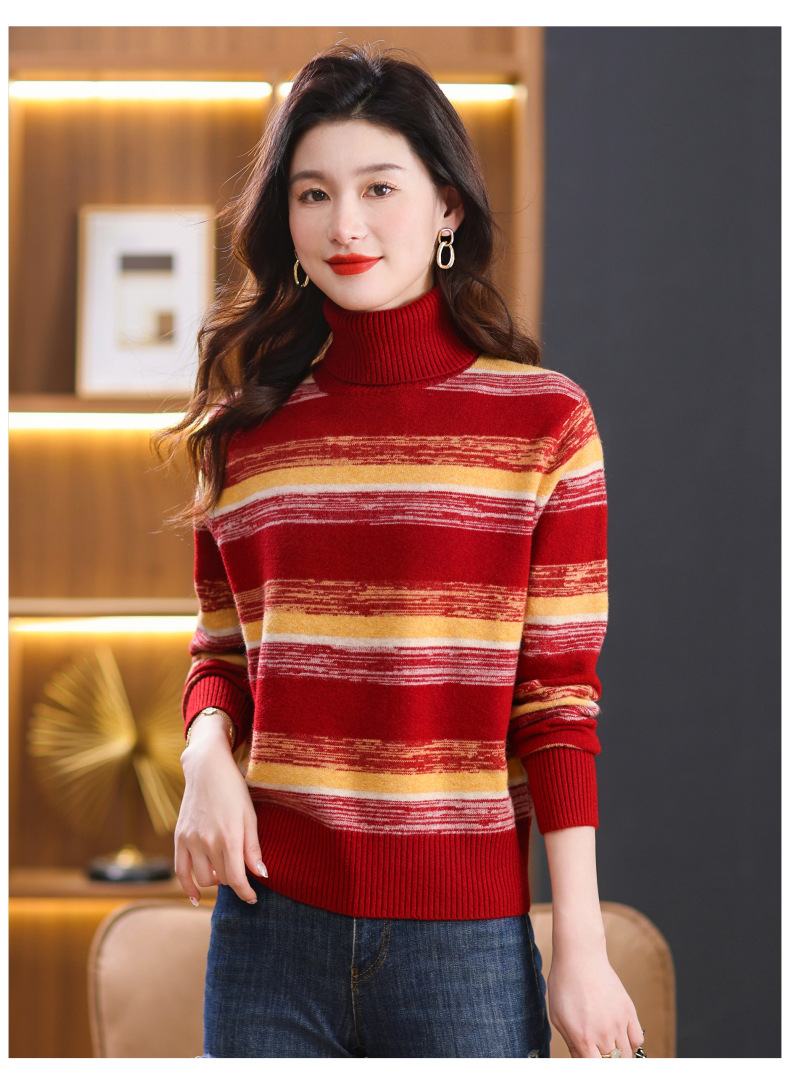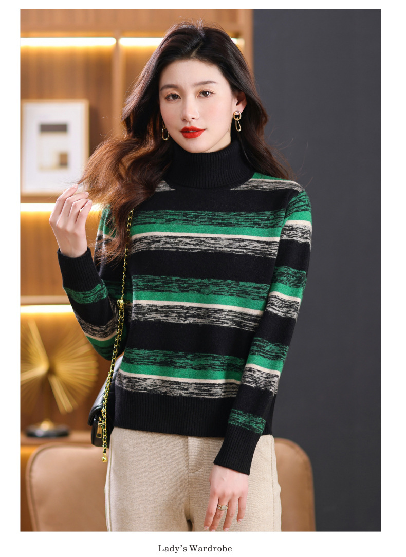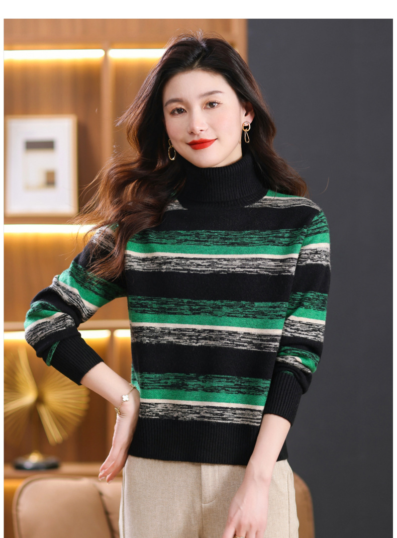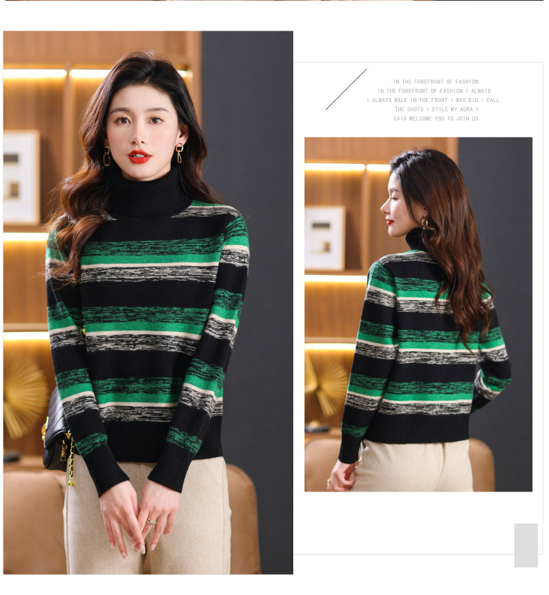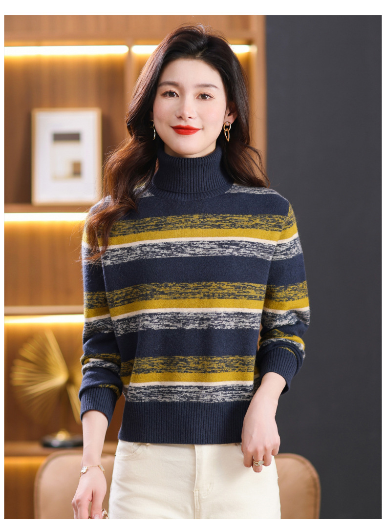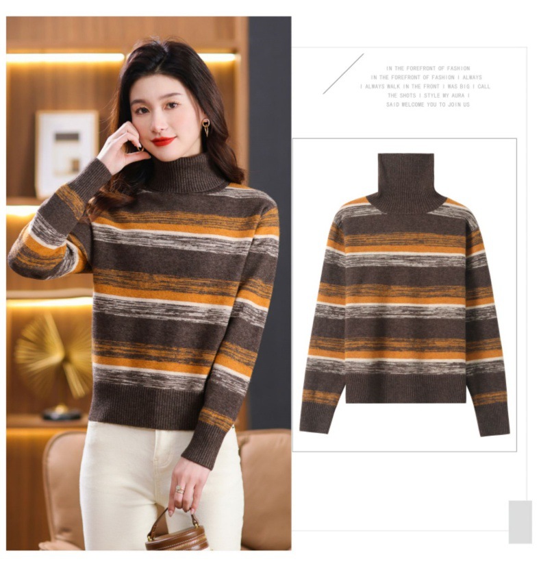 秋冬季新款,女士加厚条纹拼色打底衫高领洋气宽松内搭翻领毛衣CC-101-35363